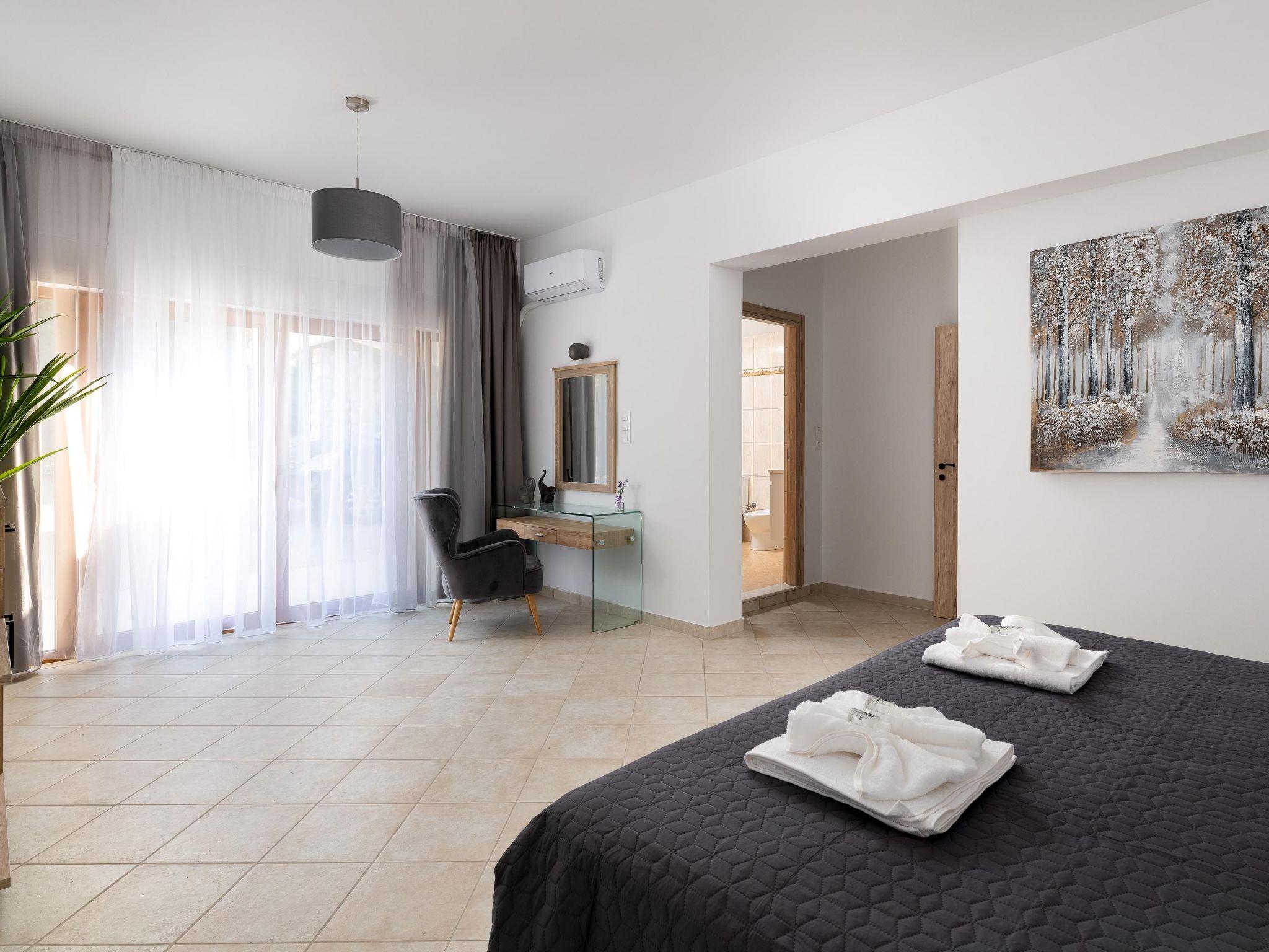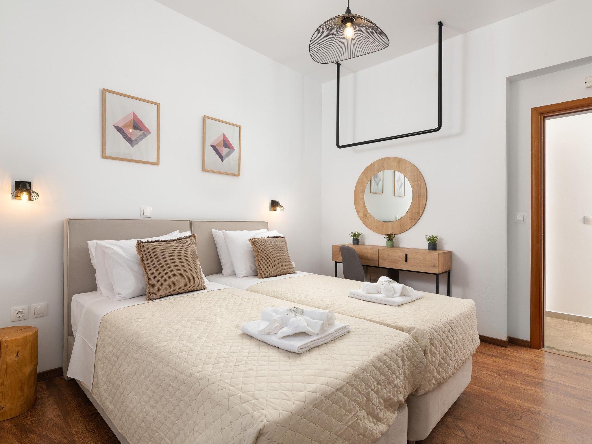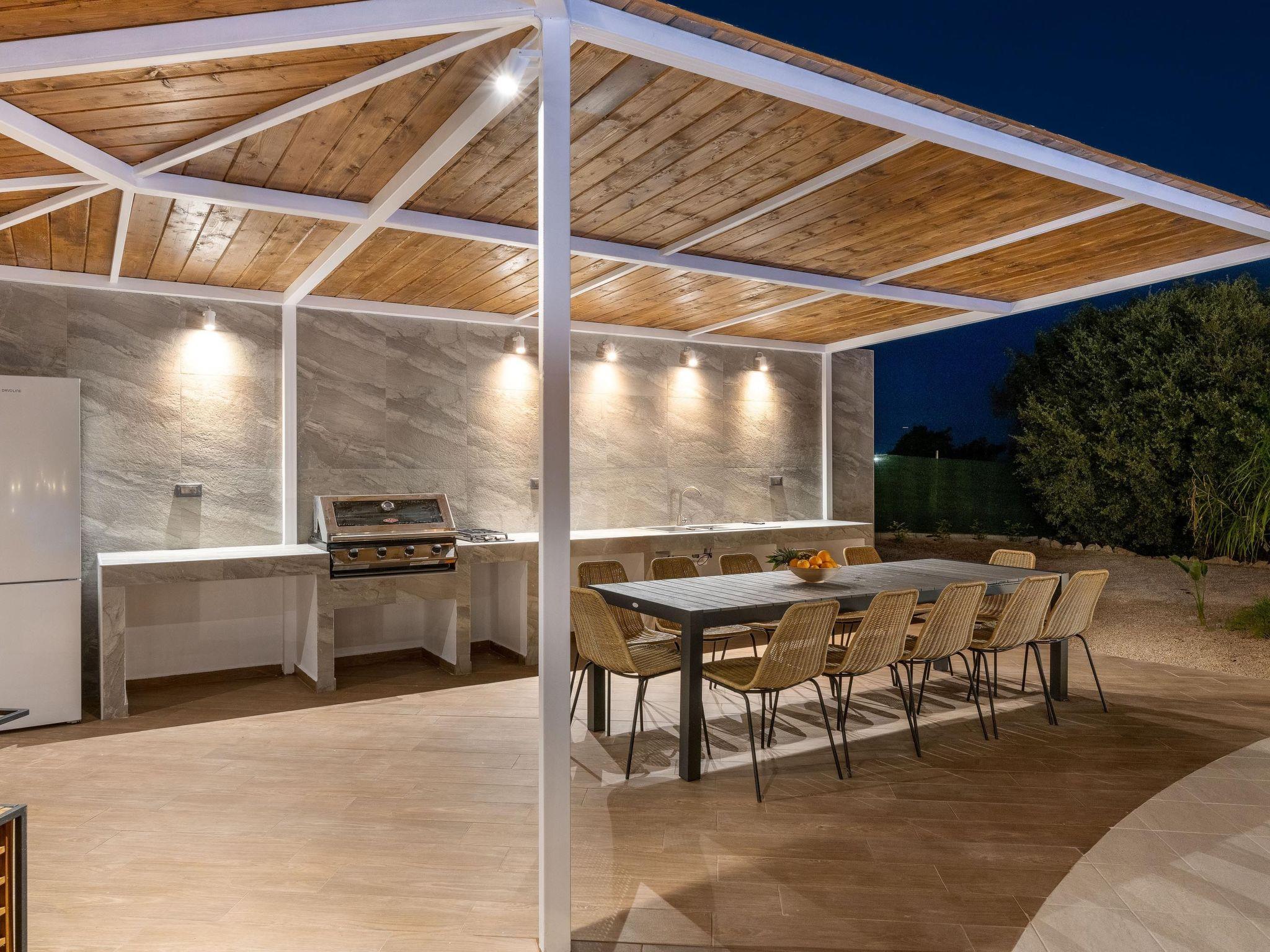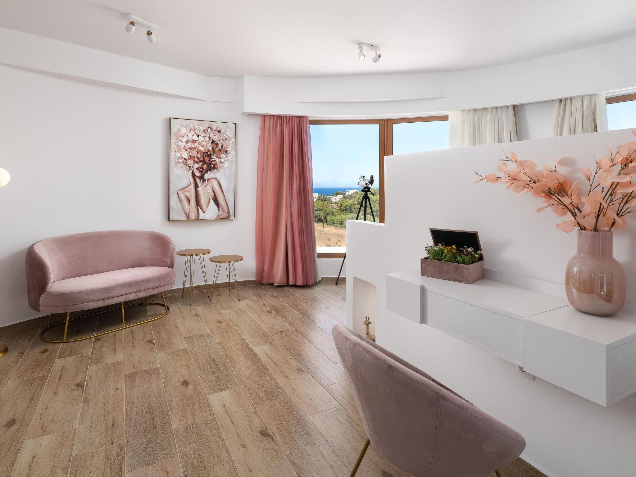 This luxury villa features large interior spaces with an elegant design that creates a welcoming atmosphere, as well as exceptional outdoor spaces with great gardening and amenities. On the ground floor, there’s an airconditioned bedroom with a double bed and an ensuite bathroom with a shower. Also, it has a smart Tv and a mini-fridge. On the first floor, there are four airconditioned bedrooms—half of them with double beds, and half of them with twin beds. Three of the first-floor bedrooms have ensuite bathrooms with a shower. Also, there’s a sharing bathroom with a shower and a wc. On the second floor, there’s the spacious master bedroom, it offers a built-in bed and an incredible design. Also, there’s a smart Tv and a mini-fridge. This bedroom has a private entrance to a dreamy furnished terrace. Hamilton Villa has two spacious living rooms; each is set on a different floor. On the ground floor, there’s an open plan fully equipped kitchen, suitable for any meal preparation, accompanied by the living area and a wc. Also, there’s a gym area and a library. On the first floor, there’s the second living room that offers tea and coffee facilities and a game console for extra fun. The incredible interior aesthetic will immediately give you peace. Also, there’s free Wi-Fi access throughout the property. Outdoors, the villa is equally impressive as indoors. It offers large gardens surrounding the magnificent pool area and the heated jacuzzi that are equipped with parasols and floating sun beds, creating the perfect setting for a relaxed time under the golden rays of the Greek sun. The villa offers an outdoor fully equipped kitchen with an incredible BBQ installation and furnished areas in the garden, where guests can enjoy a truly unique outdoor gathering. Also, there’s a table tennis for endless fun.