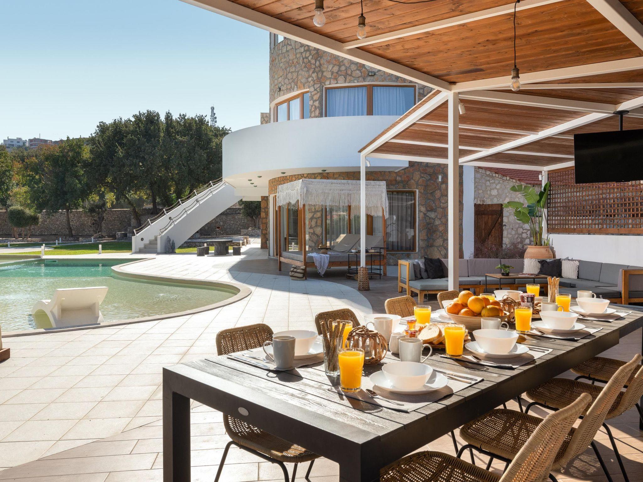 The villa is situated in Koskinou village, which is an ideal location for summer holidays in Rhodes as it is close to most of the islands major attractions and just a short drive from the centre of Rhodes town. Koskinou is a beautiful village built on the top of a hill overlooking the east coast of Rhodes. At the lively main square of the village, you can find many shops, traditional restaurants, pharmacies etc. You shouldn’t miss visiting Kallithea Springs, only 5 minutes’ drive far from the villa. Old Town of Rhodes, an important UNESCO monument of cultural heritage is located less than a 20-minute drive. The magnificent ancient acropolis of Lindos overlooking the picturesque village with the narrow streets and traditional white houses is approximately half hour drive too.