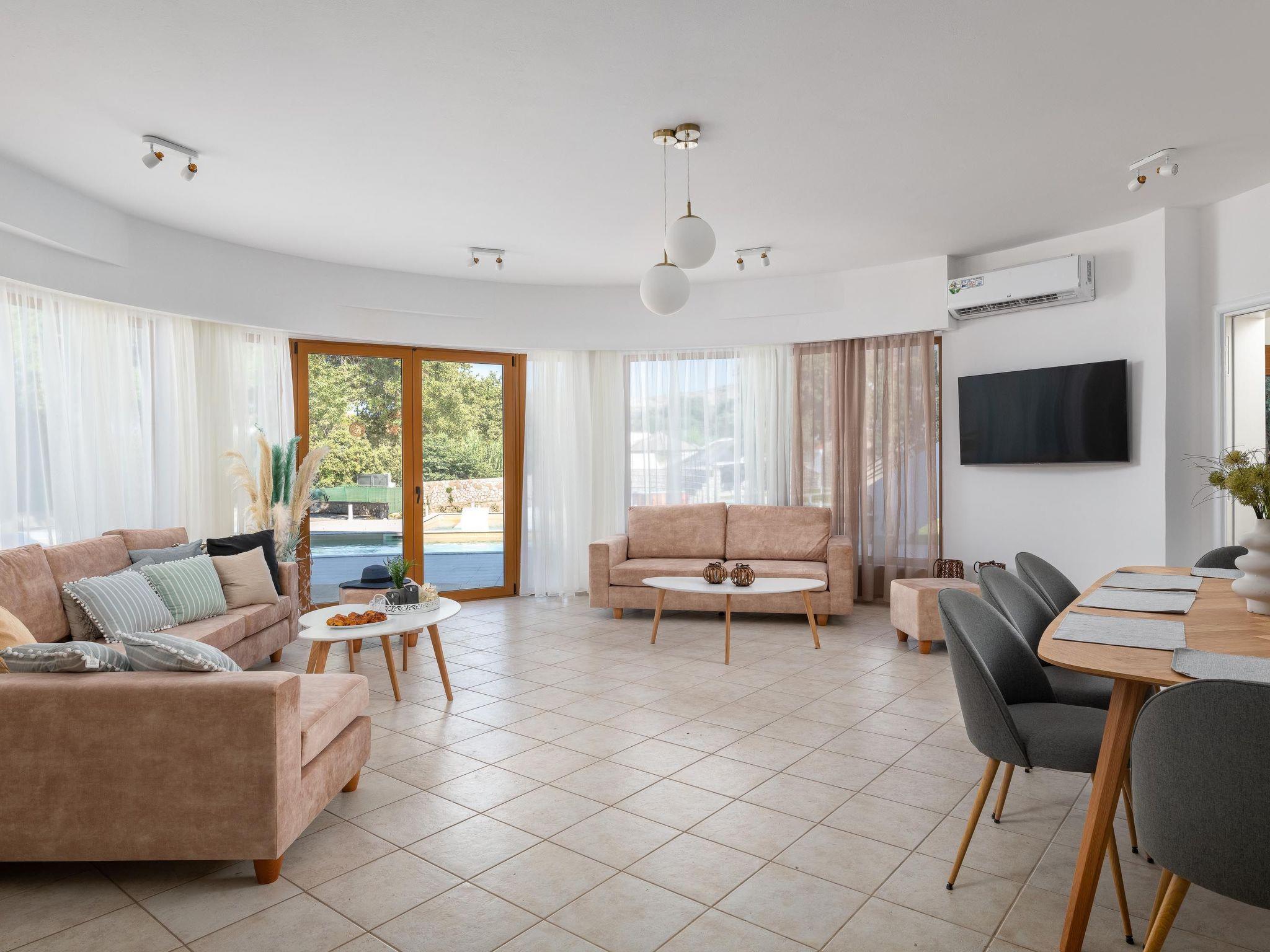 Hamilton Villa is a magnificent villa for rent, located in Koskinou Village, which offers a private swimming pool and an outdoor heated jacuzzi. The property is only a 5-minute drive away from Kallithea beach and at a short drive from the city of Rhodes. It provides you with the perfect setting for unique holidays in Rhodes and conveniently accommodates up to 12 guests.