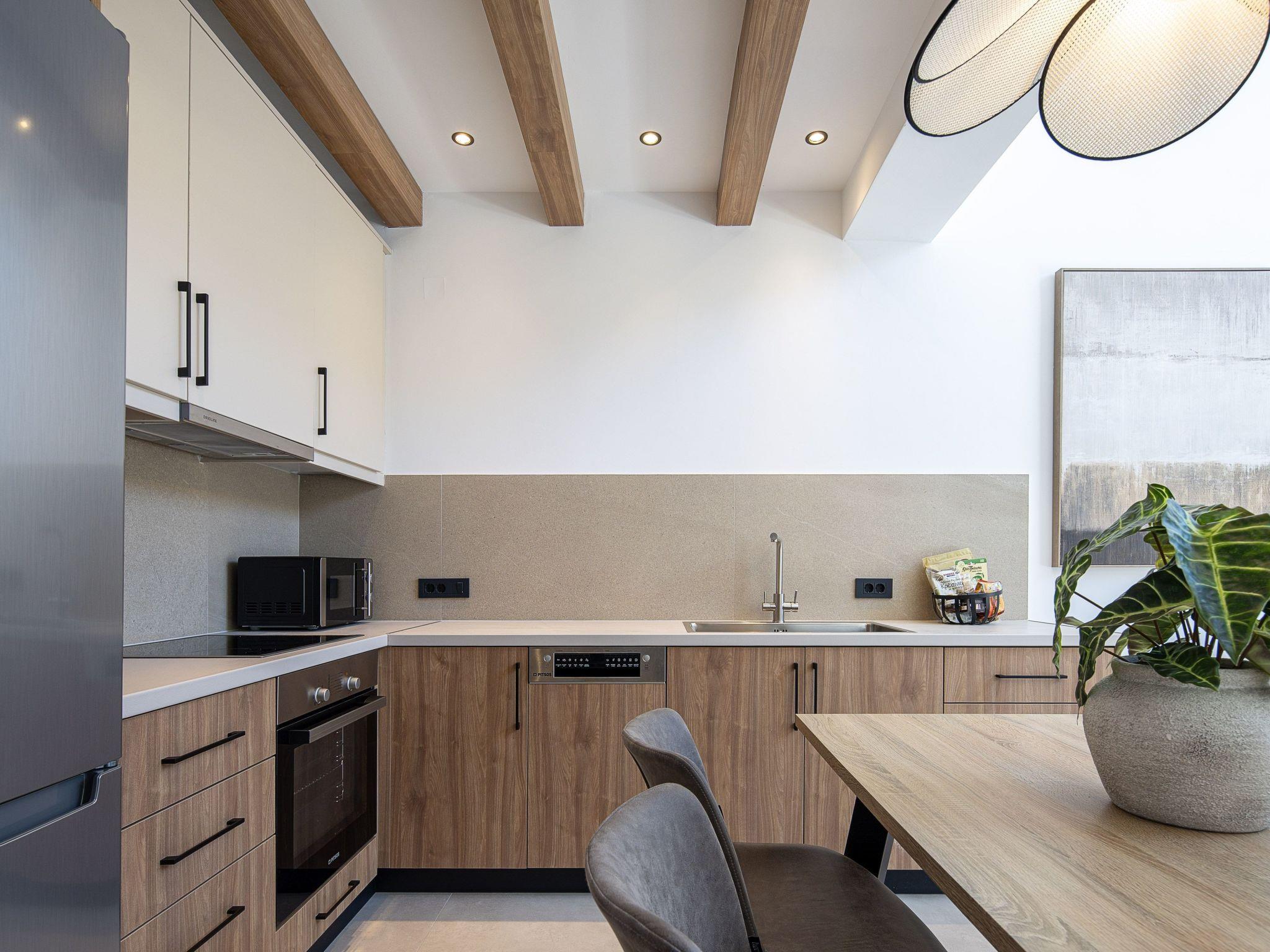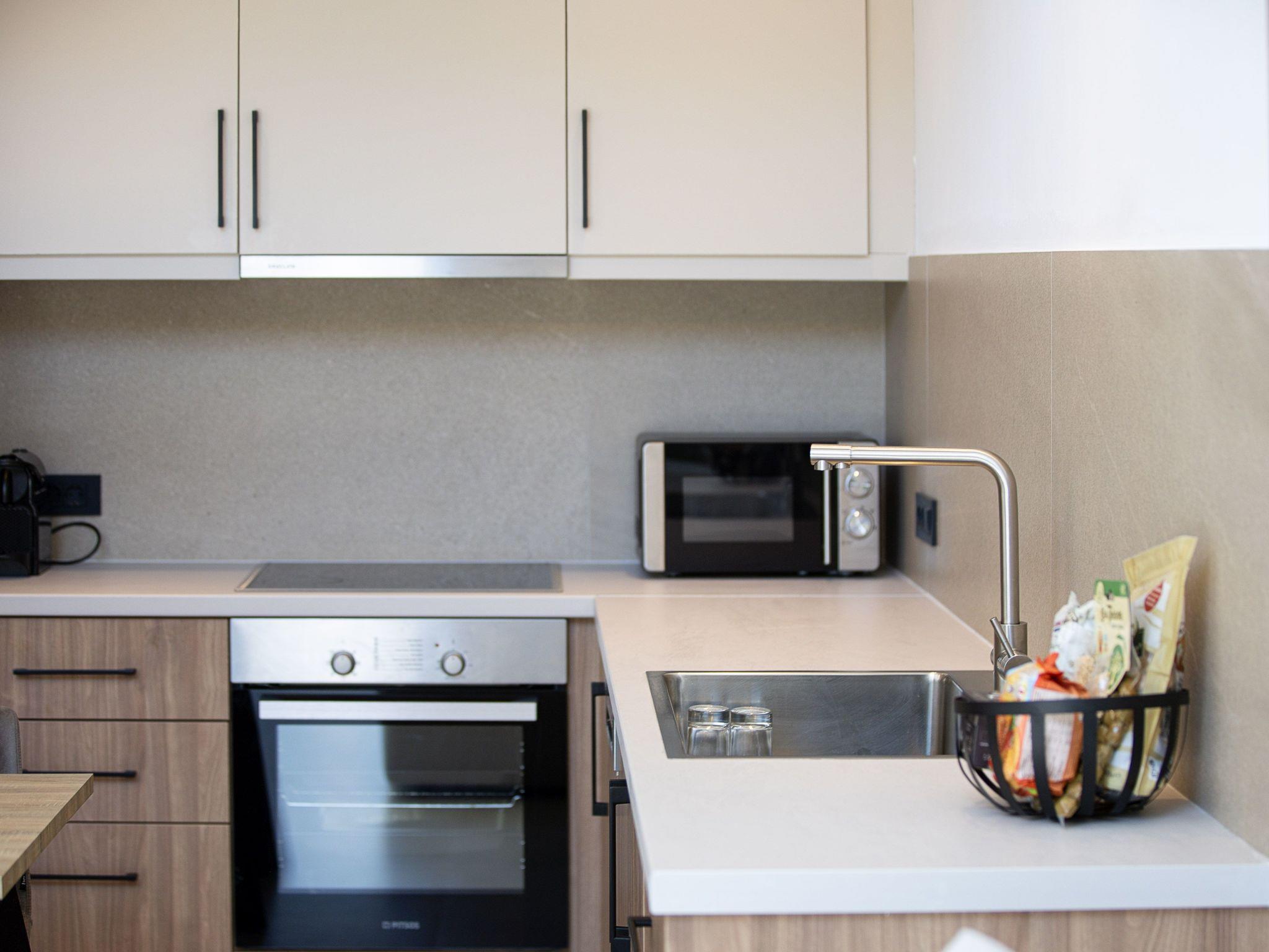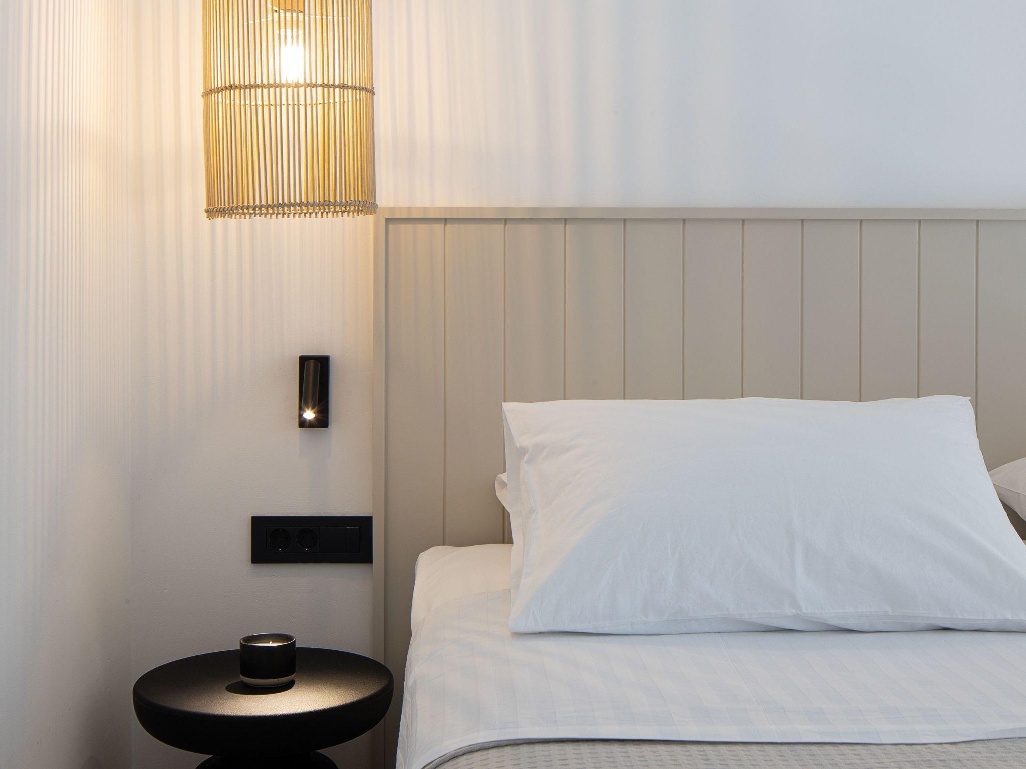The villa spans approximately 80 sqm of indoor living space and 90sqm of outdoor area, making it ideal for groups or families. The villas feature a spacious open-plan living area, where guests can relax on a comfortable sofa while enjoying modern amenities such as a 50’’ Smart TV with satellite channels. Large sliding doors provide access to private terraces or the pool area, creating an easy flow between the indoor and outdoor spaces. The villa has a fully functional kitchen, allowing guests to prepare meals with ease, and the dining area offers a welcoming space for shared meals. An extra guest can be accommodated on the sofa in the living area upon request at an extra cost. The sofa is comfortable for both adults and children as the size is 1.10*2.20m.