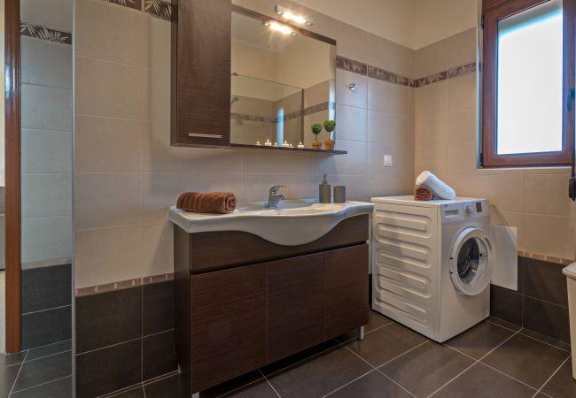 Outside, you'll find a private 20 sqm swimming pool surrounded by loungers and umbrellas, as well as a stone-built BBQ and outdoor furniture. Parking spaces are available on the property. Next door to the villa is the sister villa All season Star for larger groups. Just 200 meters from the villa, there is a traditional tavern and two mini markets. Rethymno town, with its famous Renaissance atmosphere, museums, restaurants, an organized sandy beach, and various tourist facilities, is only 3 km away.