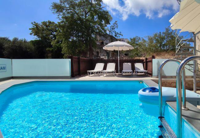The villa is well-appointed with three satellite TV sets, air conditioning, and WiFi available throughout the property. Villa Marni is securely enclosed by stone walls and boasts an outdoor area with comfortable furniture, umbrellas, sunbeds, and a private 12 sqm. swimming pool (operating from 1.4 to 15.11) for refreshing dips.