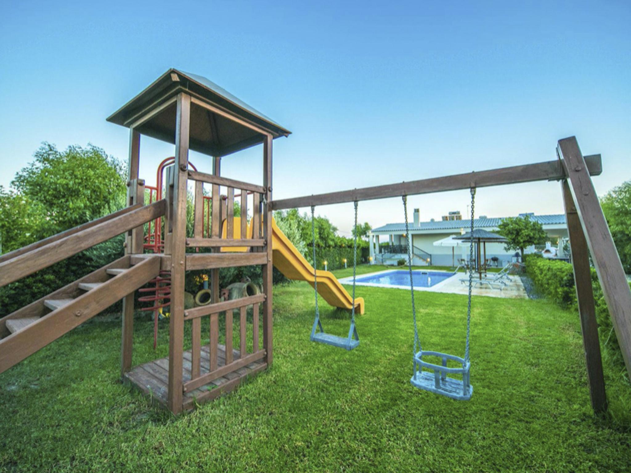 Villa Euphoria has 4 bedrooms with double beds, the one with en suite bathroom and the other two share a second bathroom, all of great utility and comfort. The open plan kitchen opens on a comfortable living room with a fireplace, a dining room and a cozy living room with Wii play machine and Wi-Fi. The broad balcony makes the ideal spot for enjoying the sea view and the magnificent sunset on pleasant evenings. With its amazing views, this exclusive property offers an optimum position to enjoy the sunlight and the utmost privacy. For children a Play station with a range of Games is also available. The hammock in the garden is unique for an afternoon siesta! Other appealing features of this home include air conditioning, a double garage and free wi-fi. This place is a little piece of paradise. The house is ideal for families with young children, young and older couples who want to relax in a house with many comforts, a garden ideal for children and those who love having their own fruit and vegetables growing in the garden. The property is set in garden ground with native vegetation, large lawn areas, mature trees, a totally new swimming pool, a playground and a build in BBQ place. A modernly designed home offering guests the chance to relax inside watching tv or sitting on the veranda overlooking the Mediterranean Sea. The garden is ideal for children to play and for adults to sunbathe. The extra mobile BBQ and the dining table in the garden, is an easy solution for lunch or dinner.