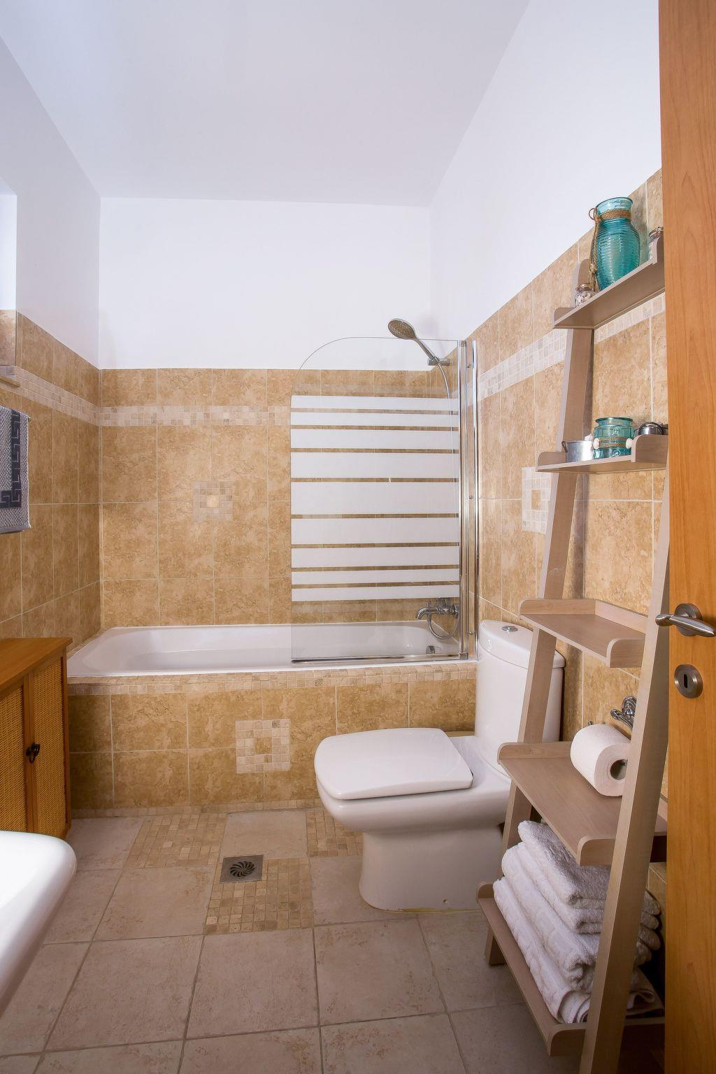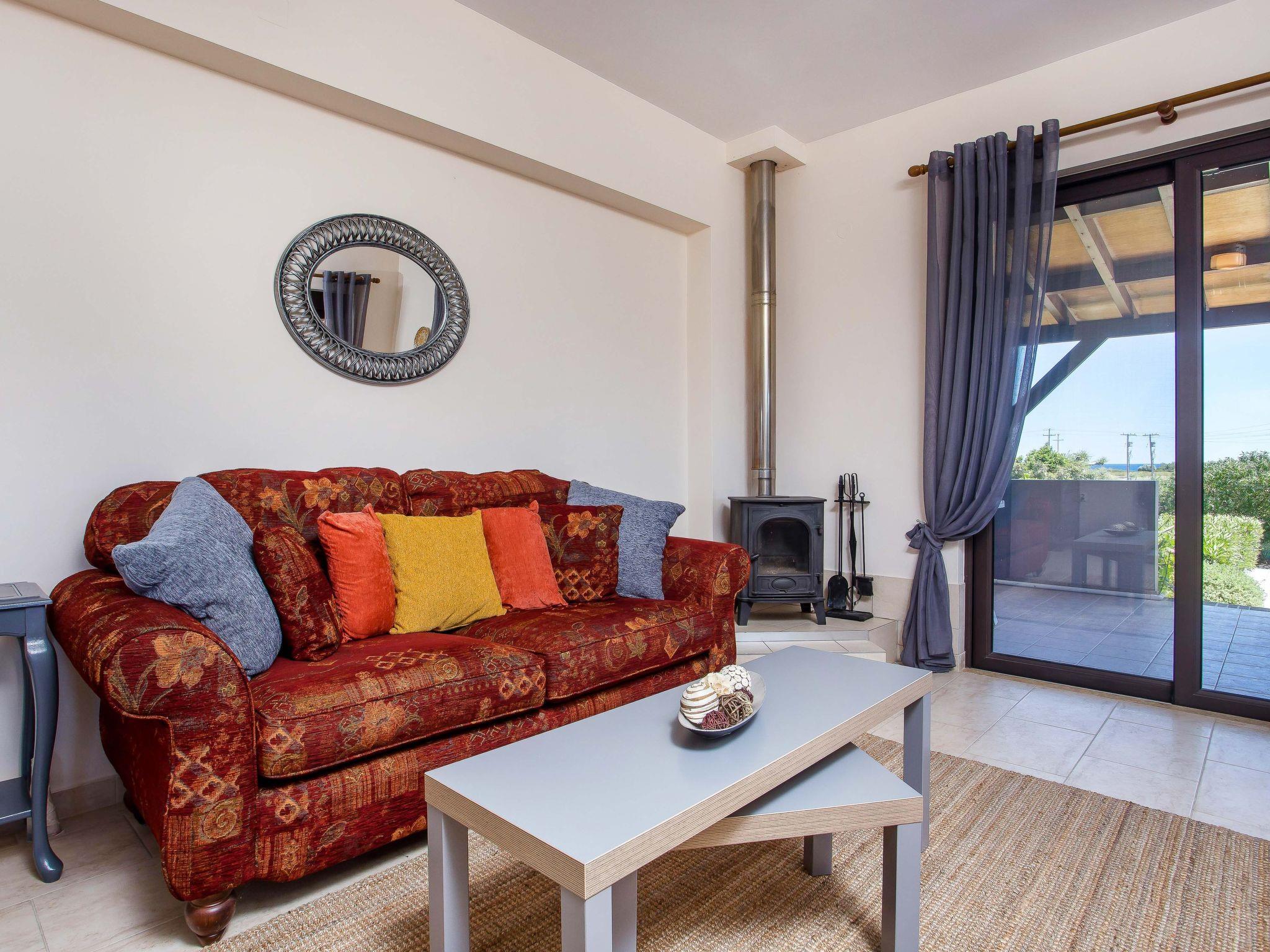 The villa features three bedrooms and can accommodate six persons. Two bedrooms have a 200 x 200 cm double bed, the third bedroom has two 90 x 200 cm single beds (can be pushed together to make a double). There is a comfortable living area with a fireplace, a fully equipped kitchen with a dining area and two bathrooms: one with a bath tub and one with a shower. Free wifi, fully air conditioned.