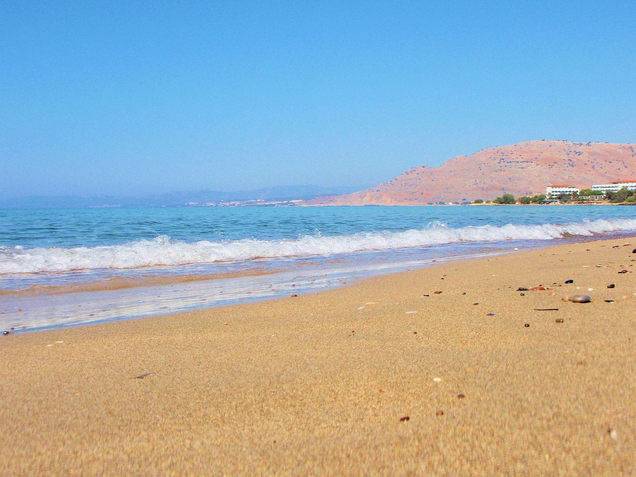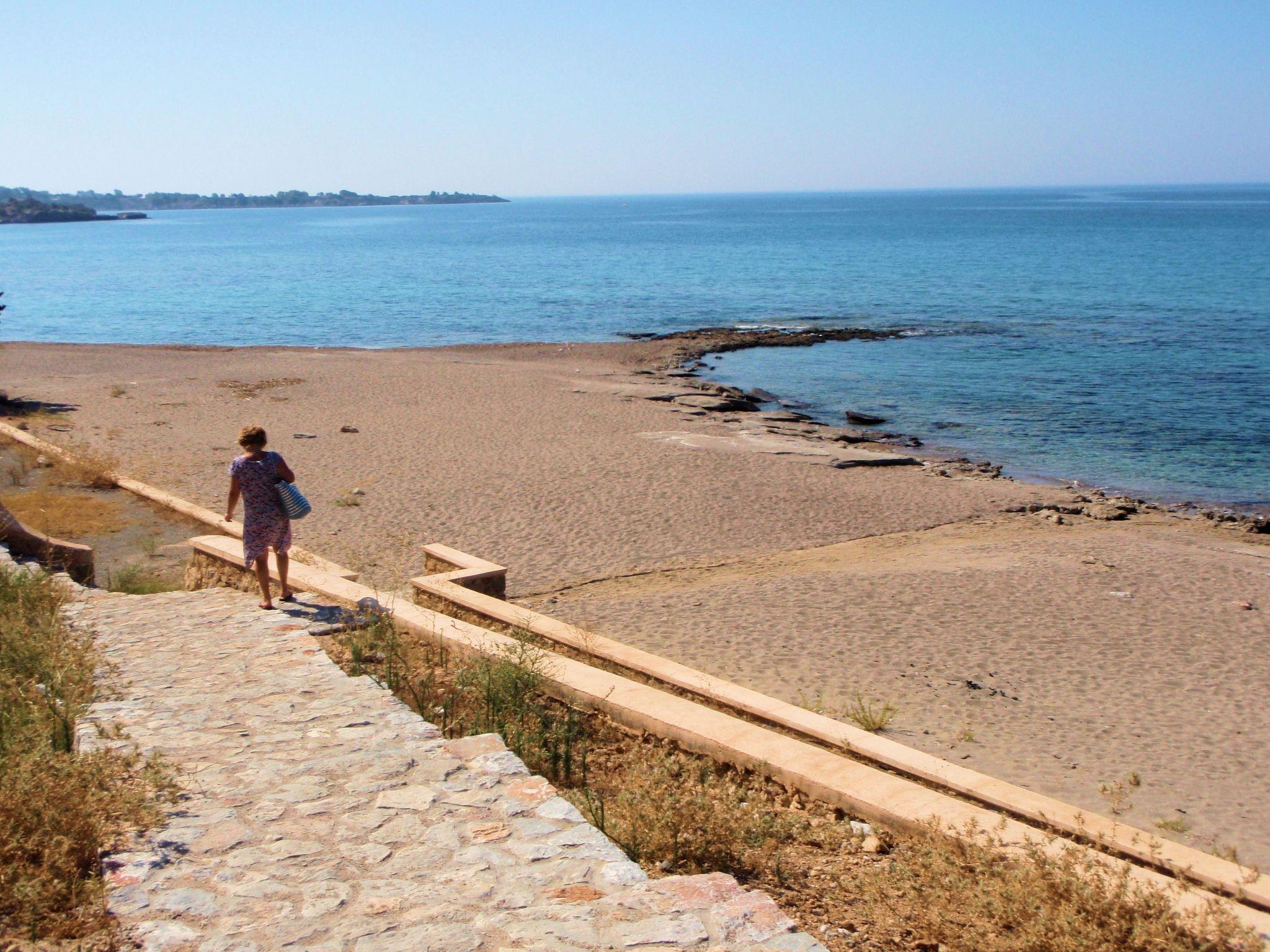 The beach is long and sandy, there is a section with sunbeds/umbrellas available for hiring and a canteen. The water is crystal clear and calm, perfect for swimming or sunbathing. There is also a rocky area for those who prefer fishing, diving or snorkeling! This is one of the emptiest and quietest beaches in this stretch of coast.
