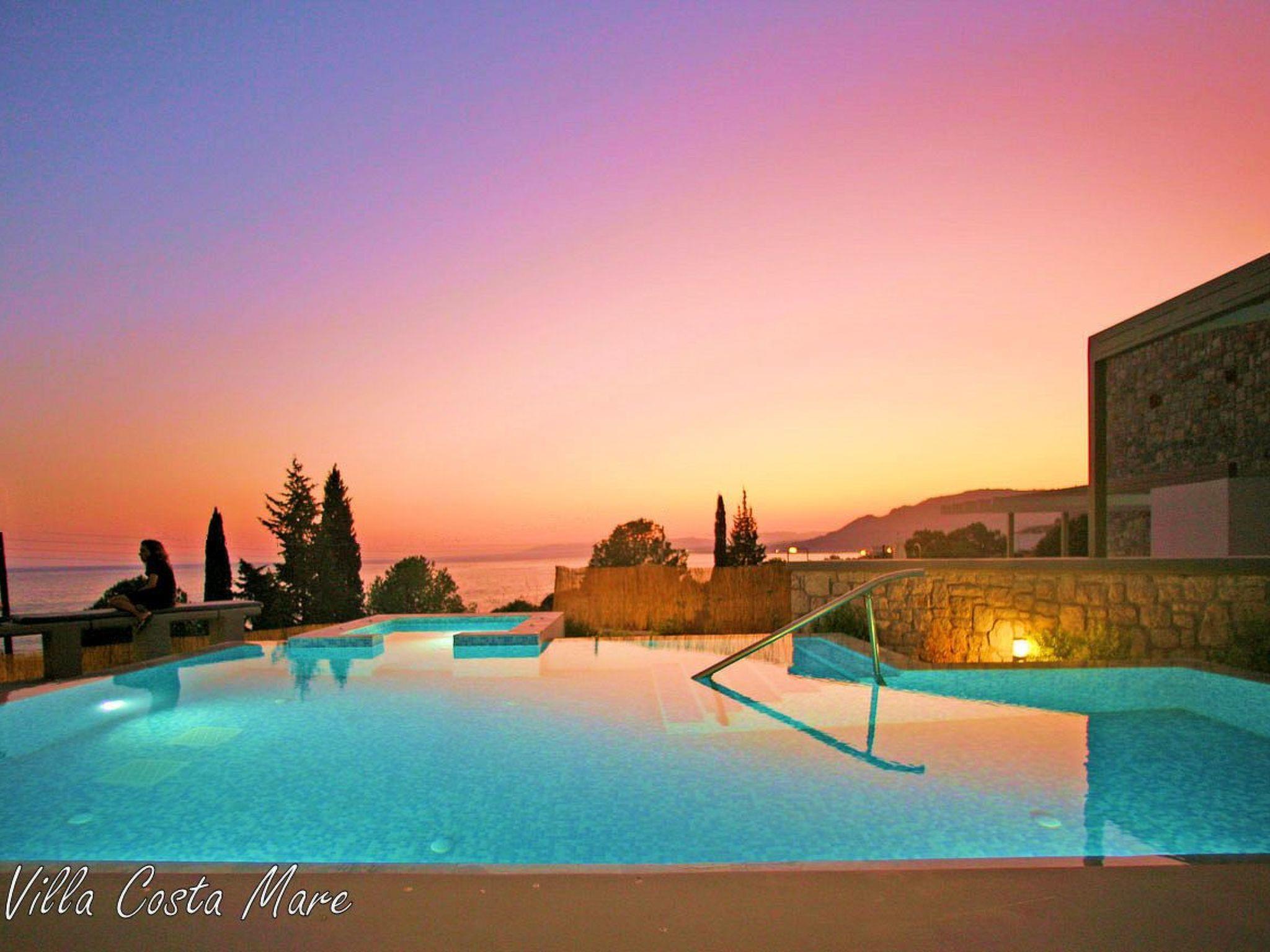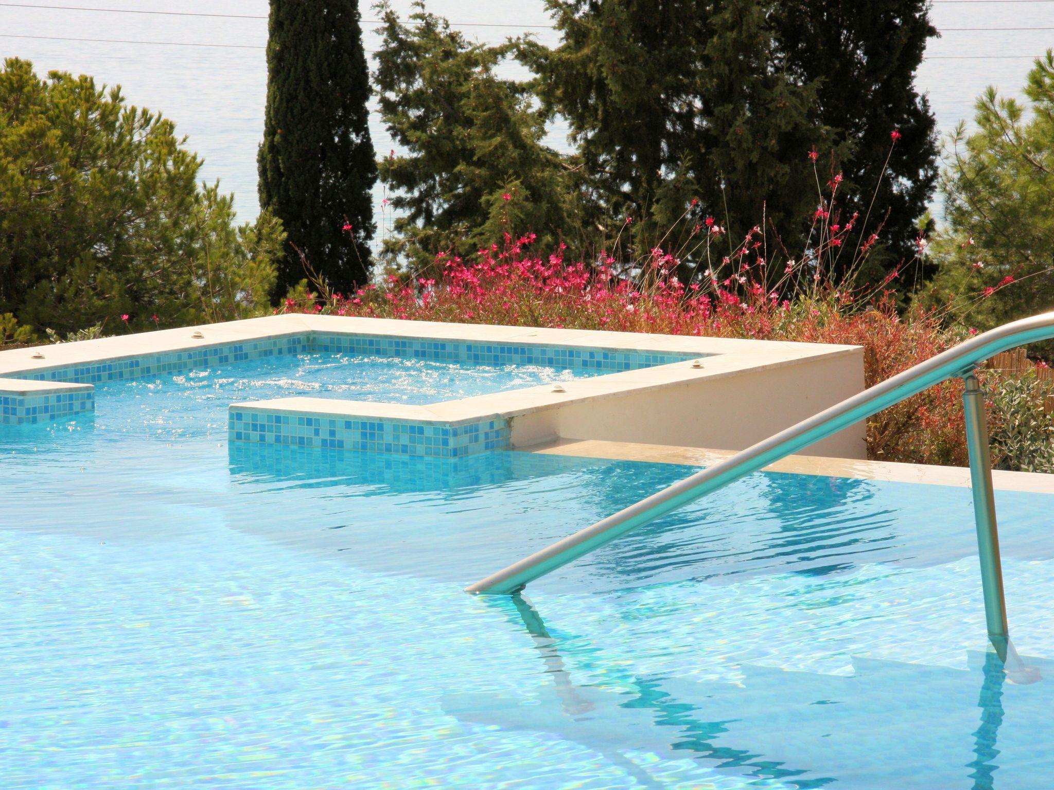 The large private pool /Jacuzzi pool is expertly maintained and there are enough sun loungers for all the guests. The pool can be accessed by steps. The pool is private and solely for the use of Villa Costa Mare guests. The barbecue area is big enough for lovely meals away from the sun. Its front side overlooks the sea while in the back side there is a beautiful mountain view. In the garden there are spots where you can hide from moments of relaxation.
