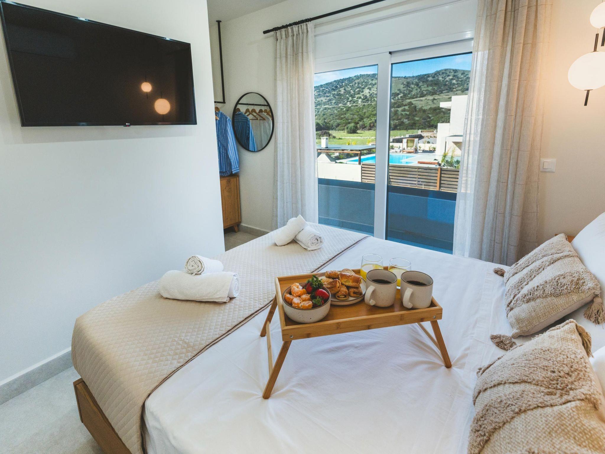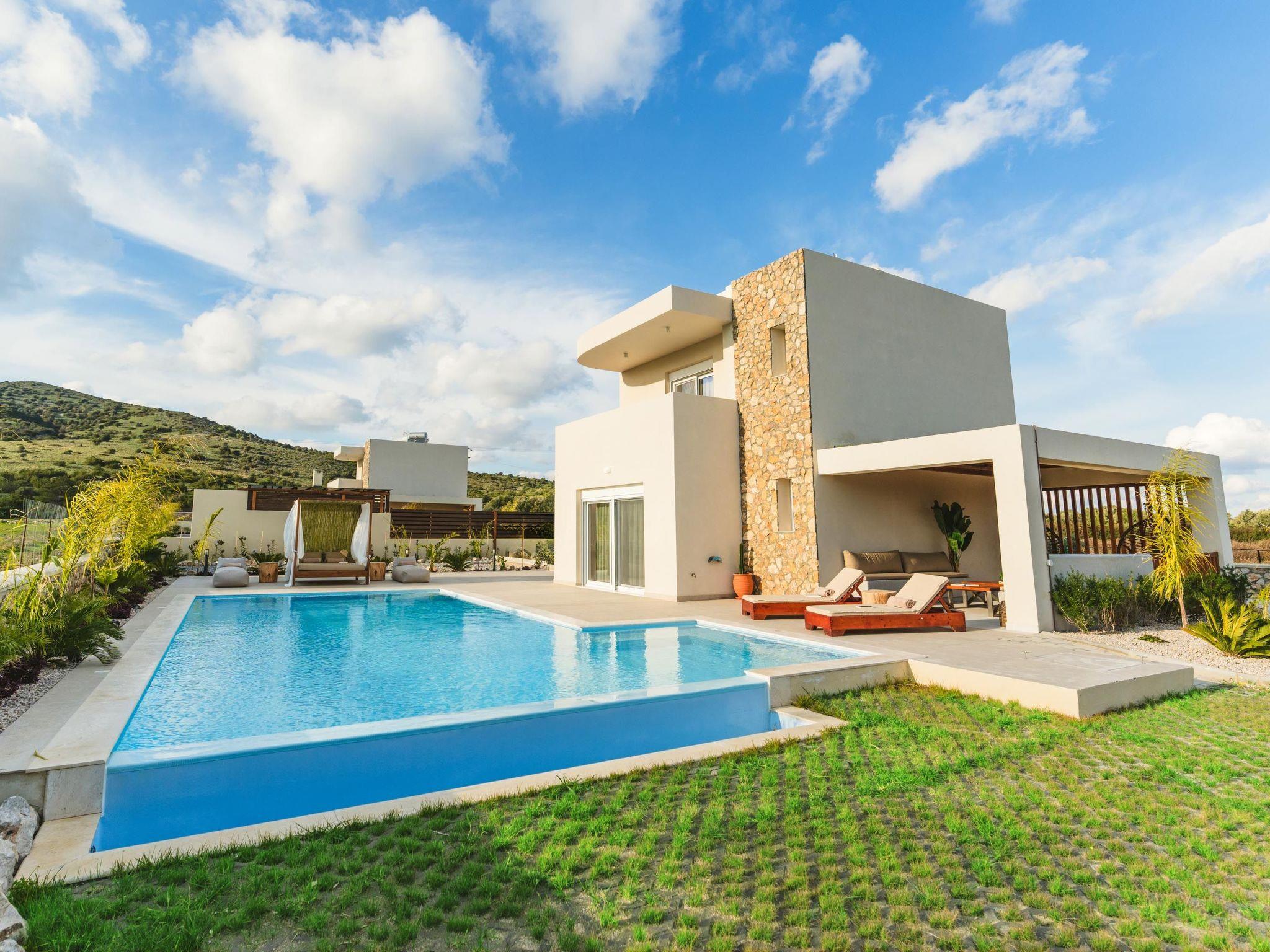 Cleopatras Villa in Lachania, Rhodes, comfortably hosts 6 guests. This charming villa offers spacious accommodation with modern amenities, including a fully equipped kitchen, cozy living areas, and a private swimming pool 12x4. Surrounded by beautiful scenery, it promises a relaxing retreat for families or friends seeking a memorable vacation.