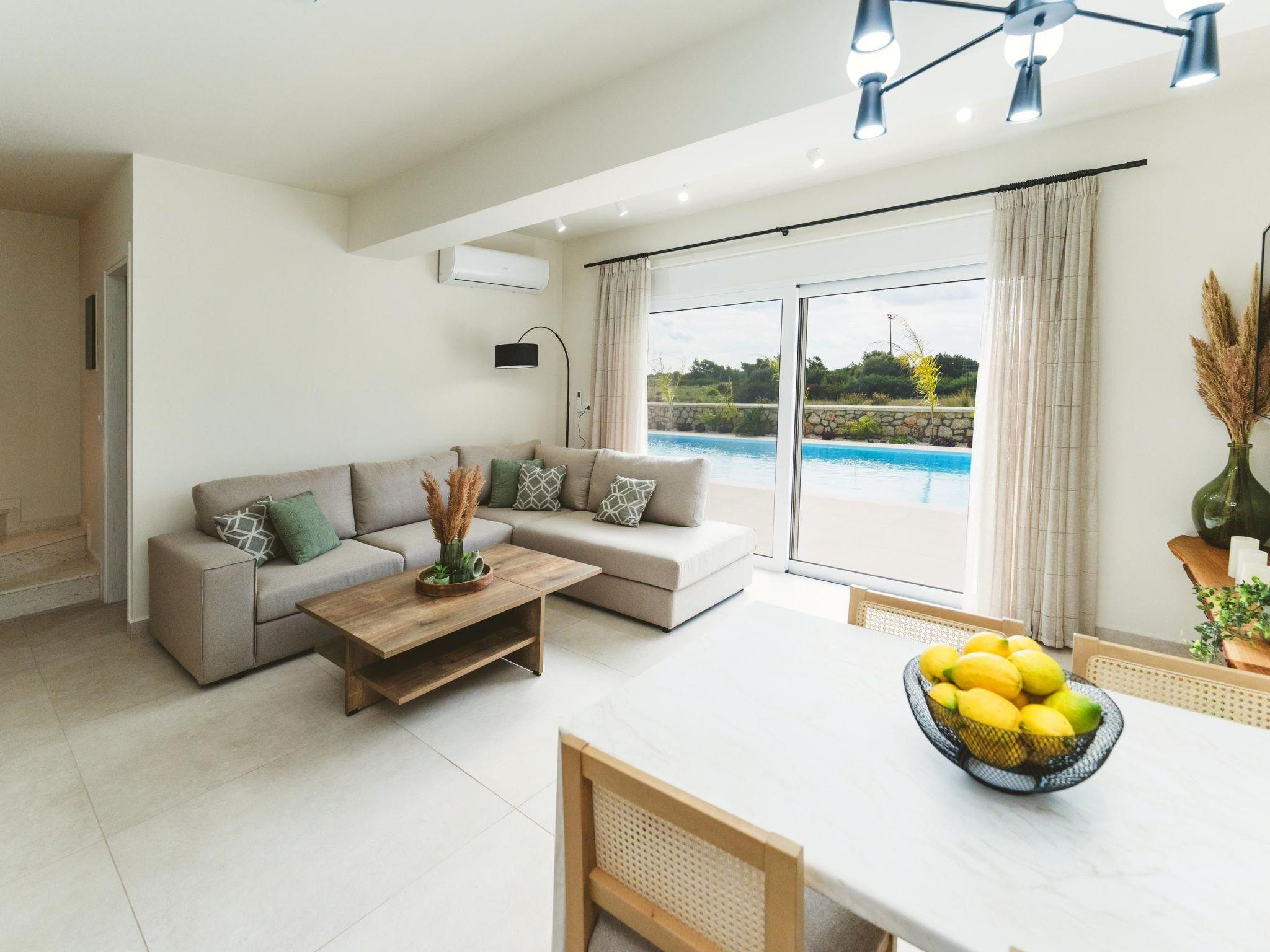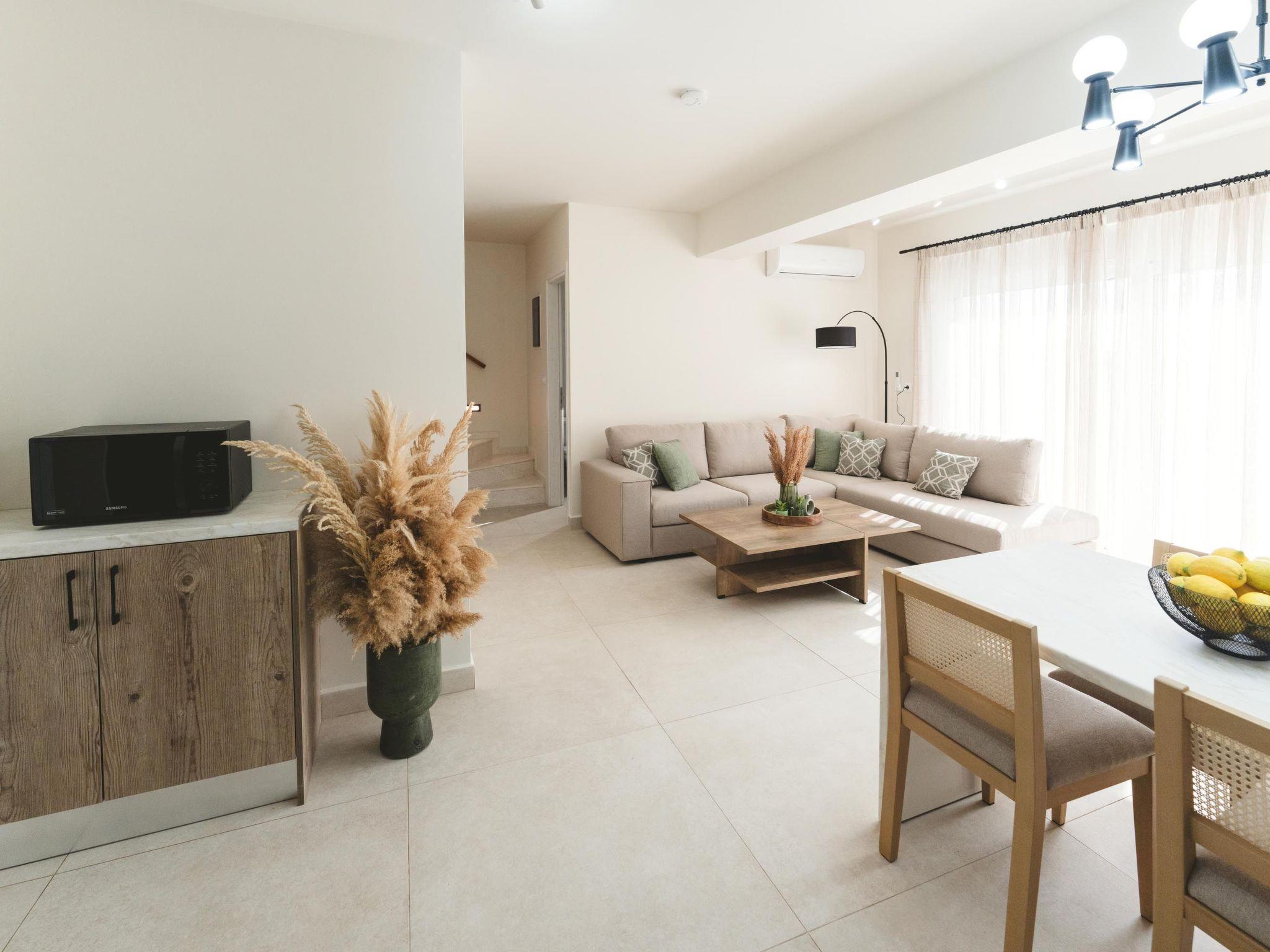 Welcome to Cleopatras Villa, your serene oasis in Lachania, Rhodes. This stunning villa boasts three fully air-conditioned bedrooms, ensuring comfort in every corner. On the first floor, a cozy bedroom awaits with double bed and foul bathroom. In the second floor discover two more bedrooms, each furnished with a double bed and bathrooms, also with invigorating showers.There is also a bedroom for people with special needs.Prepare delicious meals in the fully equipped kitchen and gather in the spacious living room.Step outside to the peacful outdoor dining area, furnished with comfortable seating and a BBQ grill, enjoyable for meals with loved ones and spending your free time in table tennis. Dive into the private swimming pool for a refreshing dip or soak up the sun on the outdoor furniture, surrounded by the lush landscape of Rhodes. Experience luxury and relaxation at Cleopatras Villa, your ultimate getaway destination.
