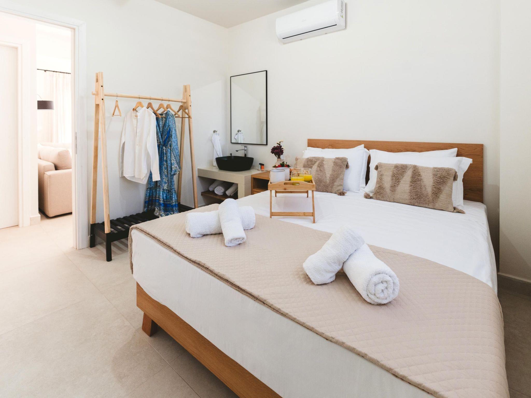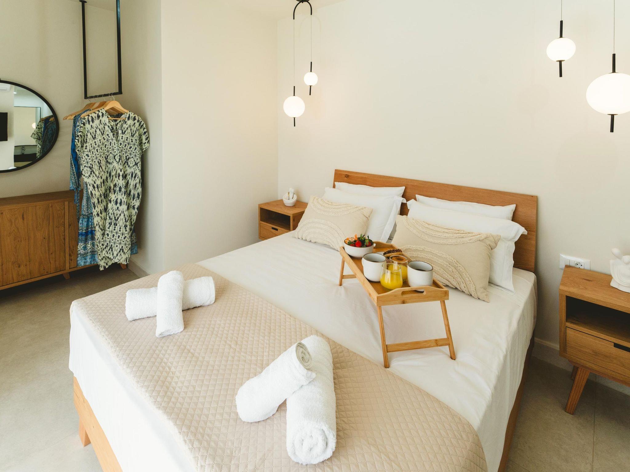 Beyond the villa's serene surroundings, Lahania and Gennadi boast expansive beaches, while Gennadi village provides essential amenities such as supermarkets, pharmacies, bakeries, car and motorbike rentals, restaurants, ATMs, cafes, and beach bars. The lively town of Lindos, home to an ancient Acropolis, is a mere 20-minute drive away. Equally distant in the opposite direction lies Prasonisi, renowned for its unique natural environment and a beach that caters to water sports enthusiasts.