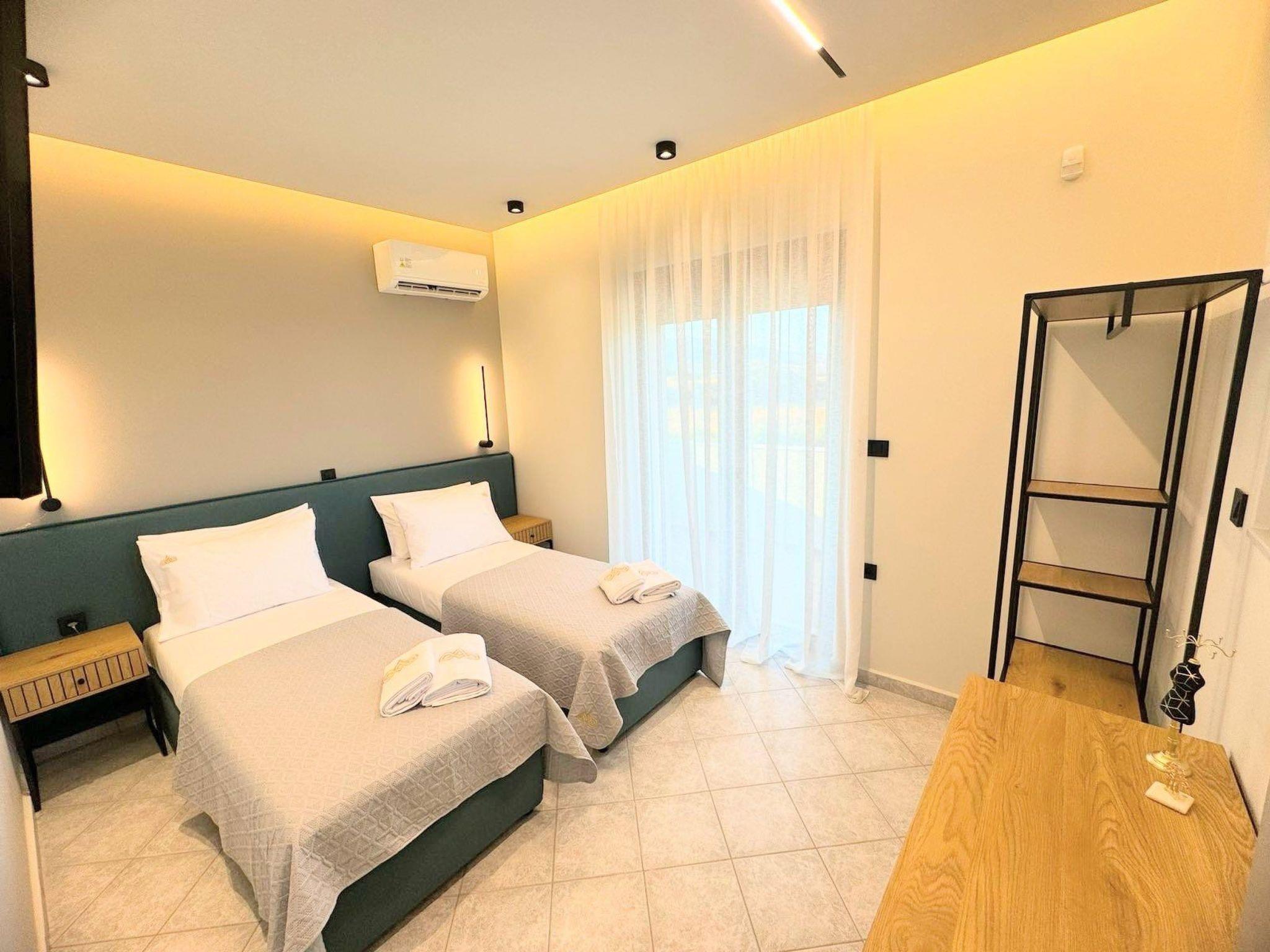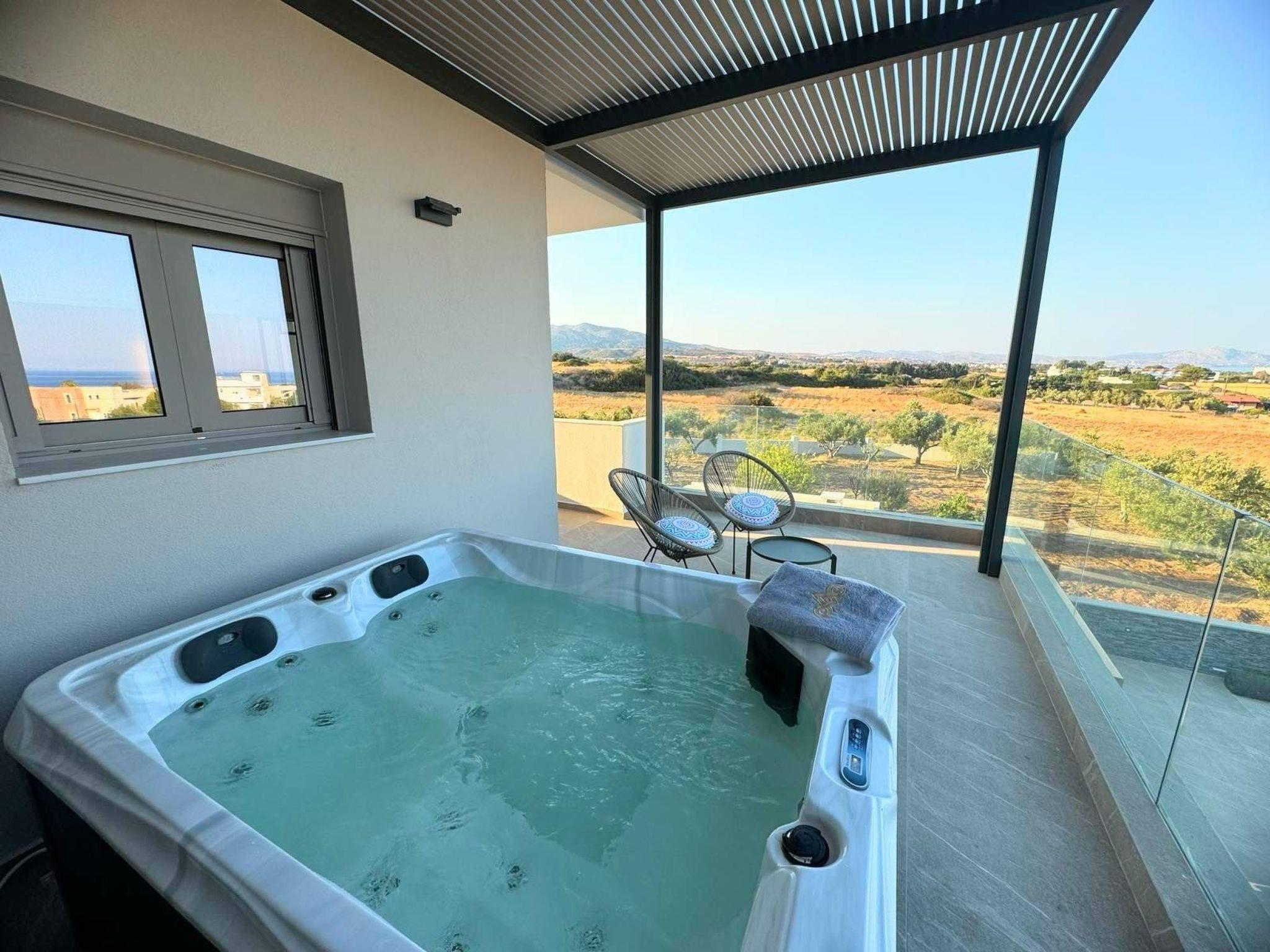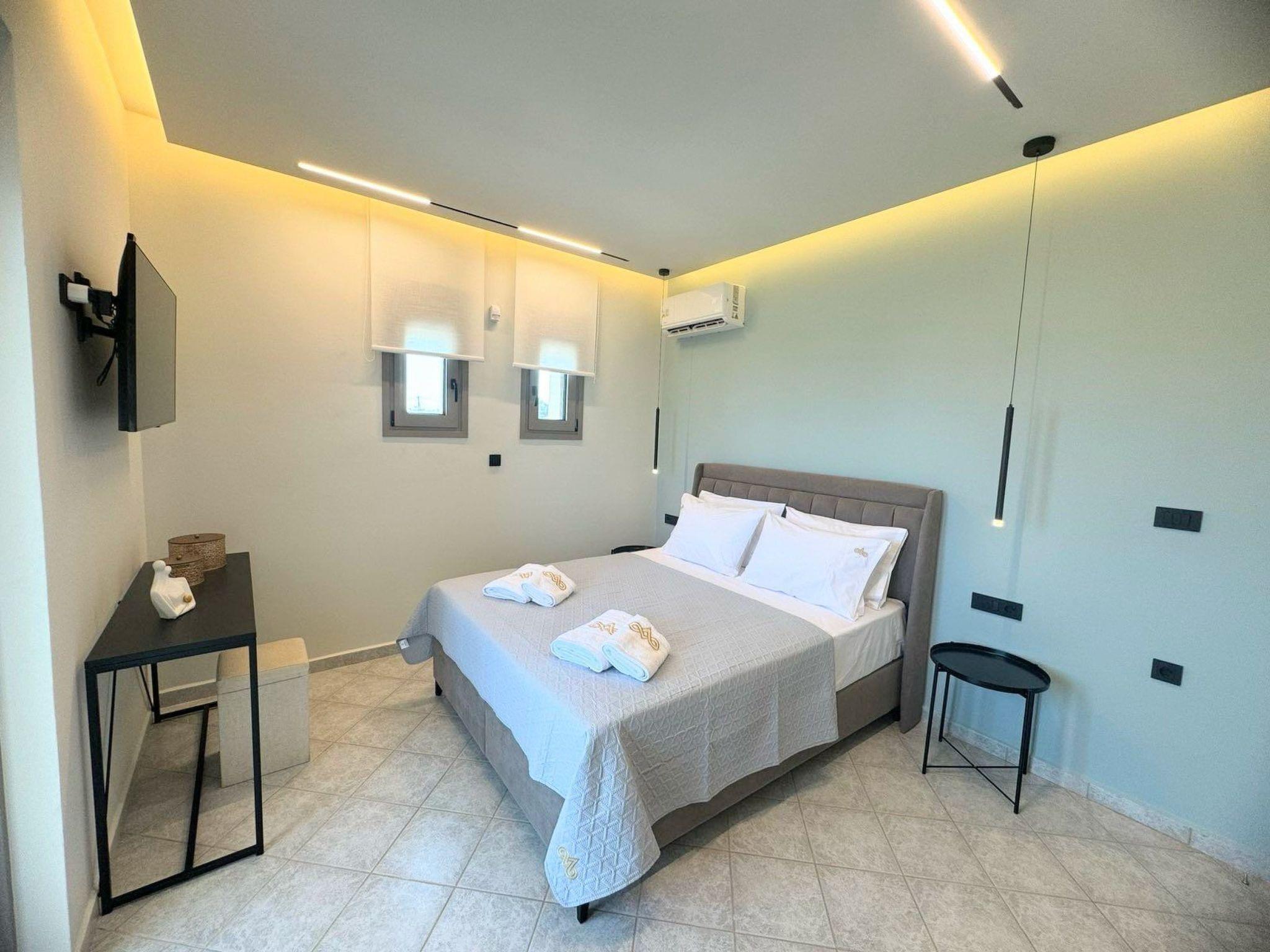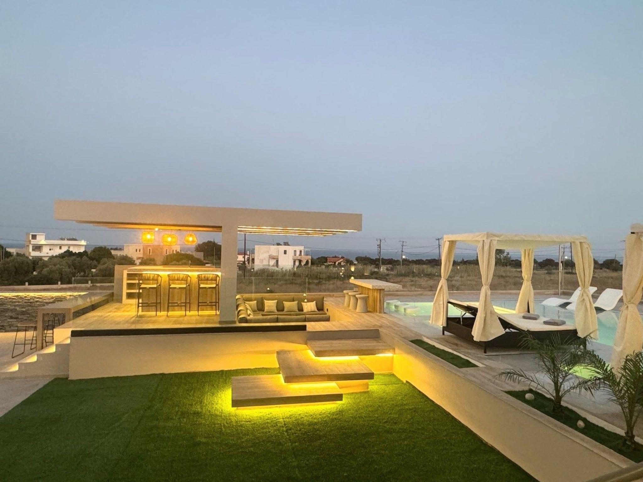 Grand Aqua Luxury Villa by Mintzi is a beautiful retreat in Gennadi, Rhodes, designed to accommodate up to 8 guests comfortably. The villa features 3 air-conditioned bedrooms: two with double beds and one with two single beds, perfect for families or groups of friends. The room with two single beds boasts a private balcony that includes a heated jacuzzi, providing a perfect spot to unwind while enjoying the views. There are 3 modern bathrooms, each equipped with a shower, ensuring convenience and privacy for all guests. The villa’s spacious living room is perfect for relaxation, offering two single sofa beds and a TV for entertainment. The fully equipped kitchen provides everything you need to prepare meals, from breakfast to dinner, making it ideal for those who enjoy cooking. Outdoors, Grand Aqua Luxury Villa by Mintzi offers a fantastic setting for enjoying the beautiful Rhodes weather. The dining area with a BBQ is perfect for outdoor meals, while the sitting area invites you to relax and take in the surroundings. The private swimming pool is a highlight, offering a refreshing escape on warm days. For added convenience, the villa includes a private parking space, ensuring easy access and security for your vehicle. Grand Aqua Luxury Villa by Mintzi is the perfect choice for those seeking a relaxing and luxurious stay in a beautiful seaside location.