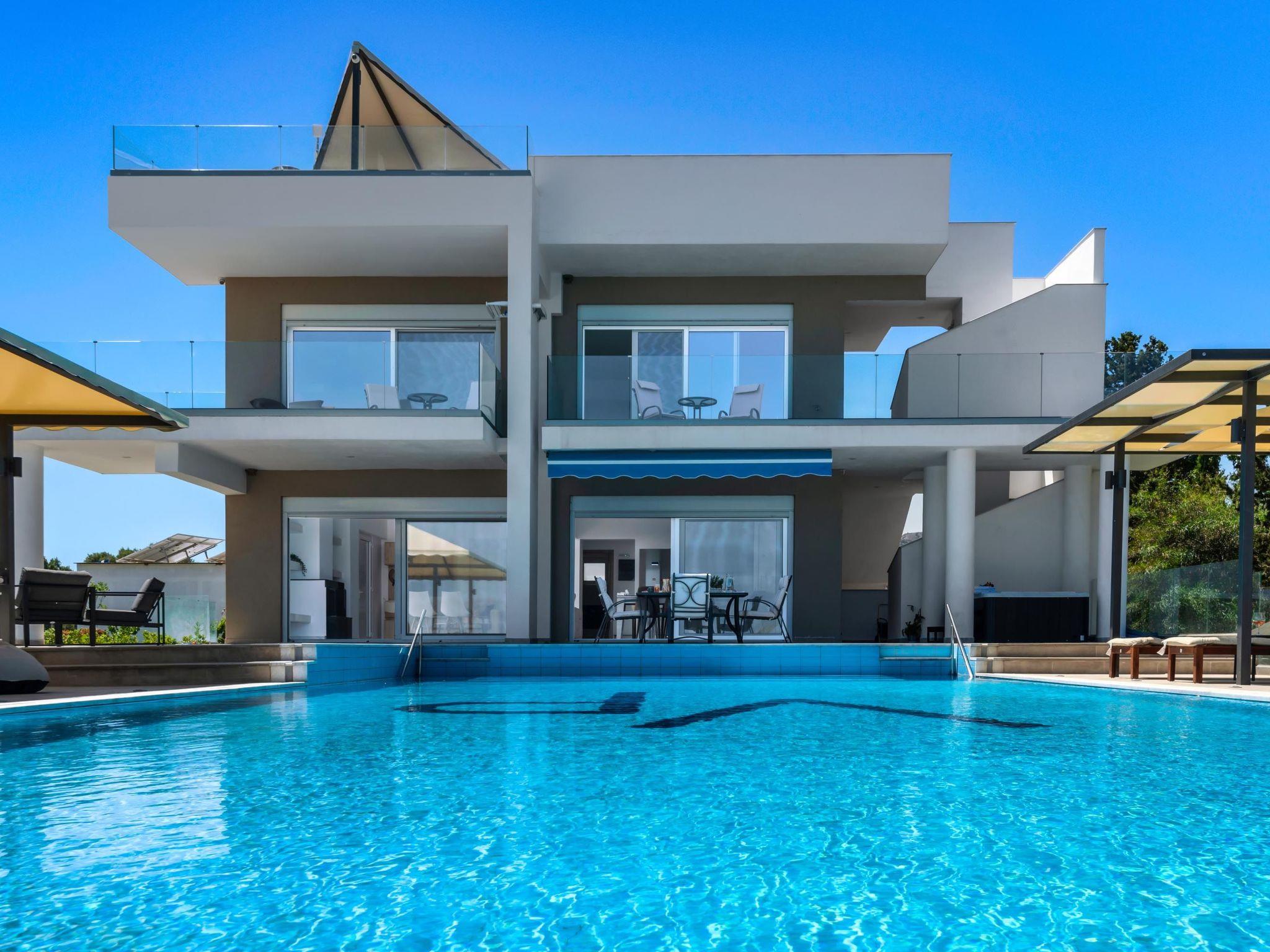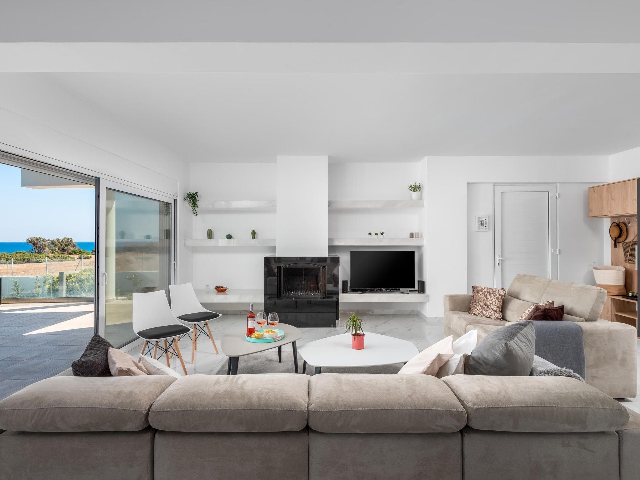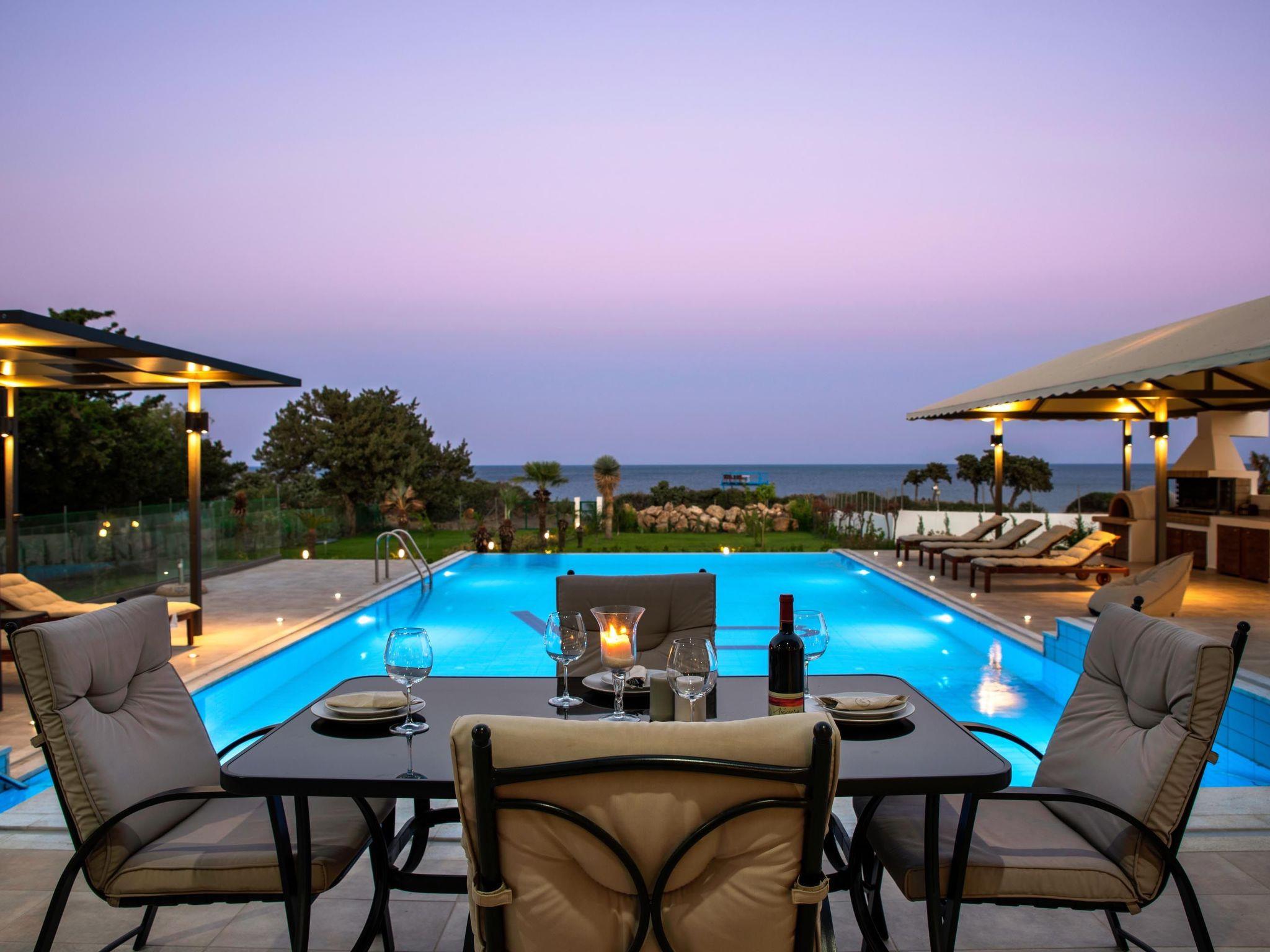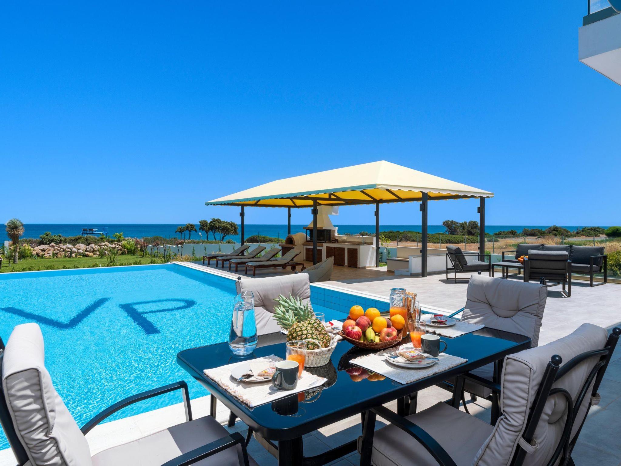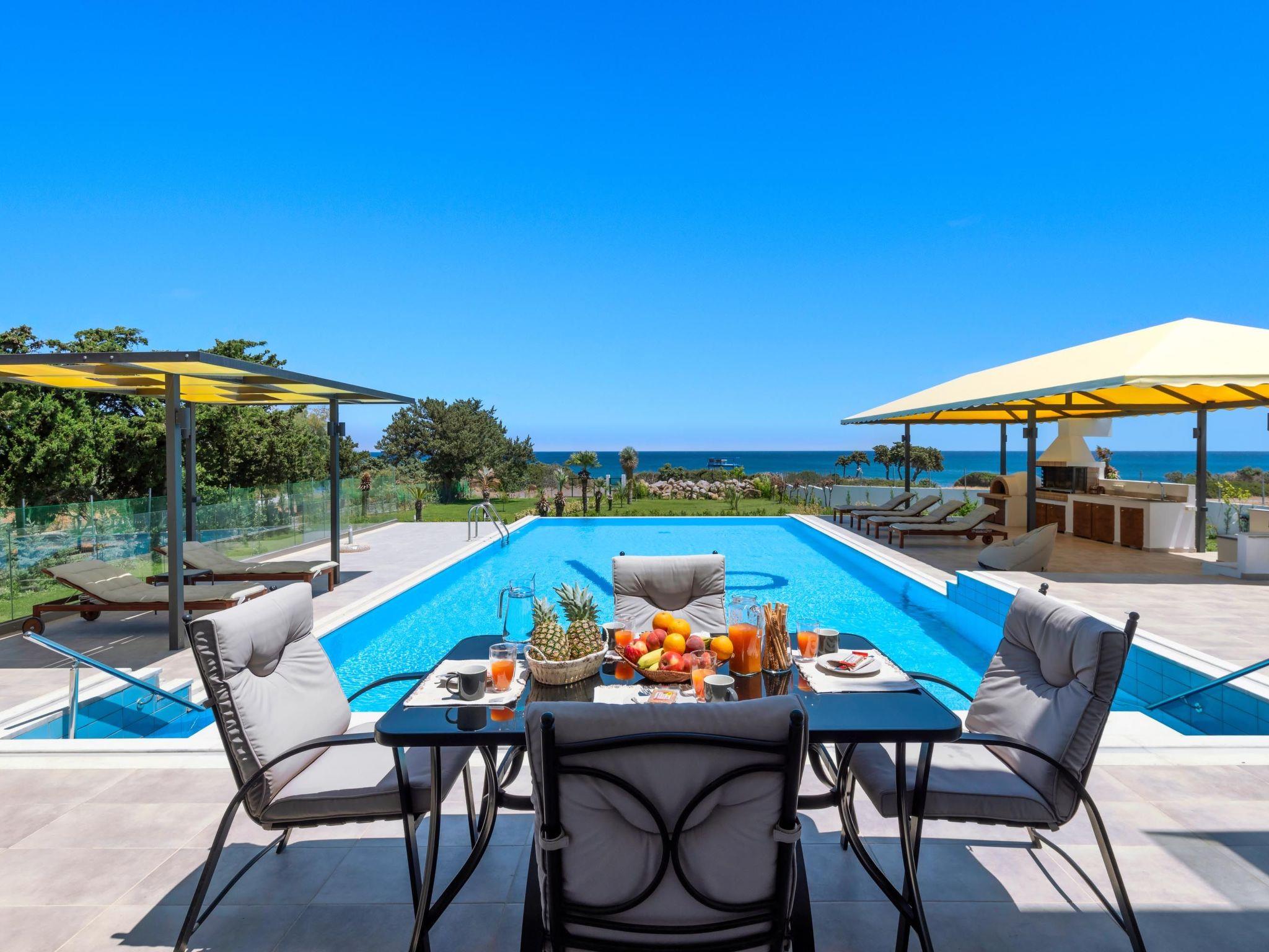 Viviane Paulos Villa is a beachfront villa located in the unspoiled south part of the island, Gennadi. It offers a private swimming pool and 2 heated jacuzzies as well as an easy access to the closest beach in a walking distance of 5 minutes. This beautiful villa also offers sunbeds at the beach for extra fun. Viviane Paulos Villa conveniently accommodates up to 12 guests. There’s an access to the upper floors from the exterior stairs. Also, in the basement, it’s the house of a gentle couple, the pool maintenance man and the cleaning lady of the villa.This incredible beachfront villa features large interior spaces with an elegant design that creates a welcoming atmosphere, as well as exceptional outdoor spaces with great gardening and amenities. There are 5 fully airconditioned bedrooms with double beds and flat screen TVs. Also, there are 2 single sofa beds in the living room. Guests will find 2 wonderful bathrooms with showers as well as an outdoor wc. Also, there’s an open plan kitchen, fully equipped for any meal preparation as well as a living room and a dining area. Outdoors, the villa is equally impressive as indoors. It offers beautiful gardening surrounding the magnificent pool area and the heated jacuzzi that are equipped with parasols and sun beds, creating the perfect setting for a relaxed time under the golden rays of the Greek sun. Also, the villa offers incredible furnished balconies and a heated jacuzzi on the rooftop. There’s an incredible BBQ installation and a furnished area where guests can enjoy a truly unique outdoor gathering. There’s an access to the upper floors from the exterior stairs. This beautiful villa also offers sunbeds at the beach for extra fun.