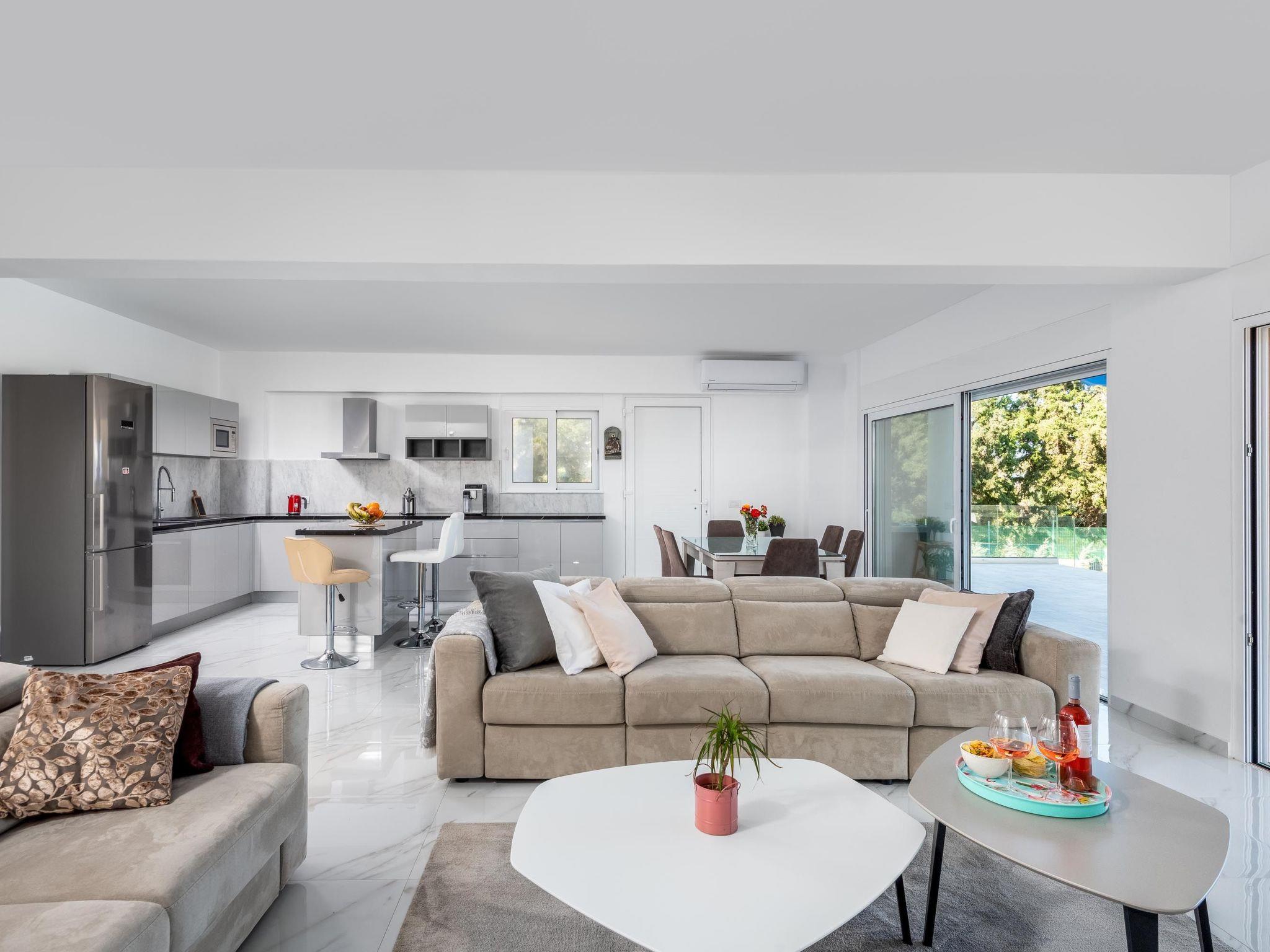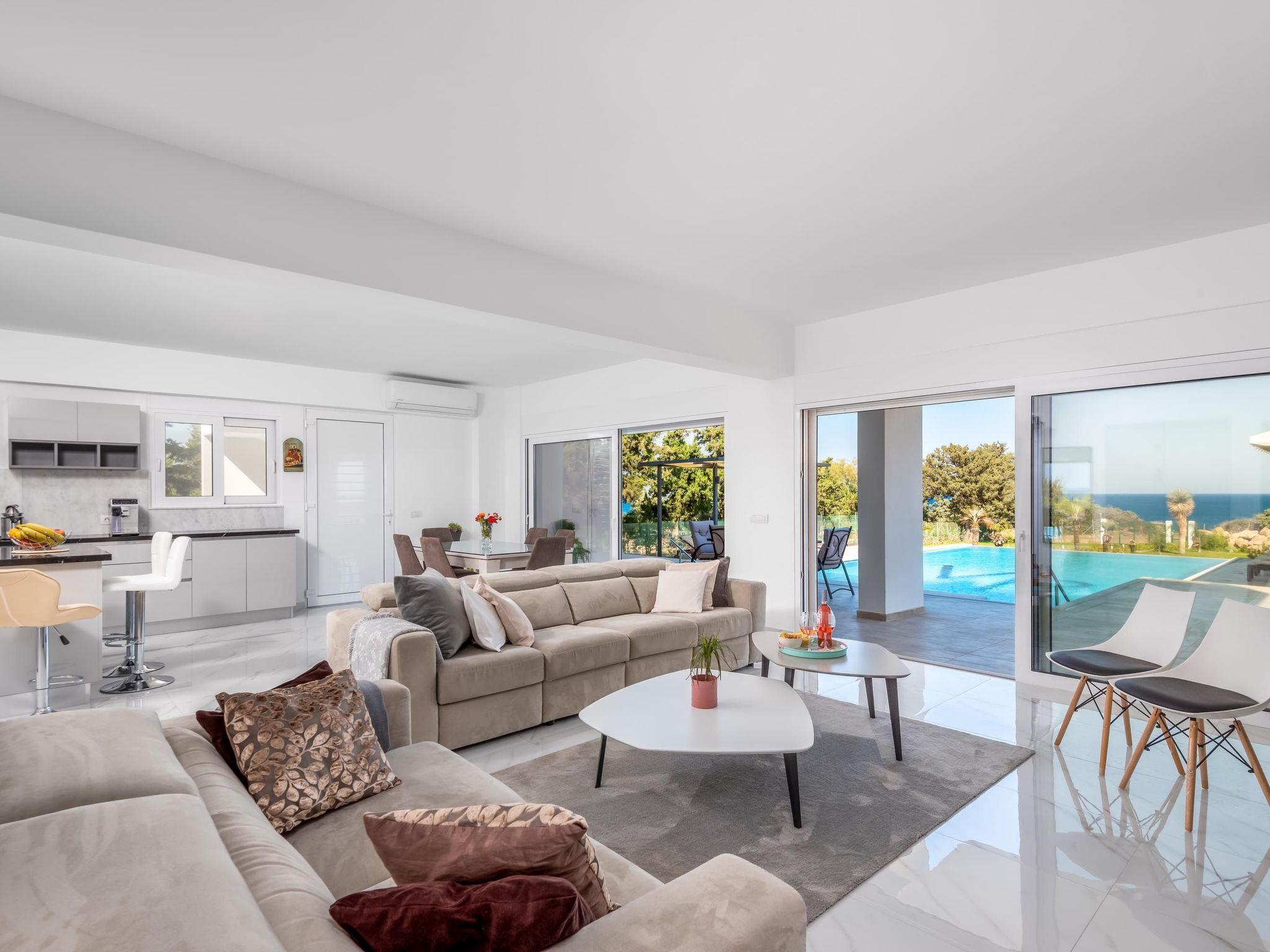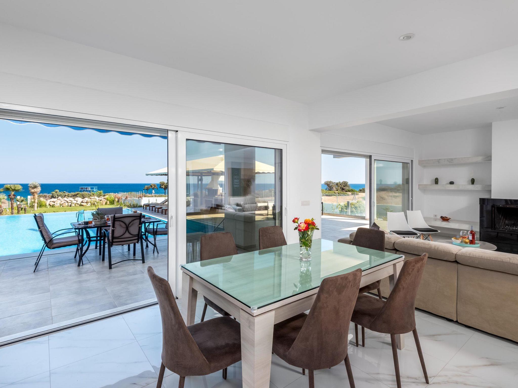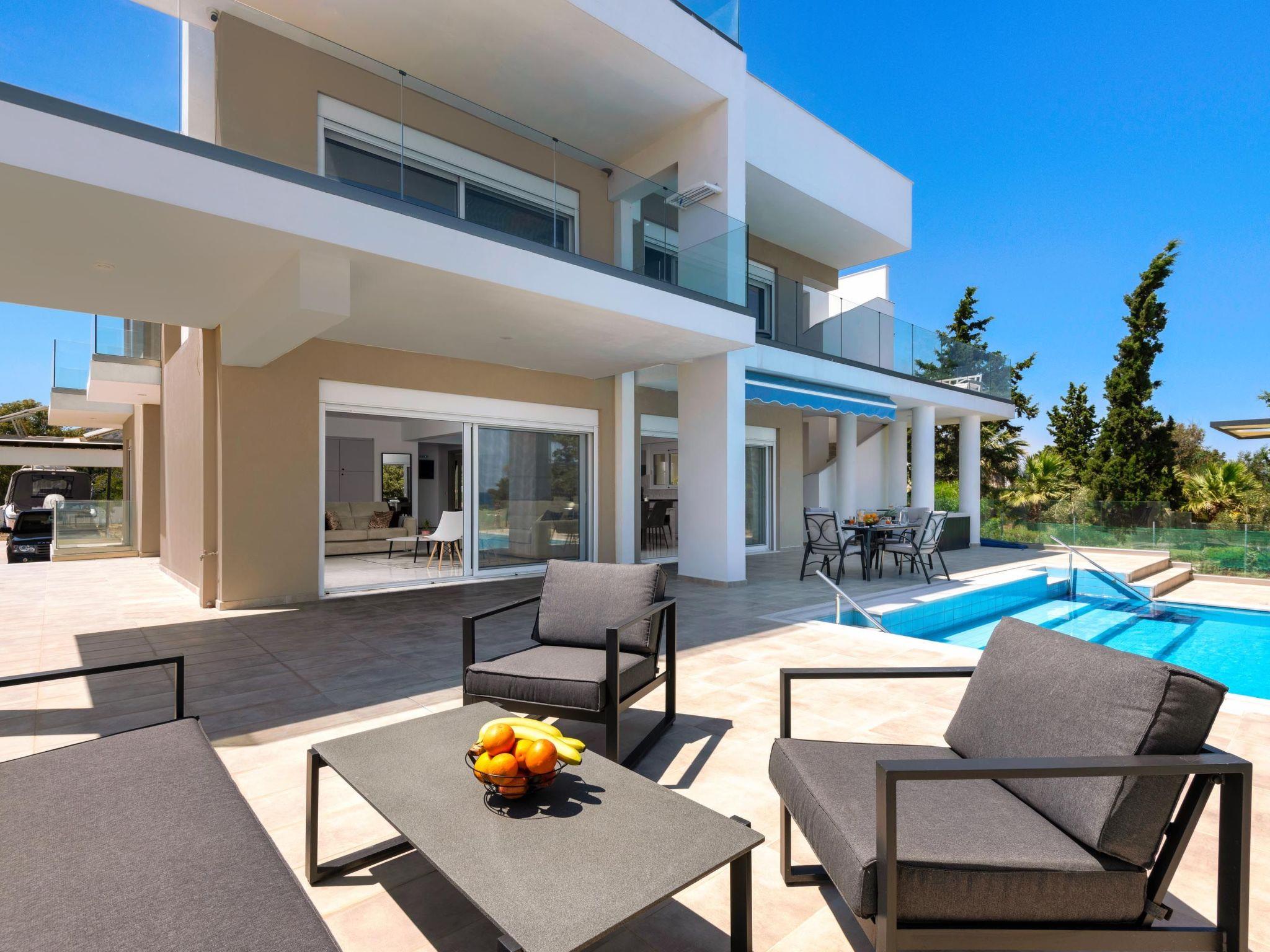 Viviane Paulos Villa is a beachfront villa located in the unspoiled south part of the island, Gennadi. It offers a private swimming pool and 2 heated jacuzzies as well as an easy access to the closest beach in a walking distance of 5 minutes. This beautiful villa also offers sunbeds at the beach for extra fun. Viviane Paulos Villa conveniently accommodates up to 12 guests. There’s an access to the upper floors from the exterior stairs. Also, in the basement, it’s the house of a gentle couple, the pool maintenance man and the cleaning lady of the villa.This incredible beachfront villa features large interior spaces with an elegant design that creates a welcoming atmosphere, as well as exceptional outdoor spaces with great gardening and amenities. There are 5 fully airconditioned bedrooms with double beds and flat screen TVs. Also, there are 2 single sofa beds in the living room. Guests will find 2 wonderful bathrooms with showers as well as an outdoor wc. Also, there’s an open plan kitchen, fully equipped for any meal preparation as well as a living room and a dining area. Outdoors, the villa is equally impressive as indoors. It offers beautiful gardening surrounding the magnificent pool area and the heated jacuzzi that are equipped with parasols and sun beds, creating the perfect setting for a relaxed time under the golden rays of the Greek sun. Also, the villa offers incredible furnished balconies and a heated jacuzzi on the rooftop. There’s an incredible BBQ installation and a furnished area where guests can enjoy a truly unique outdoor gathering. There’s an access to the upper floors from the exterior stairs. This beautiful villa also offers sunbeds at the beach for extra fun.