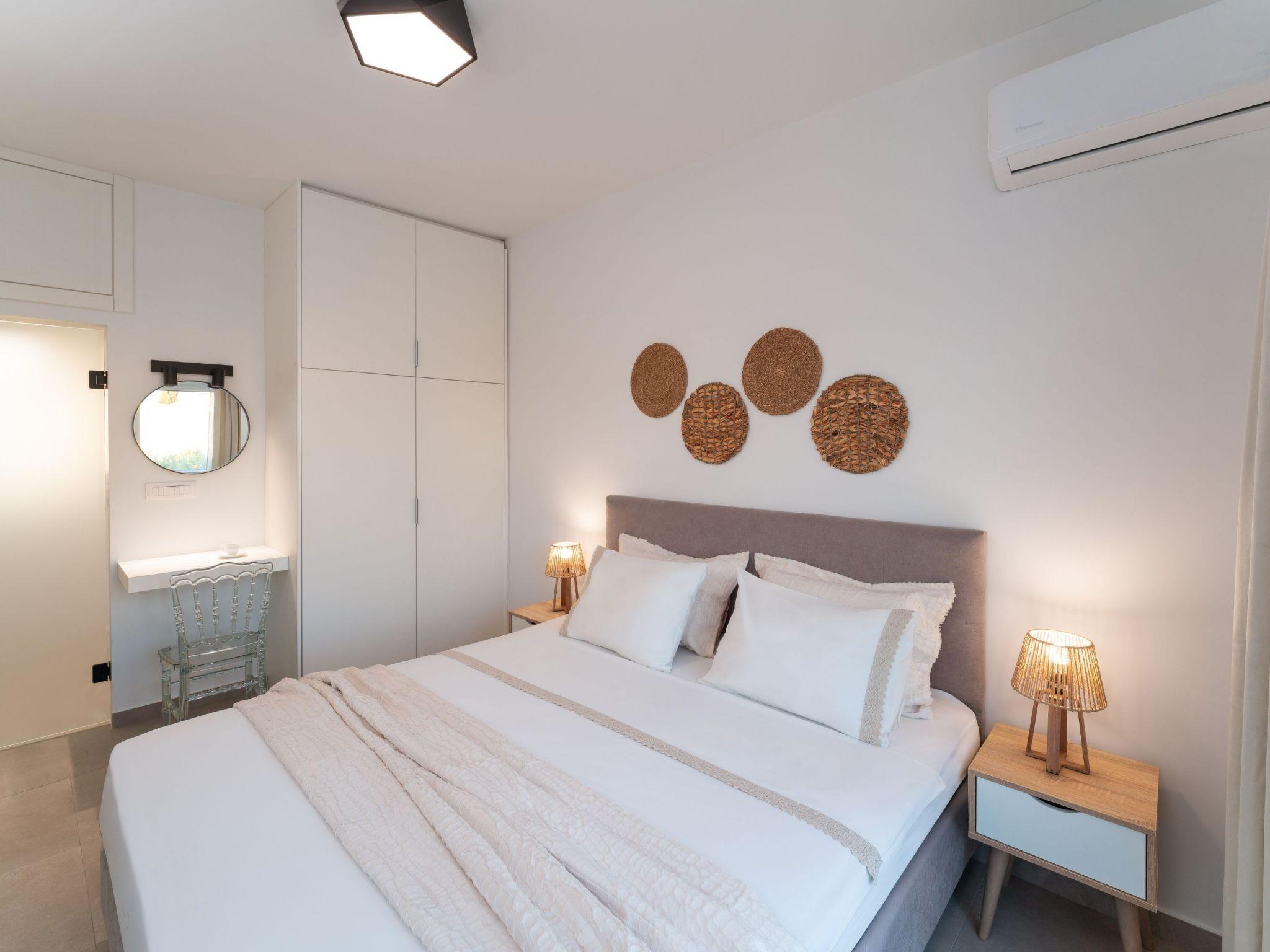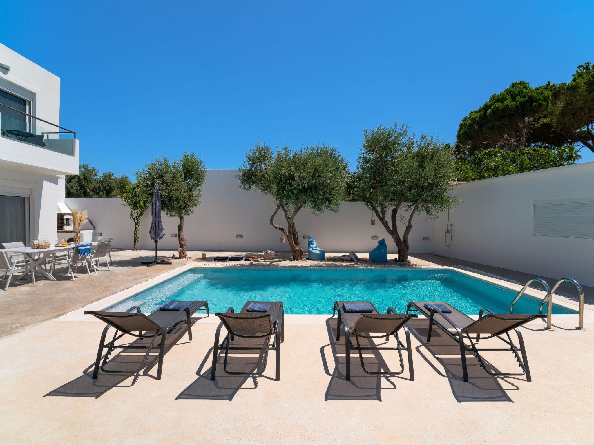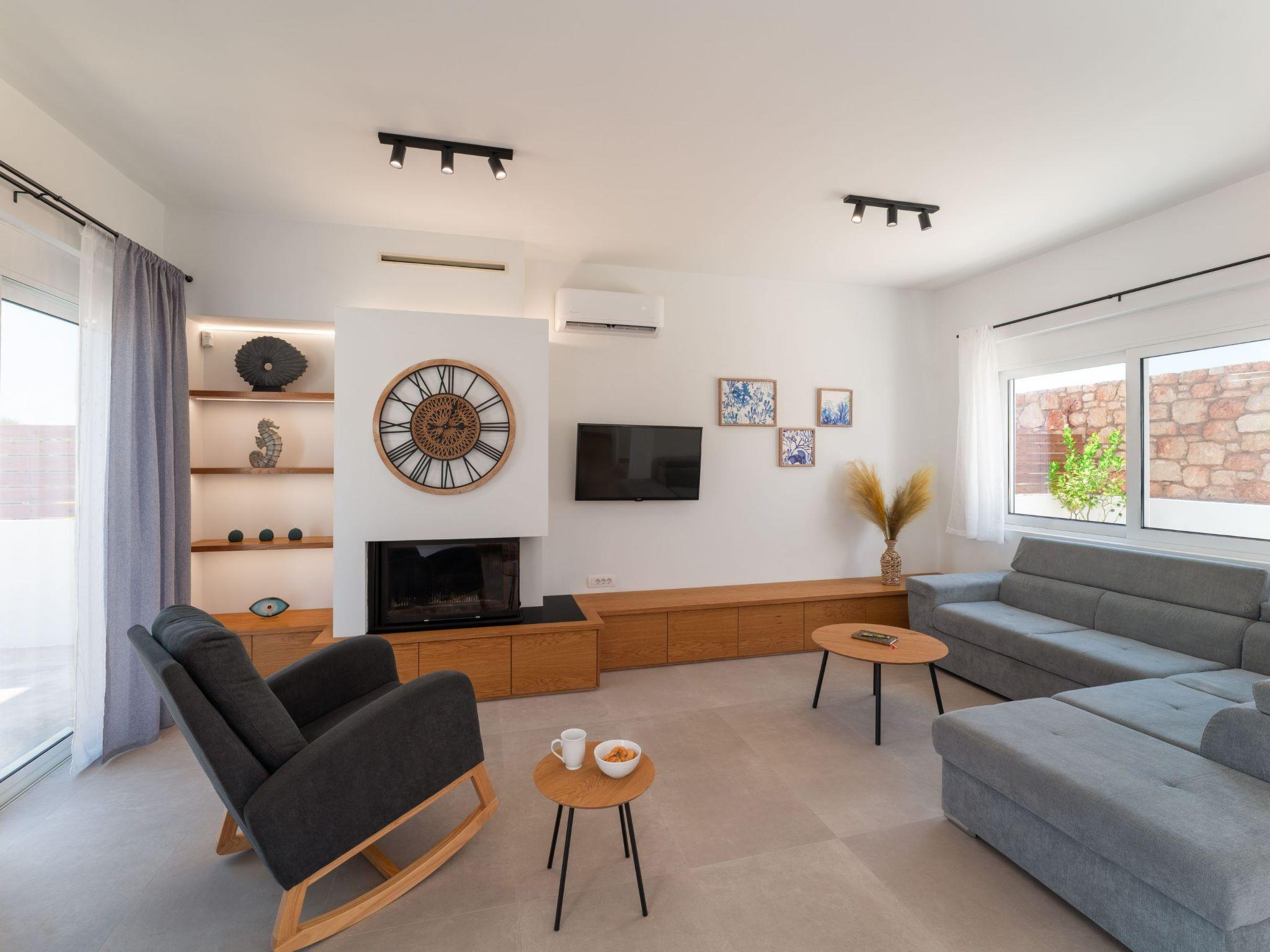 Gioiello Villa in Pefkous offers a serene retreat for up to six guests. Combining modern comfort with elegant design, the property provides spacious living areas, stylish bedrooms, and inviting outdoor spaces. Ideal for families or groups, it ensures relaxation and convenience, perfectly positioned just steps away from the beach to enjoy the beauty and charm of Pefkous.