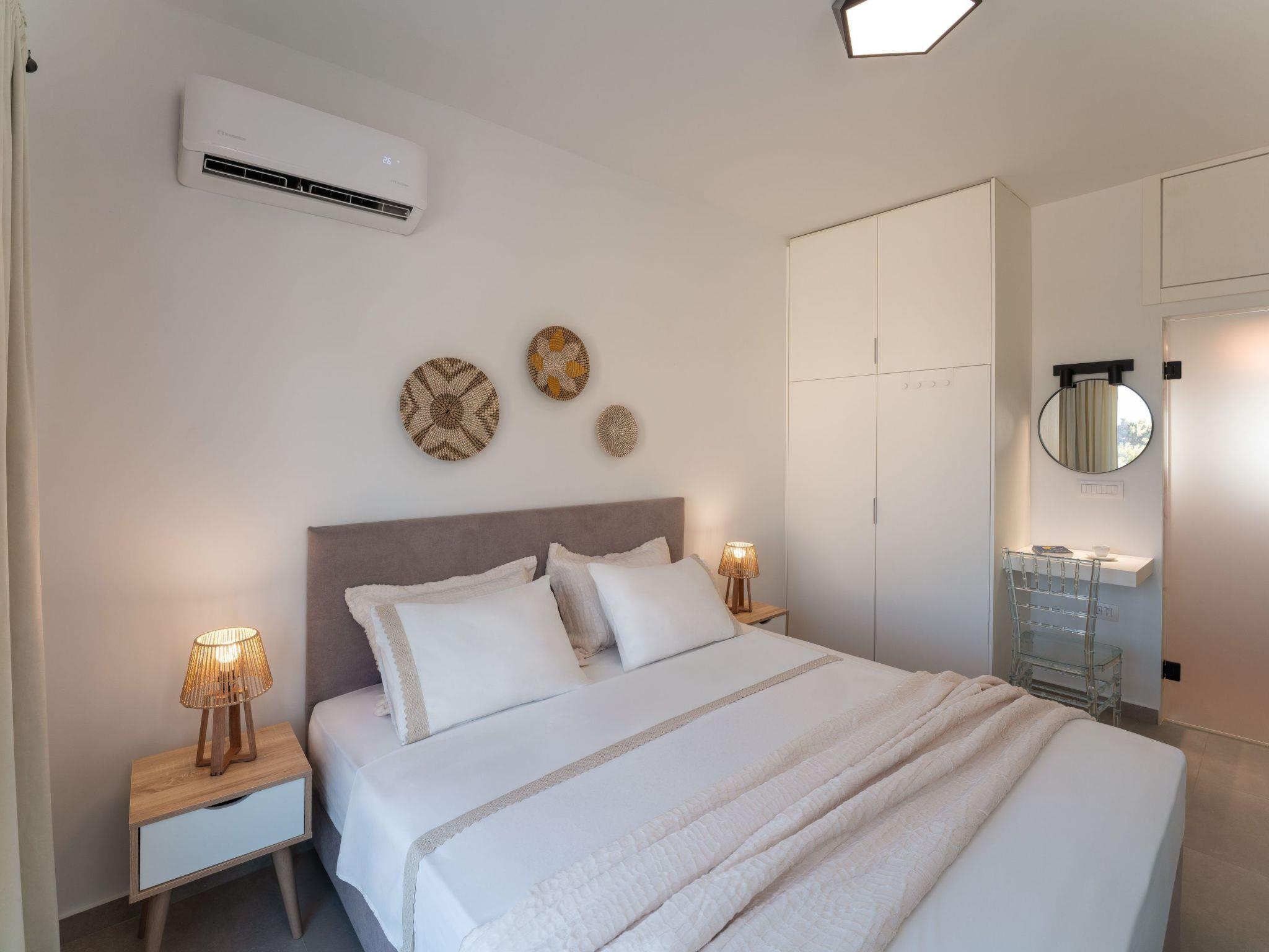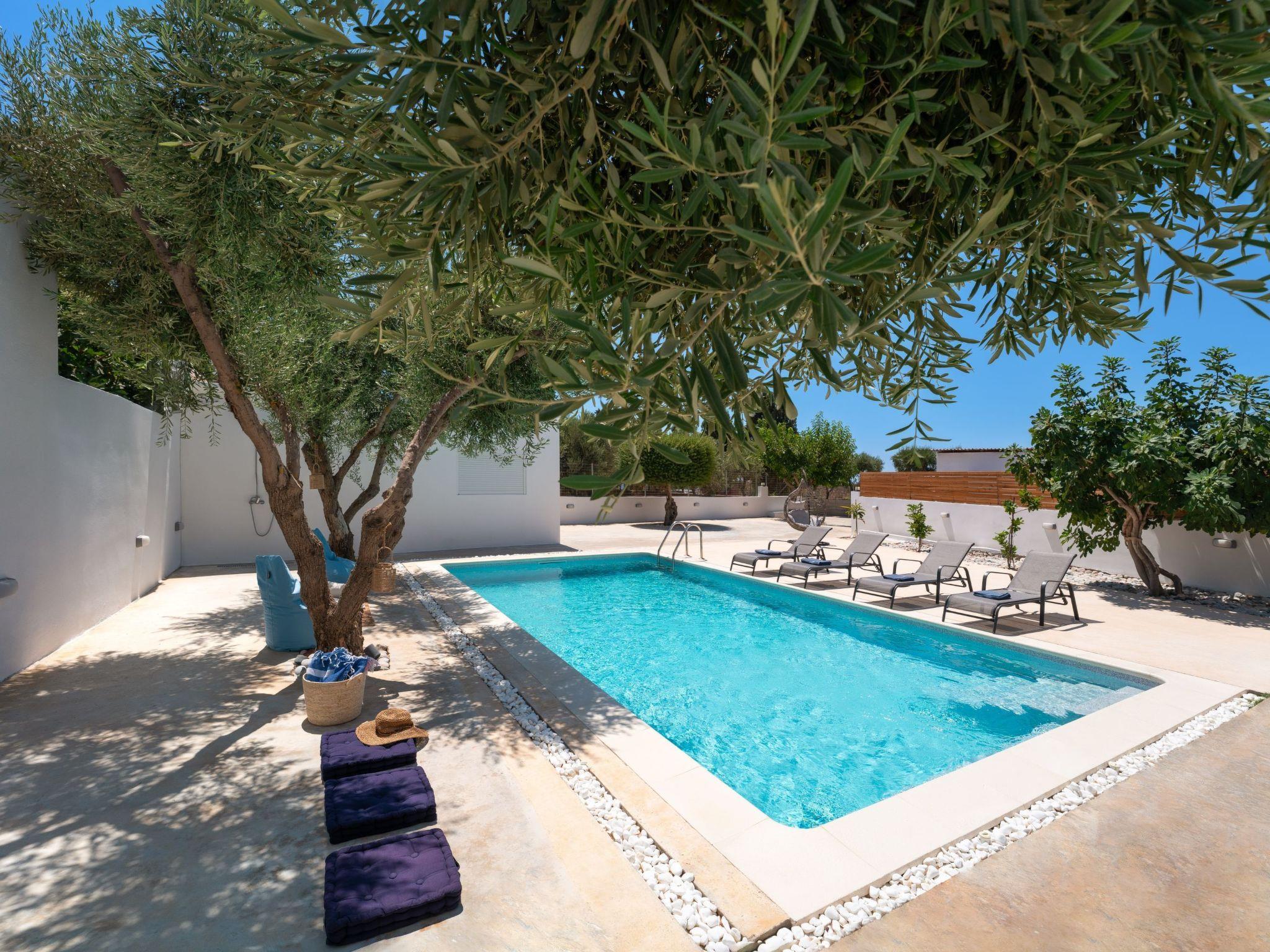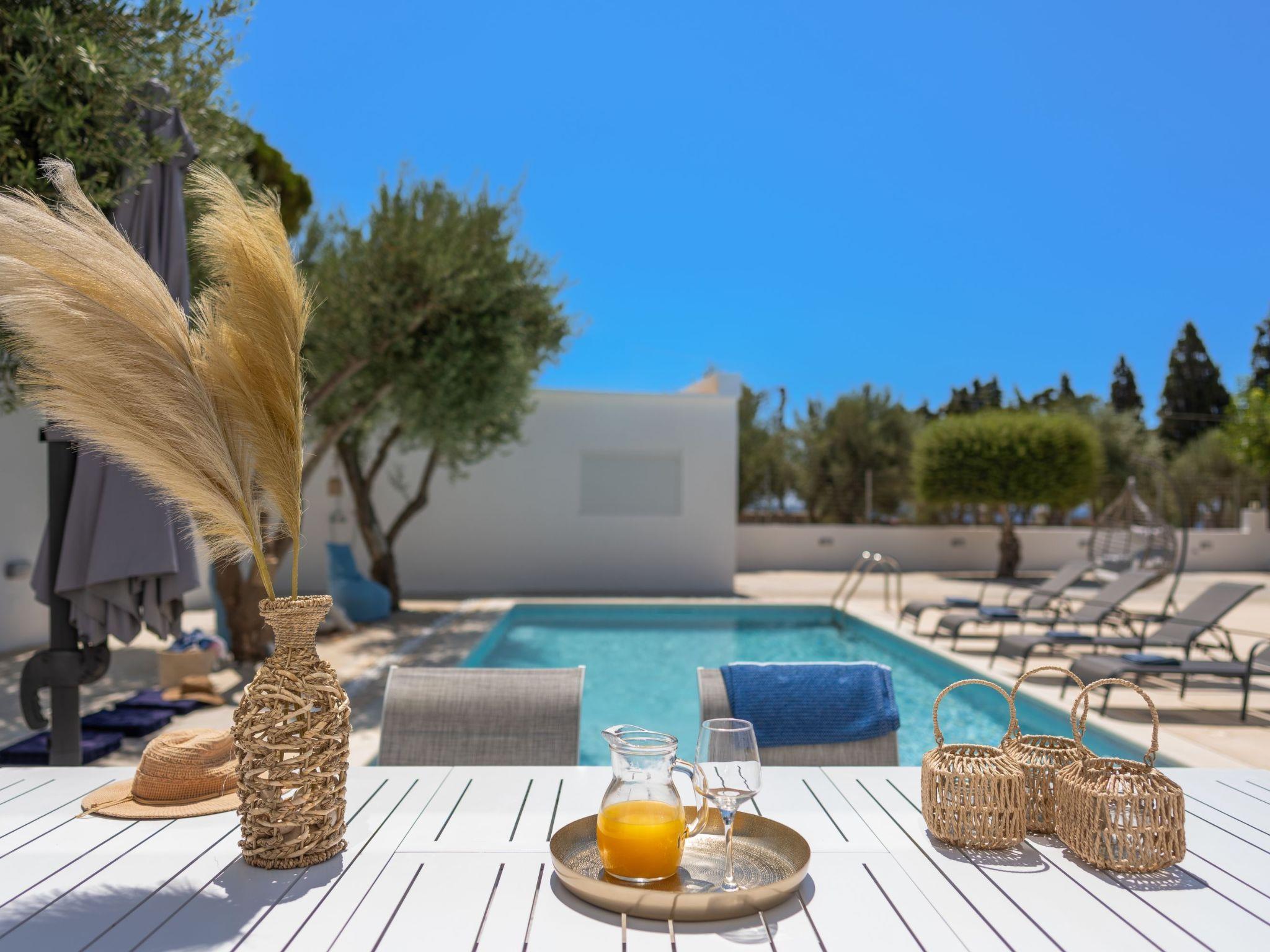 Gioiello Villa in Pefkous offers a serene retreat for up to six guests. Combining modern comfort with elegant design, the property provides spacious living areas, stylish bedrooms, and inviting outdoor spaces. Ideal for families or groups, it ensures relaxation and convenience, perfectly positioned just steps away from the beach to enjoy the beauty and charm of Pefkous.