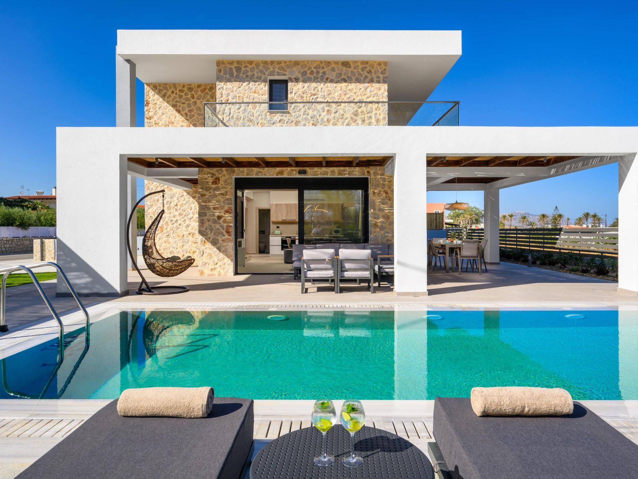 Terra Magna Villas are two identical, modern villas located in Kiotari, just a short walk from the sea. Each villa accommodates up to six guests and offers stylish interiors, private outdoor spaces, and a peaceful setting. Ideal for families or groups seeking comfort and relaxation on the beautiful island of Rhodes.