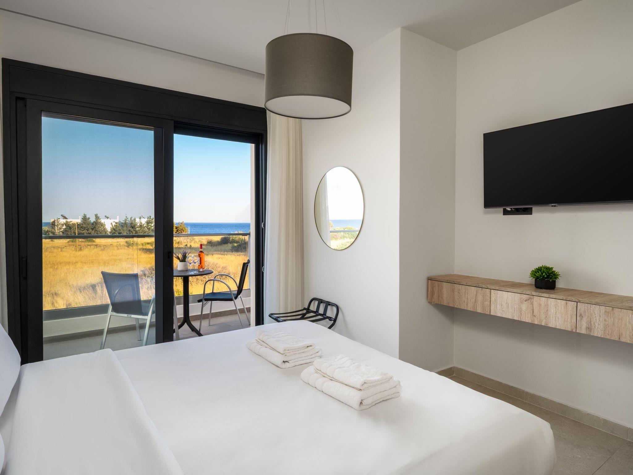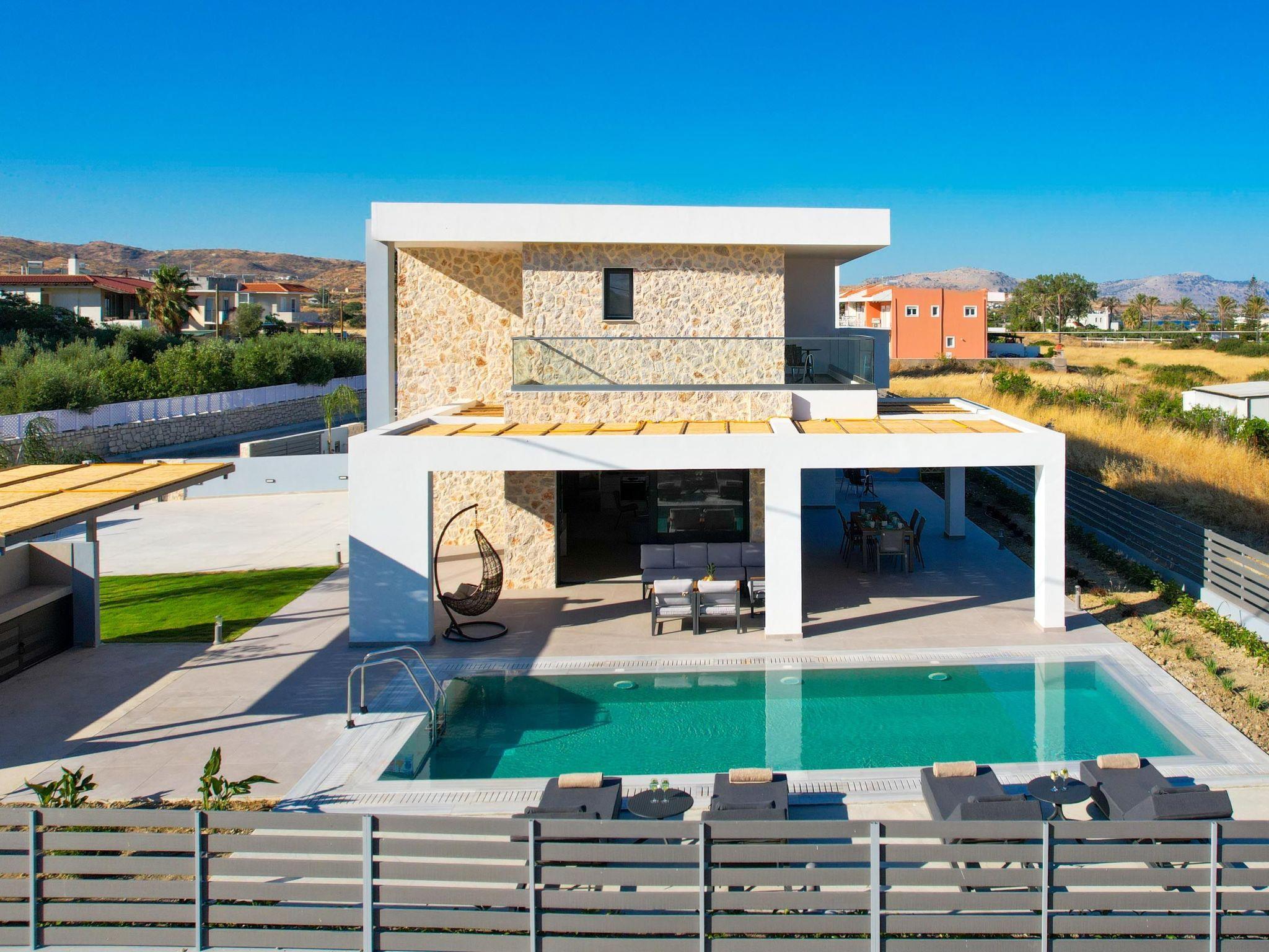 Terra Magna Villas are perfectly situated in Kiotari, just steps away (about 150 meters) from the beach, offering easy access to the sea. The nearest restaurants are within a 5-minute walk, while the closest supermarket is approximately 1.7 km away. A pharmacy is also nearby, around 2 km from the villas. Lindos Village, known for its ancient Acropolis and charming streets, is about 12 km away. Rhodes International Airport (RHO) is roughly 50 km from Kiotari, and the vibrant center of Rhodes town, including the UNESCO-listed Old Town, is around 55 km away, ideal for day trips.
