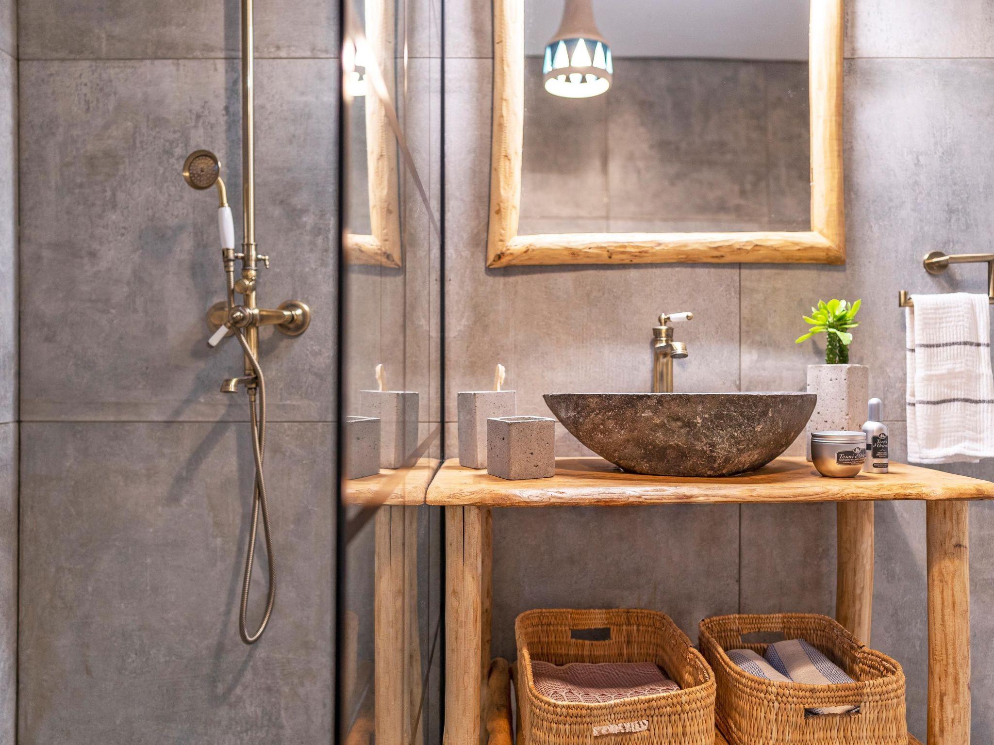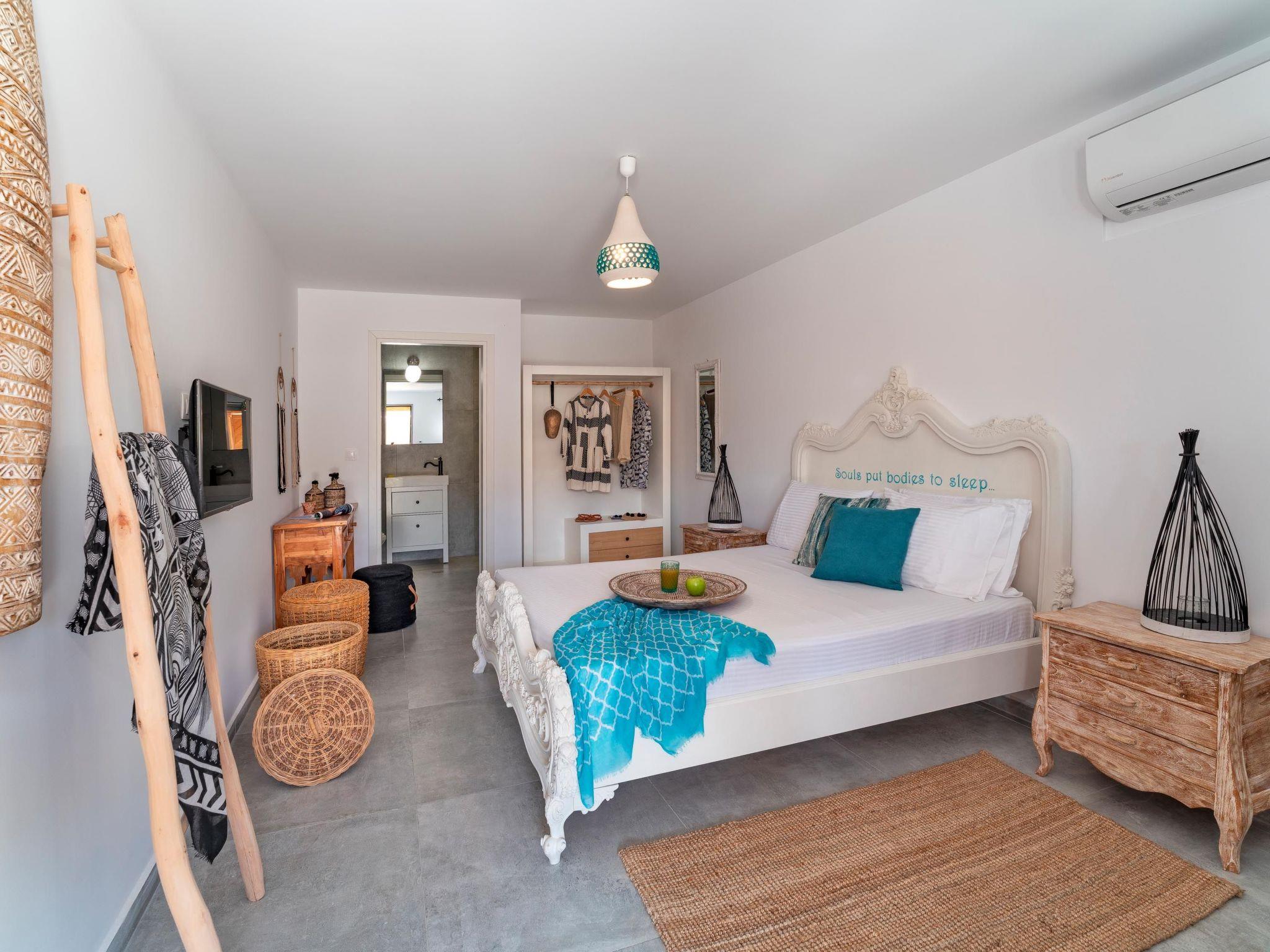 Onar Villa has 3 fully air-conditioned bedrooms with double beds in warm tones and a unique bohemian design. One of the bedrooms is outdoors and has its own door and bathroom. All bedrooms have ensuite bathrooms with showers. Also, there is a double sofa bed in the living room. The kitchen is fully equipped to accommodate your culinary habits, as well as your experiments with local products and recipes. The beautiful living room is inviting with incredible furniture and plenty and a dining area. There is a flat-screen with satellite channels in each bedroom and free Wi-Fi throughout the property. All areas are carefully decorated in vibrant colors and textures. There are smart TVs in each bedroom and free Wi-Fi throughout the property