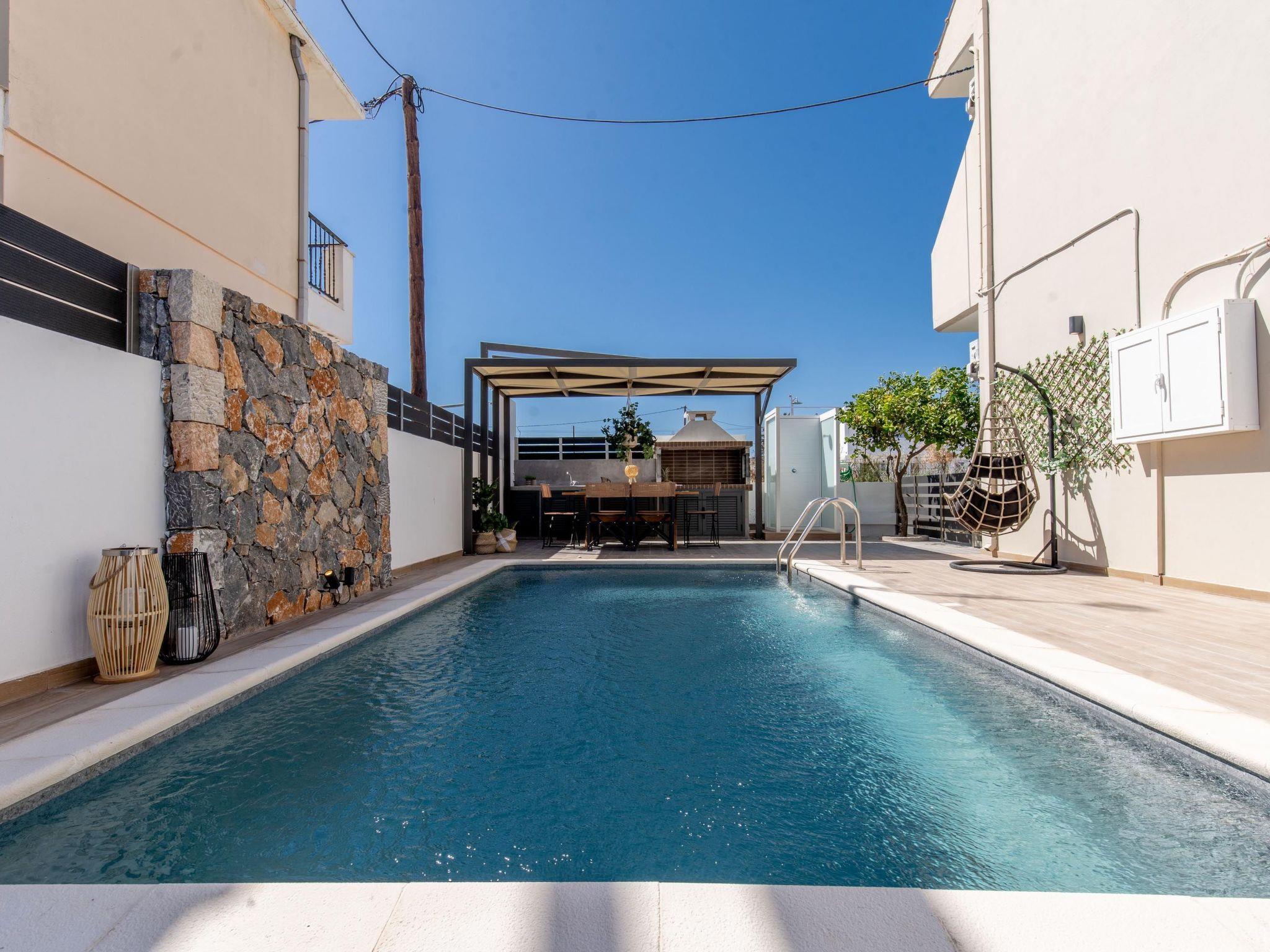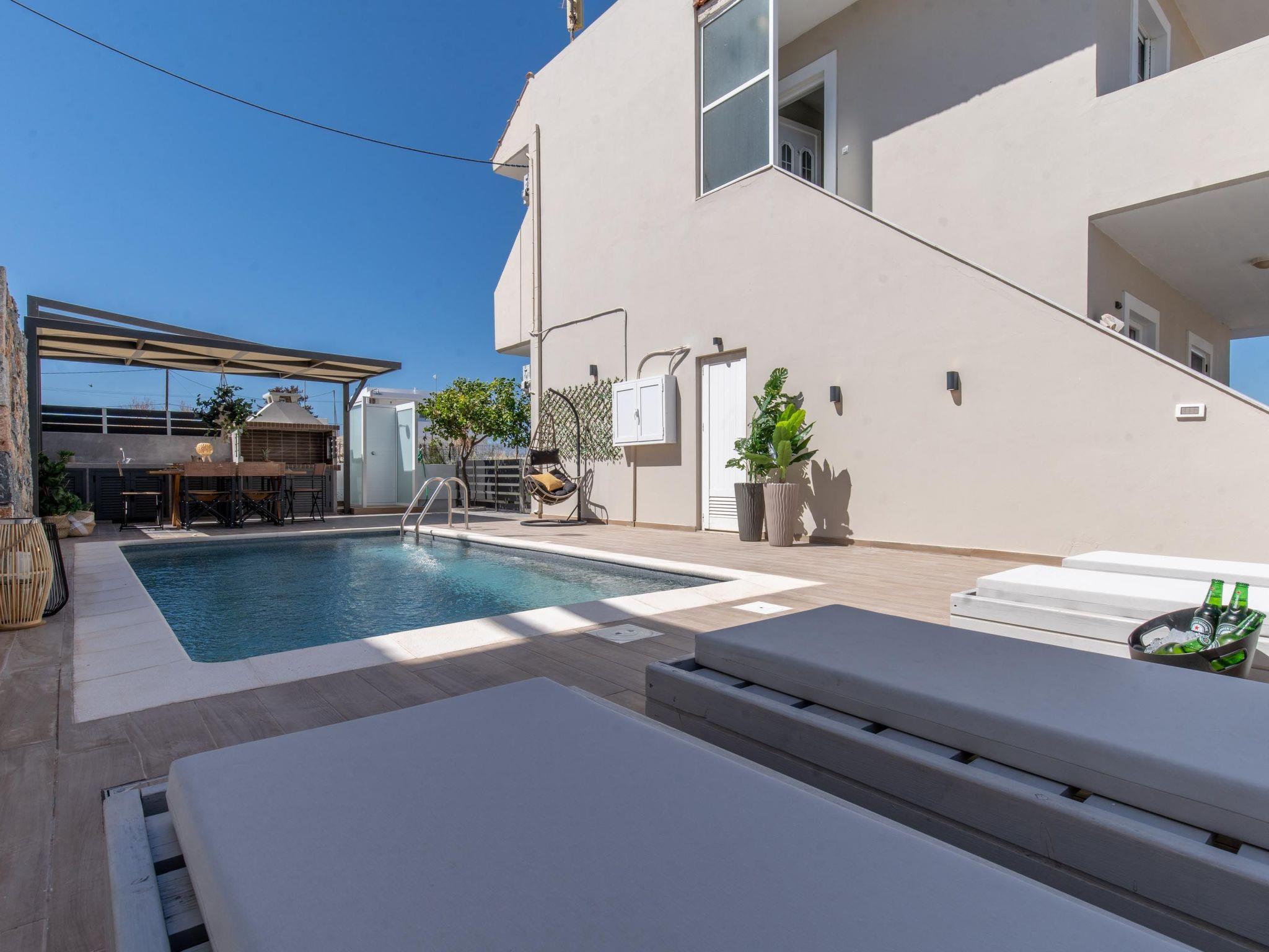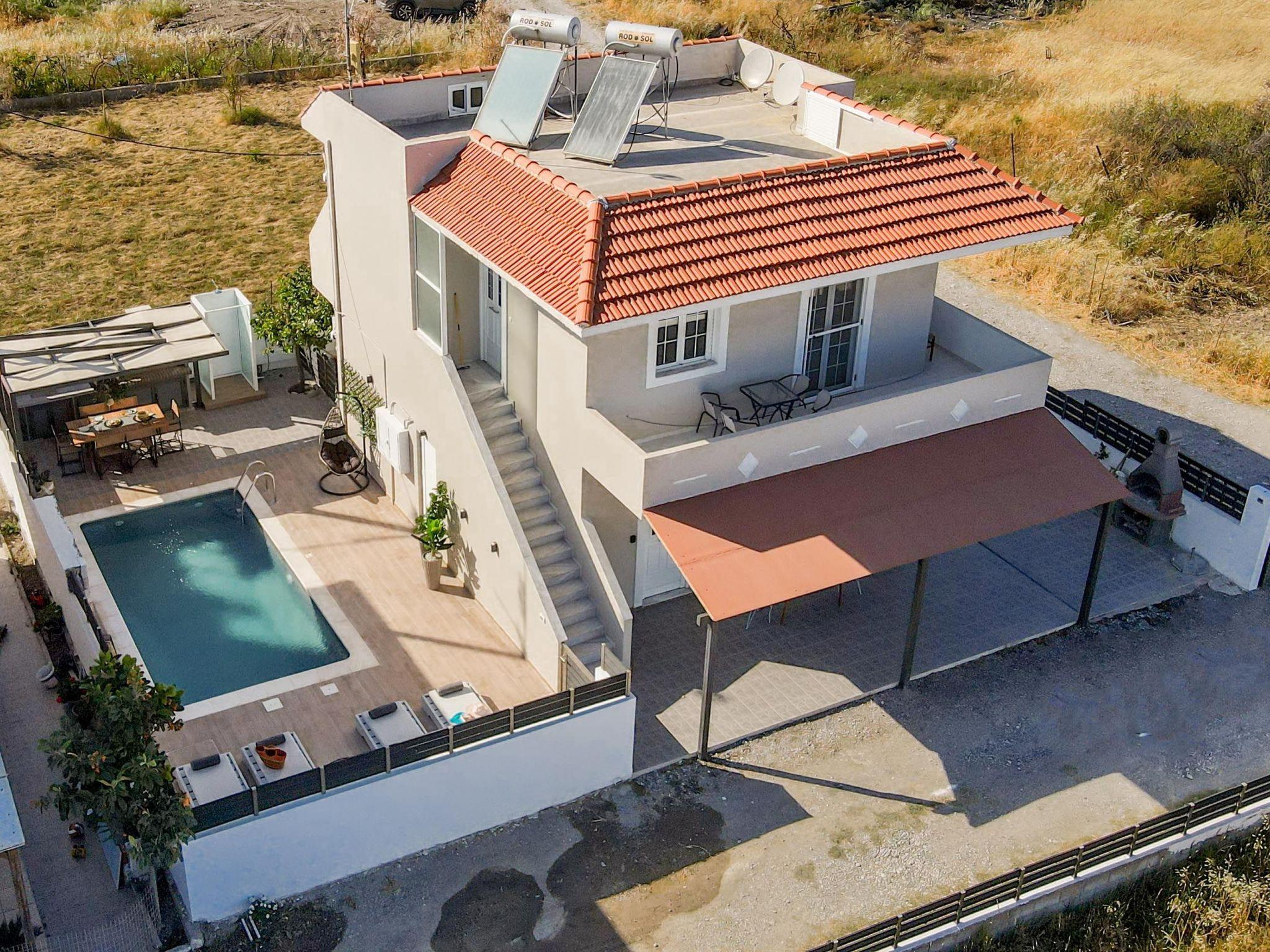 Grande Terra is tastefully decorated in a modern and contemporary way connected each floor with external stairs.Each floor has 2 incredible fully air-conditioned bedrooms with double beds which can become single also and flat screen TVs. Also, there are 2 bathrooms with bathtubs in total. Each floor has a fully equipped kitchen, suitable for any meal preparation, and a seating area where you can enjoy your meal. In the same area, there’s a living room with a sofa and a smart TV with Netflix. There’s free Wi-Fi access throughout the property. Outdoors, there’s a private swimming pool with sunbeds and parasols and a beautifully furnished patio. Guests will find a BBQ installation for the preparation of tasty meals and seating areas.