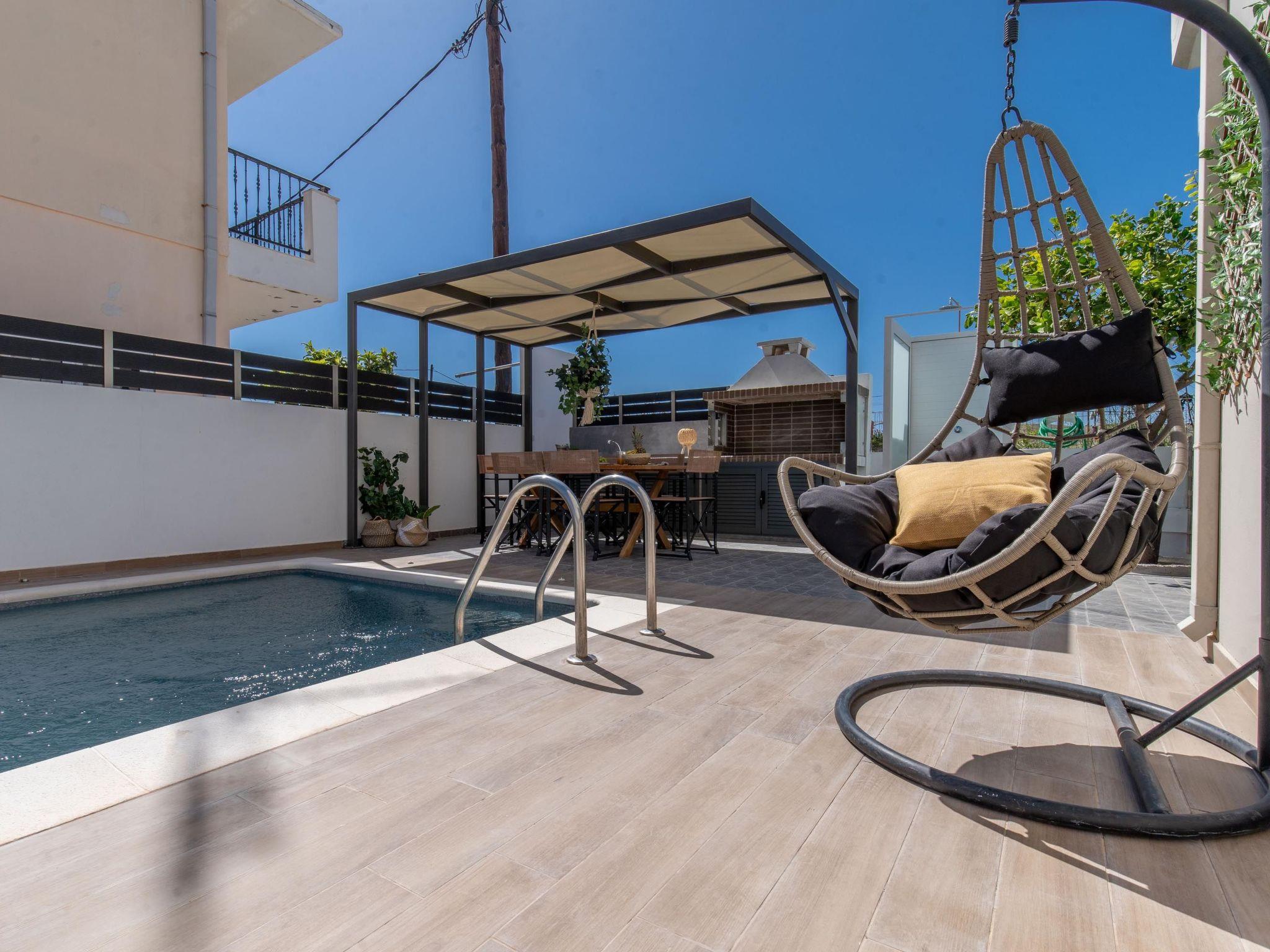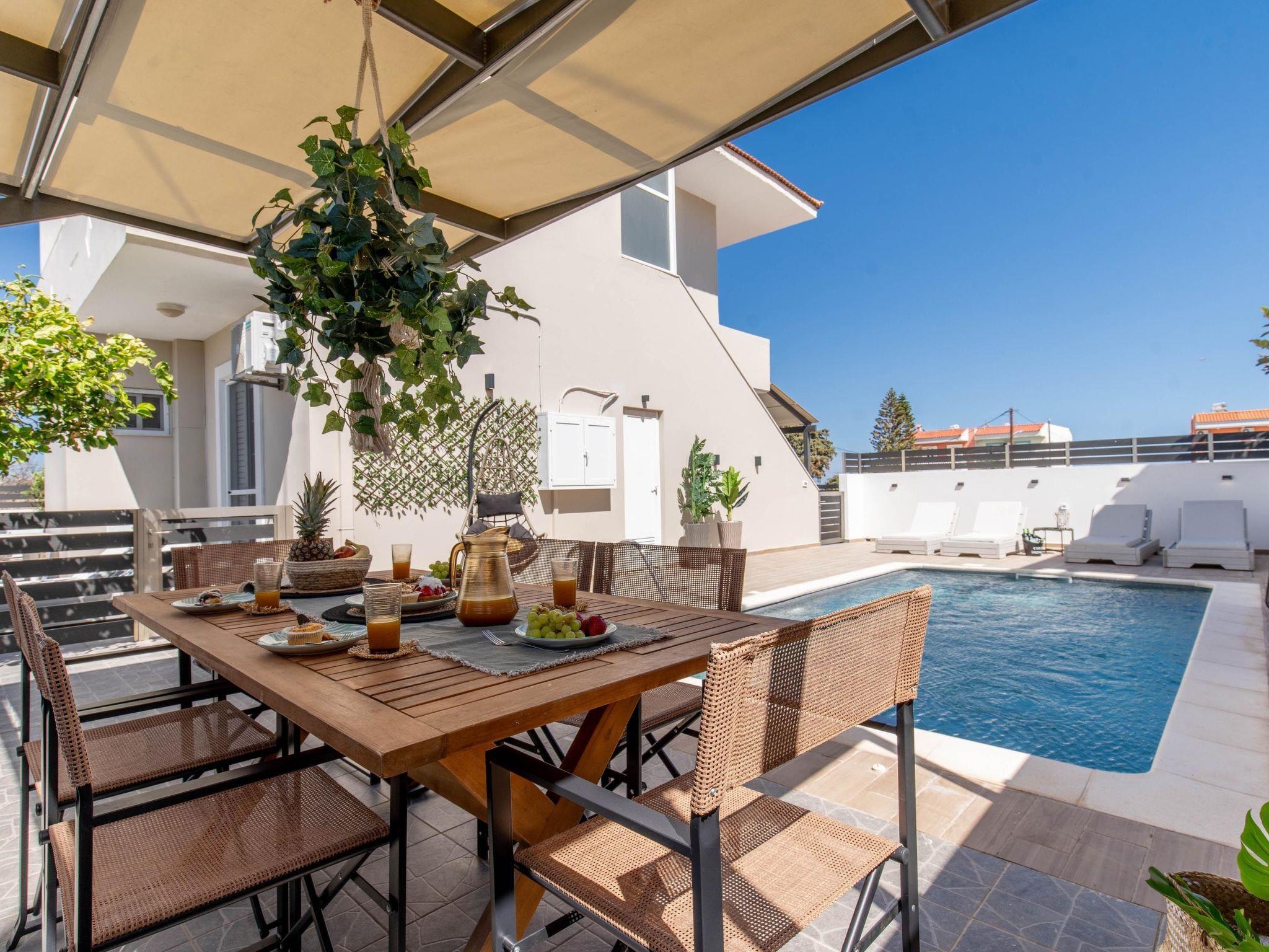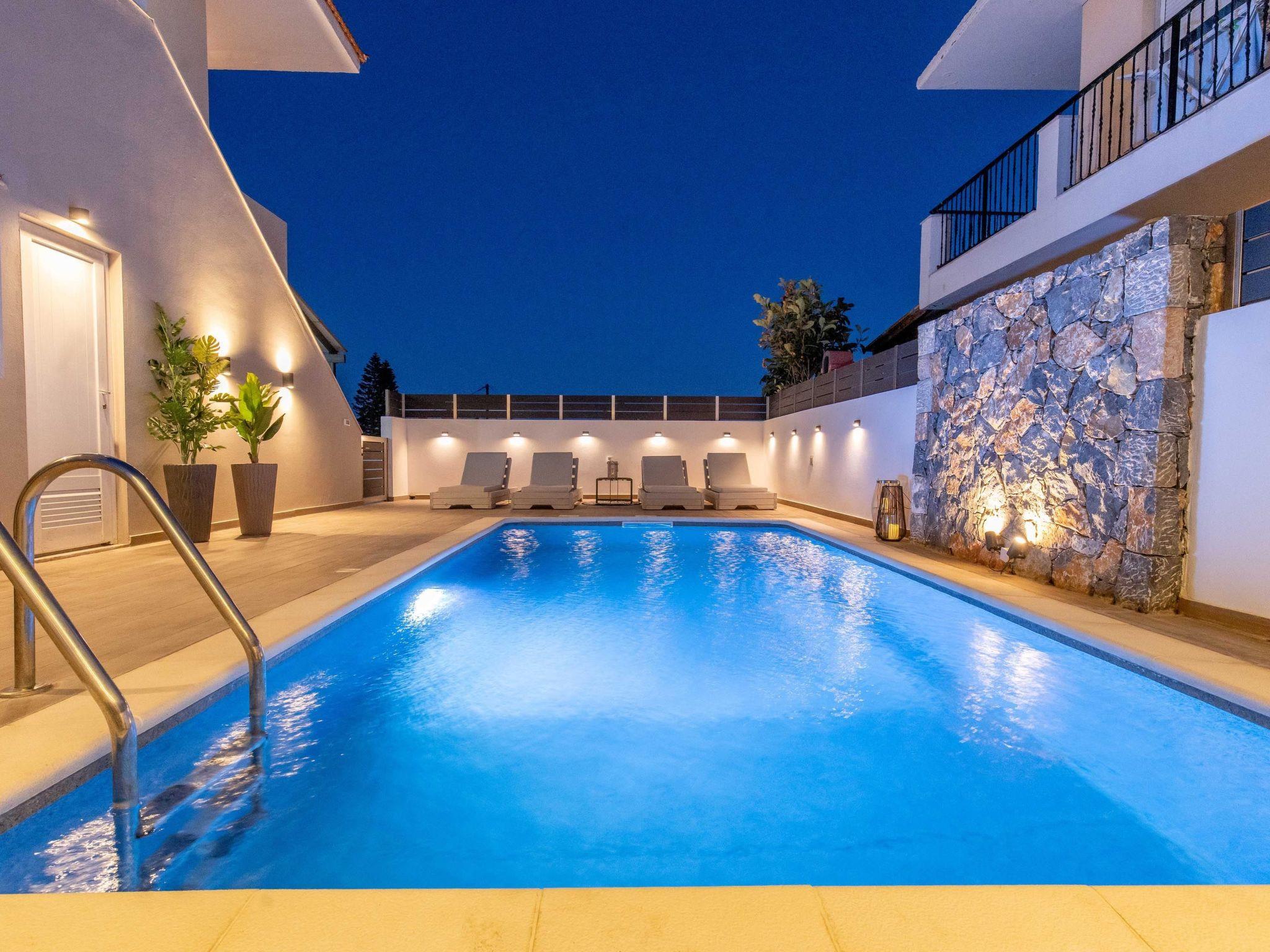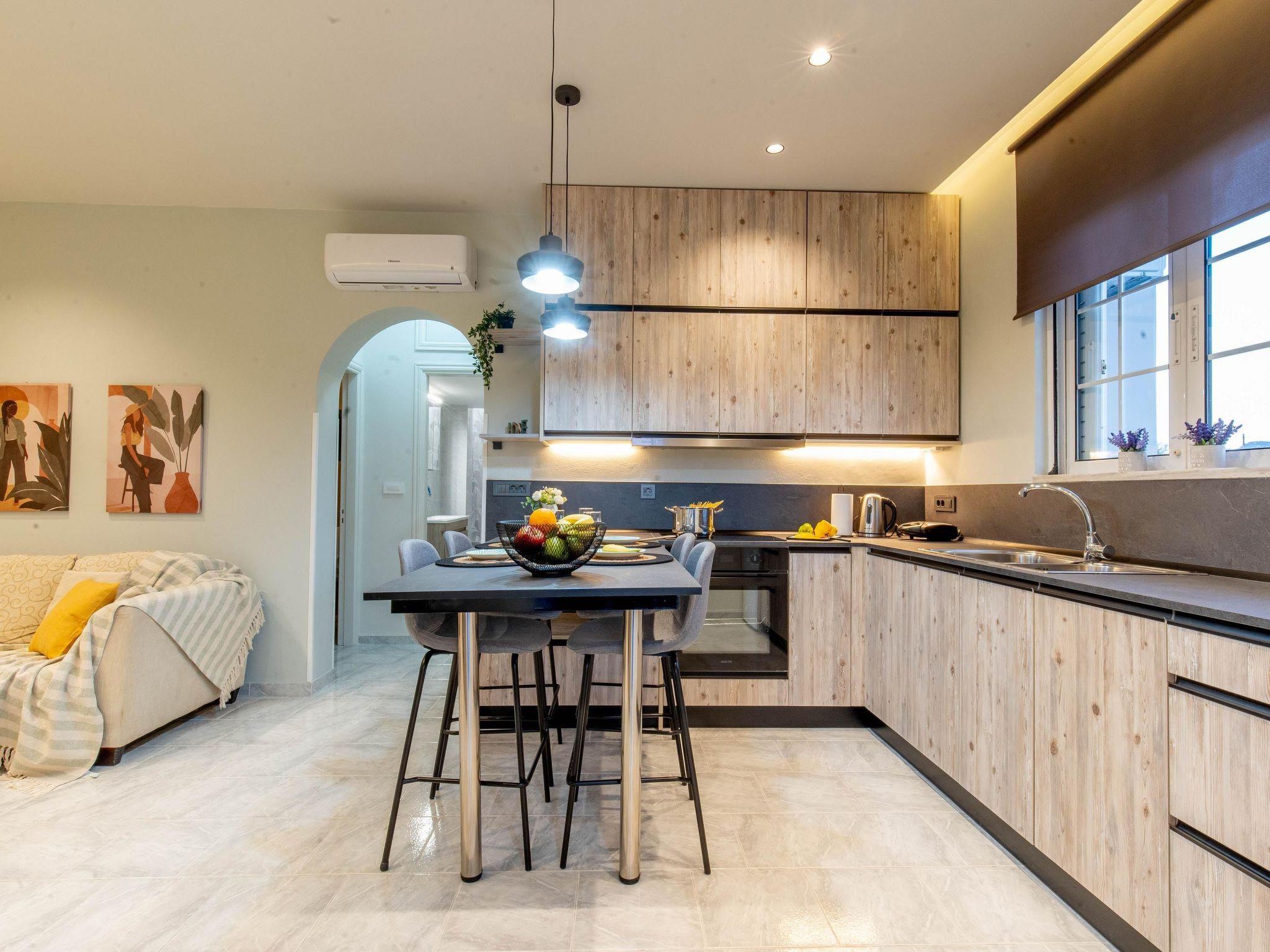 Grande Terra is tastefully decorated in a modern and contemporary way connected each floor with external stairs.Each floor has 2 incredible fully air-conditioned bedrooms with double beds which can become single also and flat screen TVs. Also, there are 2 bathrooms with bathtubs in total. Each floor has a fully equipped kitchen, suitable for any meal preparation, and a seating area where you can enjoy your meal. In the same area, there’s a living room with a sofa and a smart TV with Netflix. There’s free Wi-Fi access throughout the property. Outdoors, there’s a private swimming pool with sunbeds and parasols and a beautifully furnished patio. Guests will find a BBQ installation for the preparation of tasty meals and seating areas.