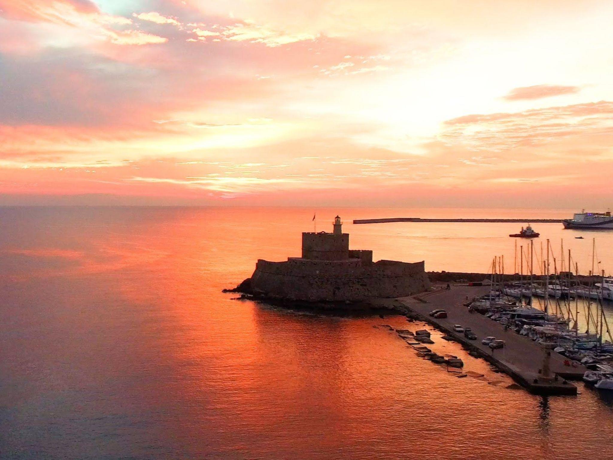 Our tailor made apartment is located directly in the heart of the city of Rhodos. The location is very close or minutes walking from the main attractions of Rhodes city. The Elli beach is under 10min walking (600m), the Mandraki Port is only 400m and the famous Knights of Saint John Street inside Old Town is 700m away. Close to our lovely apartment you can easily find local supermarkets, stores, restaurants and pastry or coffee – icecream stores.
