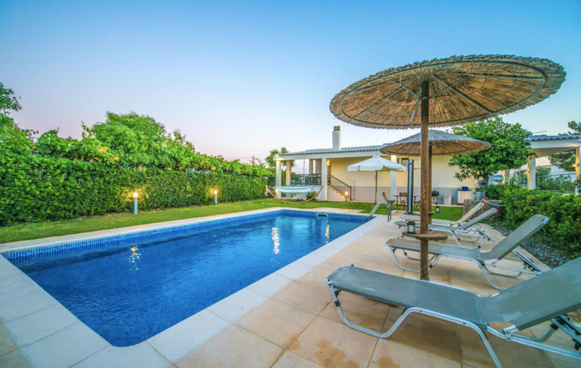 Villa Euphoria has 4 bedrooms with double beds, the one with en suite bathroom and the other two share a second bathroom, all of great utility and comfort. The open plan kitchen opens on a comfortable living room with a fireplace, a dining room and a cozy living room with Wii play machine and Wi-Fi. The broad balcony makes the ideal spot for enjoying the sea view and the magnificent sunset on pleasant evenings. With its amazing views, this exclusive property offers an optimum position to enjoy the sunlight and the utmost privacy. For children a Play station with a range of Games is also available. The hammock in the garden is unique for an afternoon siesta! Other appealing features of this home include air conditioning, a double garage and free wi-fi. This place is a little piece of paradise. The house is ideal for families with young children, young and older couples who want to relax in a house with many comforts, a garden ideal for children and those who love having their own fruit and vegetables growing in the garden. The property is set in garden ground with native vegetation, large lawn areas, mature trees, a totally new swimming pool, a playground and a build in BBQ place. A modernly designed home offering guests the chance to relax inside watching tv or sitting on the veranda overlooking the Mediterranean Sea. The garden is ideal for children to play and for adults to sunbathe. The extra mobile BBQ and the dining table in the garden, is an easy solution for lunch or dinner.