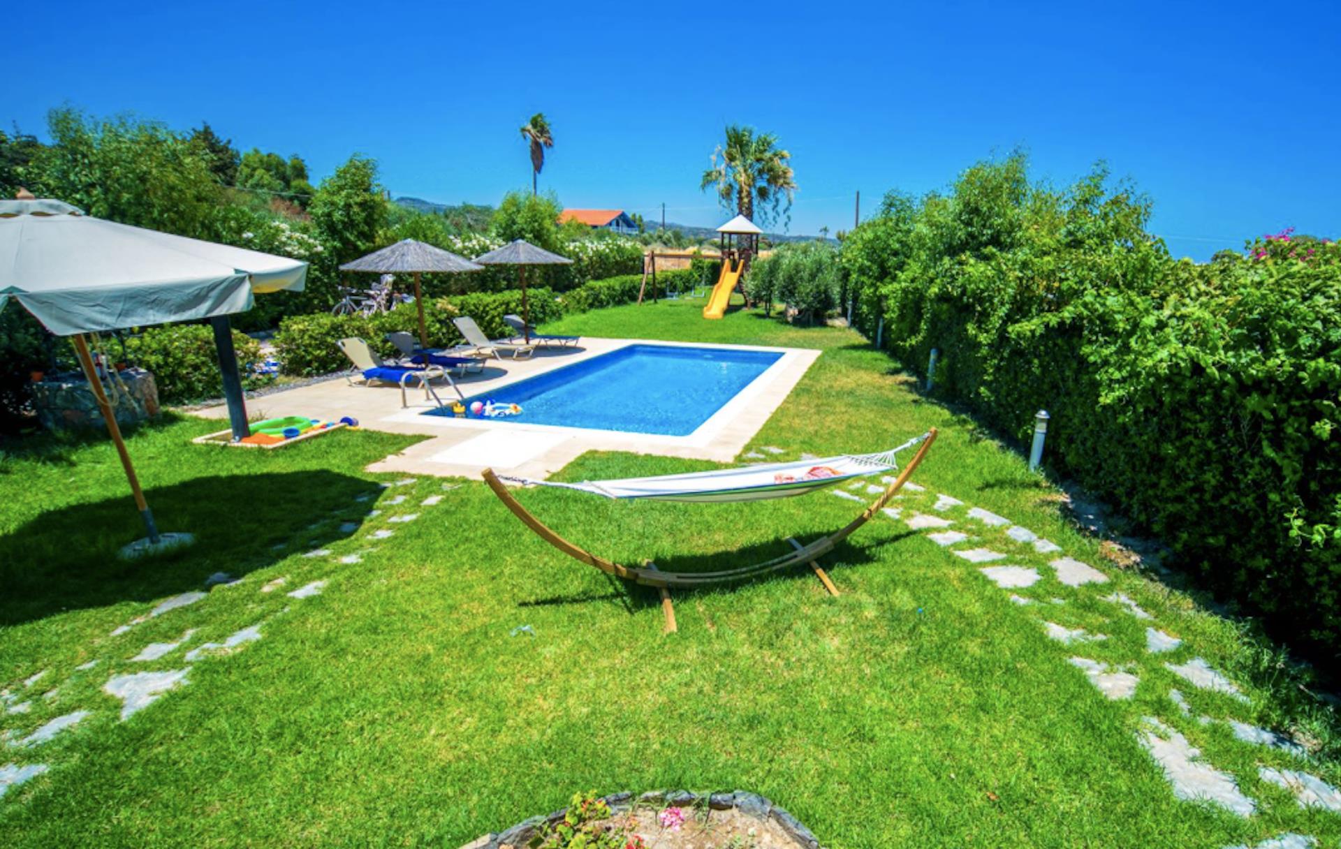 An ideal holiday home only a few meters from the beach for everyone to enjoy swimming, fishing and snorkeling in the clear blue water of the Aegean Sea. Villa Euphoria is a modernly designed home offering guests a wide range of indoor and outdoor amenities that give the opportunity for relaxing and enjoyable holidays. Here is a list with some of our best amenities: • Wifi internet connection throughout the property. • i-pod speakers available for listening to your favourite tunes. • 2 Electric Adults bicycles, 1 Kids bicycle and 1 Toddlers bicycle • For children a Play station with a range of Games is also available. • Green garden with sprinklers, organic vegetables and grapes, all available to guests. • Garden with swimming pool and sun beds. • Spacious veranda with amazing view of the Mediterranean sea. • The hammock in the garden is unique for an afternoon siesta. • Playground in the garden area for children with swings and a slide. • Fully equipped BBQ facilities.