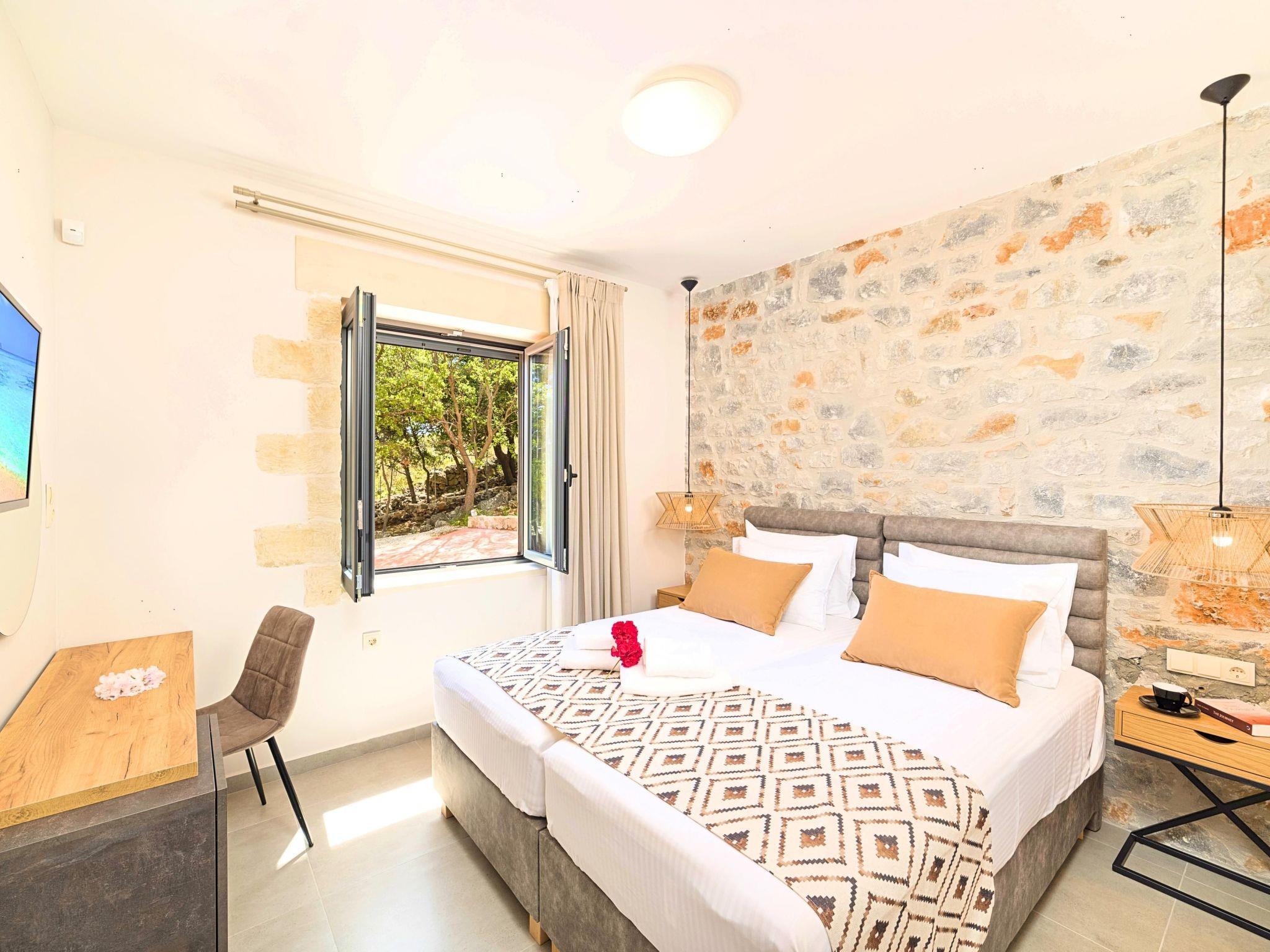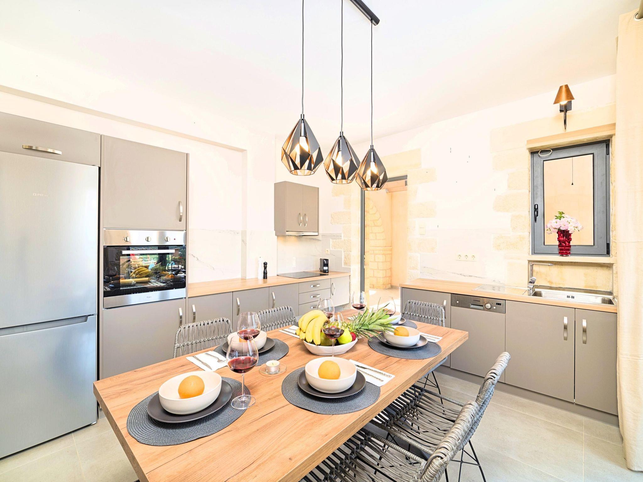 Welcome to Vardis Villa, a Cretan hidden gem! Vardis Villa surrounded by a beautiful landscape and breathtaking views. Unwind and rejuvenate in the midst of nature with a glass of wine, in one of the most exciting locations of Crete. Built at the slopes of White Mountains overlooking the old Venetian village of Vafes, with the aura of a residence that exhales fine taste, style, luxury with traditional elements and a professional standard hospitality. Our Villa is located just a 15-minute drive from the beach, restaurants bars café and shops. The enchanting city of Chania is a 30-minute drive away, while the splendid coastal town of Rethymnon is also within easy reach. Its superb location helps you to explore the beauties of Crete island. Vardis Villa offer a large living room with kitchen area, 3 bedrooms, 2 bathrooms, an outdoor swimming pool ideal for 6 + 2 guests. Our village Vafes is a semi-mountainous village of Chania at an altitude of 210 meters, 37 kilometers from Chania. The majority of the buildings dating back to the Venetian era, with vivid architectural elements. Is the only village in the prefecture of Chania that was declared by the Ministry of Culture as a historical monument due to its important history, tradition and wonderful architecture. The old buildings are made of local materials such as wood, stones and soil. In the village there are two traditional cafe and a Cretan tavern where you can taste the real Cretan cuisine with local products, as well as the hospitality of the local people.