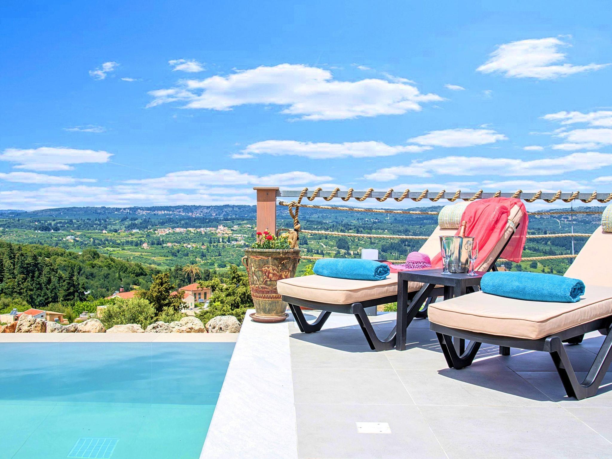 Vardis Villa has the following facilities: * A living- dining room with fireplace and direct access to the terrace and the pool area. * Kitchen with an oven, a dishwasher, a fridge, a coffee maker, tea facilities, a juicer, a toaster and a dish set * One bathroom with shower * Two bedrooms, with two twin push together single beds. * A third autonomous bedroom with two twin push together single beds, private bathroom with shower and a TV set * TV at the Living Room * Air-condition in all areas * Free WiFi internet access * Outdoor Dinning Set (table with chairs) * Washing machine * An iron and an ironing board * Safe deposit box * Hair dryer * Fine linens and towels * Toiletries * Pool towels * Baby cot * High chair * Towels / bed linen, Cleaning- Every 3 or 4 days * Private swimming pool * Sun lounge area with sun beds * Parking area * BBQ area Guests of Vardis Villa can also be provided with the following services, upon request and at extra cost: * Car rental service * Transfer service * Travel services * Diving lessons * Water sports * Yacht cruises