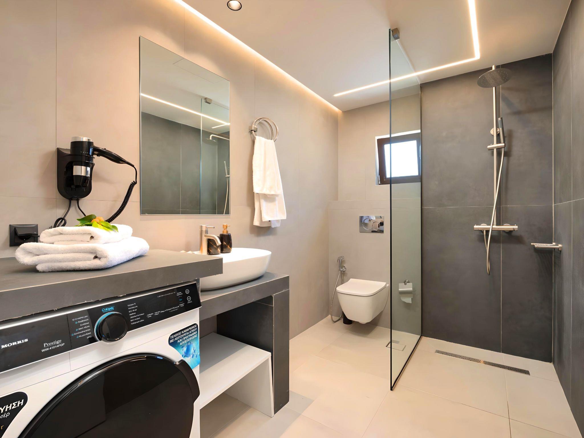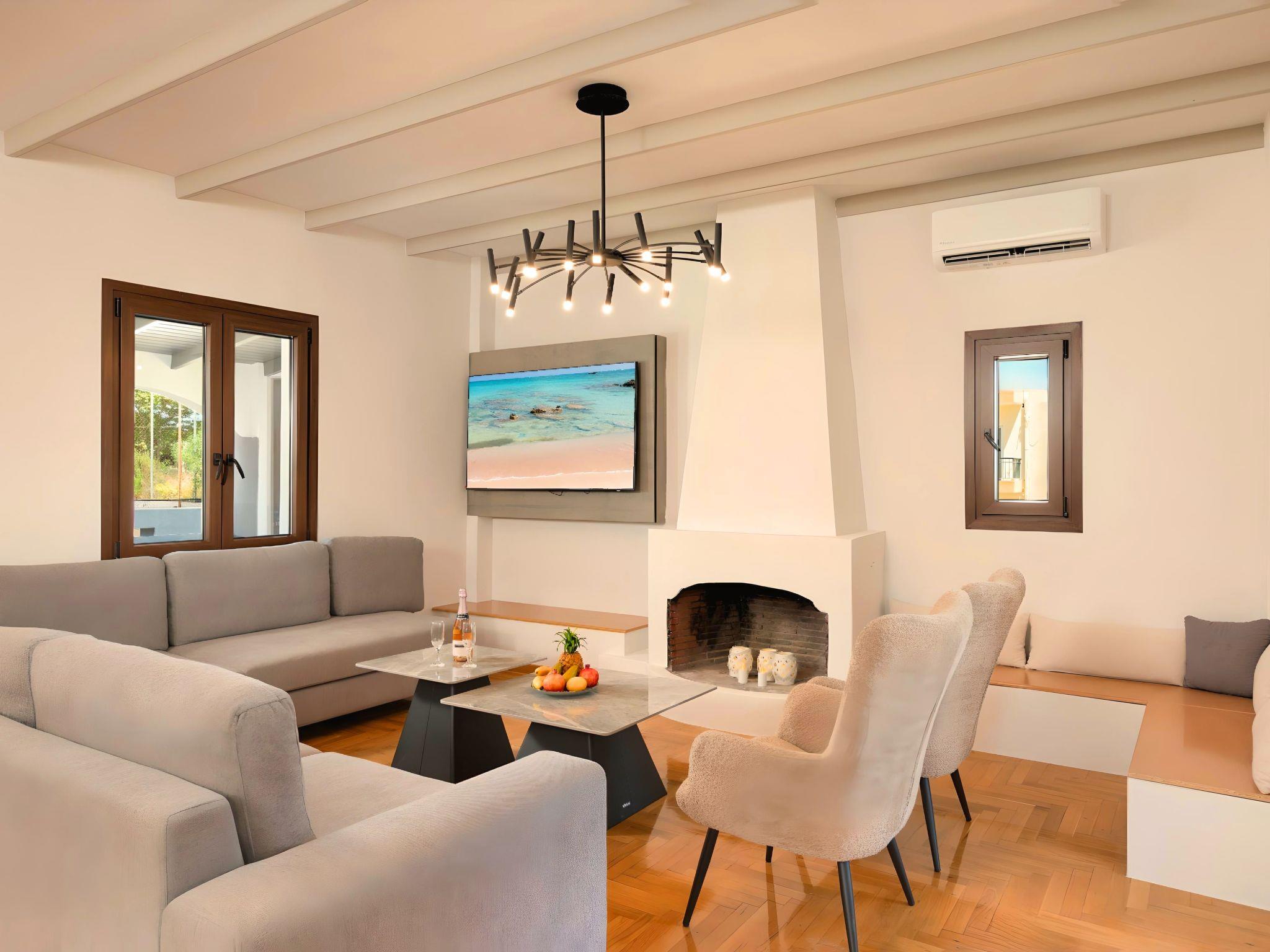 Inside, the holiday house is equipped with essential comforts to ensure a pleasant stay. It features five spacious bedrooms, tailored to provide restful nights for every guest. The house encompasses two well-appointed bathrooms, each with a shower, catering to the needs of a large group with ease. Revel in the convenience of a fully equipped kitchen, including a dishwasher, a coffee machine for capsules/pods, and an electric kettle. The living area, adorned with a smart TV, offers a cozy spot for entertainment or relaxation, complemented by air conditioning available throughout the house to keep you cool during those warm Kretan days.