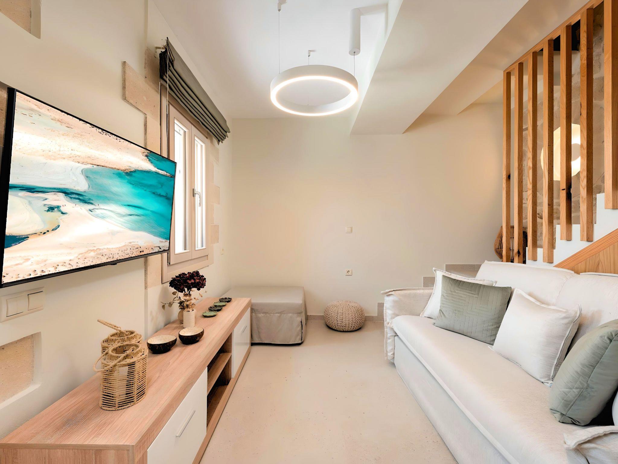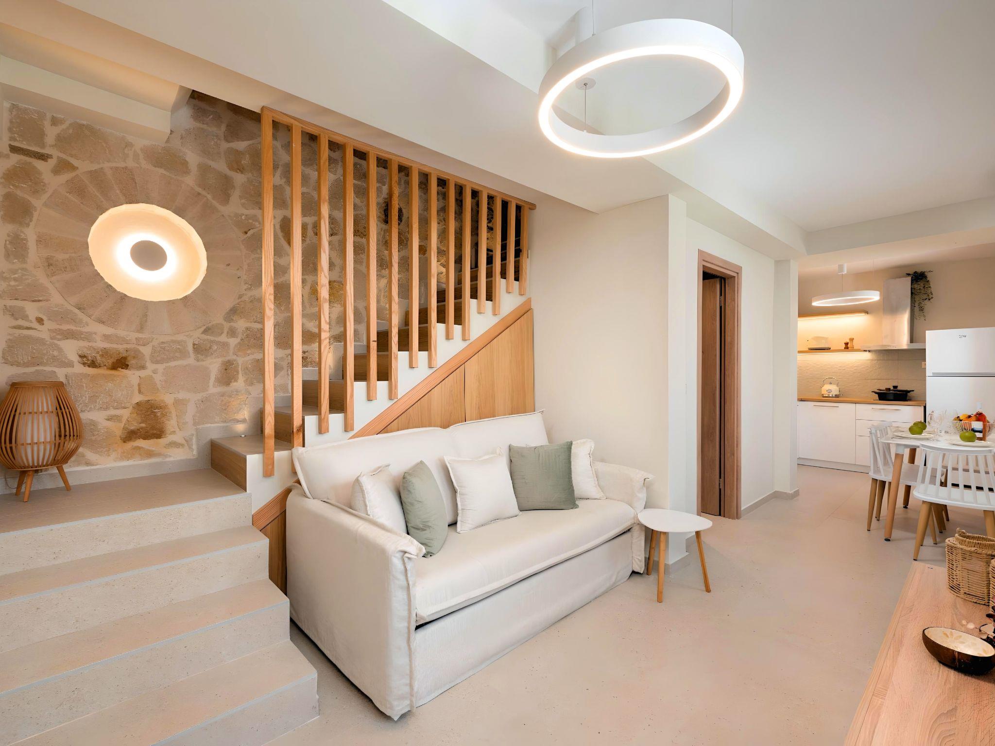 This autonomous two-storey stone house is designed to be your private retreat on Crete Island. The villa spans two floors, connected by an interior staircase.