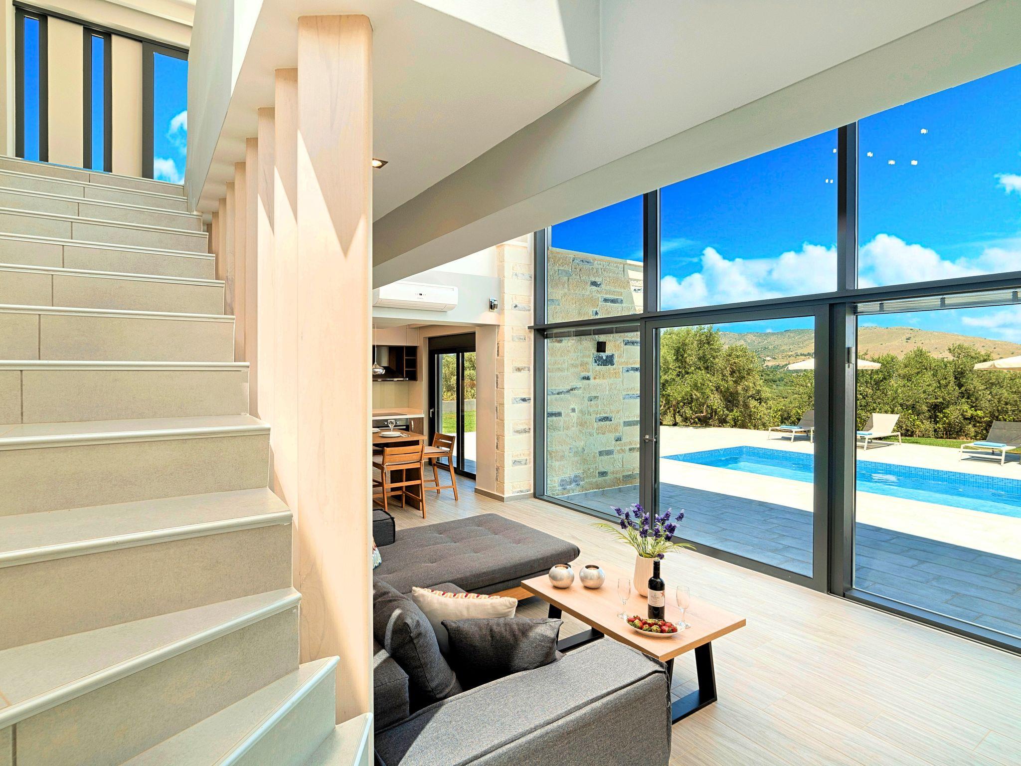 Ground floor* A spacious living room with direct access to the terraces and the pool area.* Kitchen with an oven, a dishwasher, a fridge, a coffee maker, tea facilities, a juicer, a toaster, a dish set and a deep freezer* Dining area for 6 persons* A bedroom with a Queen size double bed, air-condition* Bathroom with shower* Terrace with outdoor seating / dining area and unlimited views* Smart TV at the Living Room* Spacious Garden with outdoor furnitures and sunbeds* Large swimming poolA staircase leads to theUpper floor - Loft* A Large Loft bedroom with two single beds (pushed together), air-condition and large terrace.* A large bathroom with shower and a hairdryer.Lower floor* A large living room with three sofa beds, TV set, In a closet washing/dryer machine.* An independent sitting area with two sofa beds* A bedroom with twin push together beds, air-condition with private bathroom with shower.* A second bedroom with a Queen size double bed, a sofa bed, air-condition.* A large bathroom with shower and a hairdryer.* Air-condition in all areas* Free Wi-Fi internet access* Outdoor Dinning Set (table with chairs)* Washing / Dryer machine* An iron and an ironing board* Safe deposit box* Hair dryers* Fine linens and towels* Toiletries* Pool towels* Baby cot (two)* High chair* Towels / bed linen, Cleaning- Every 3 or 4 days* Solar system for hot water* Fire extinguisher* First Aid Box