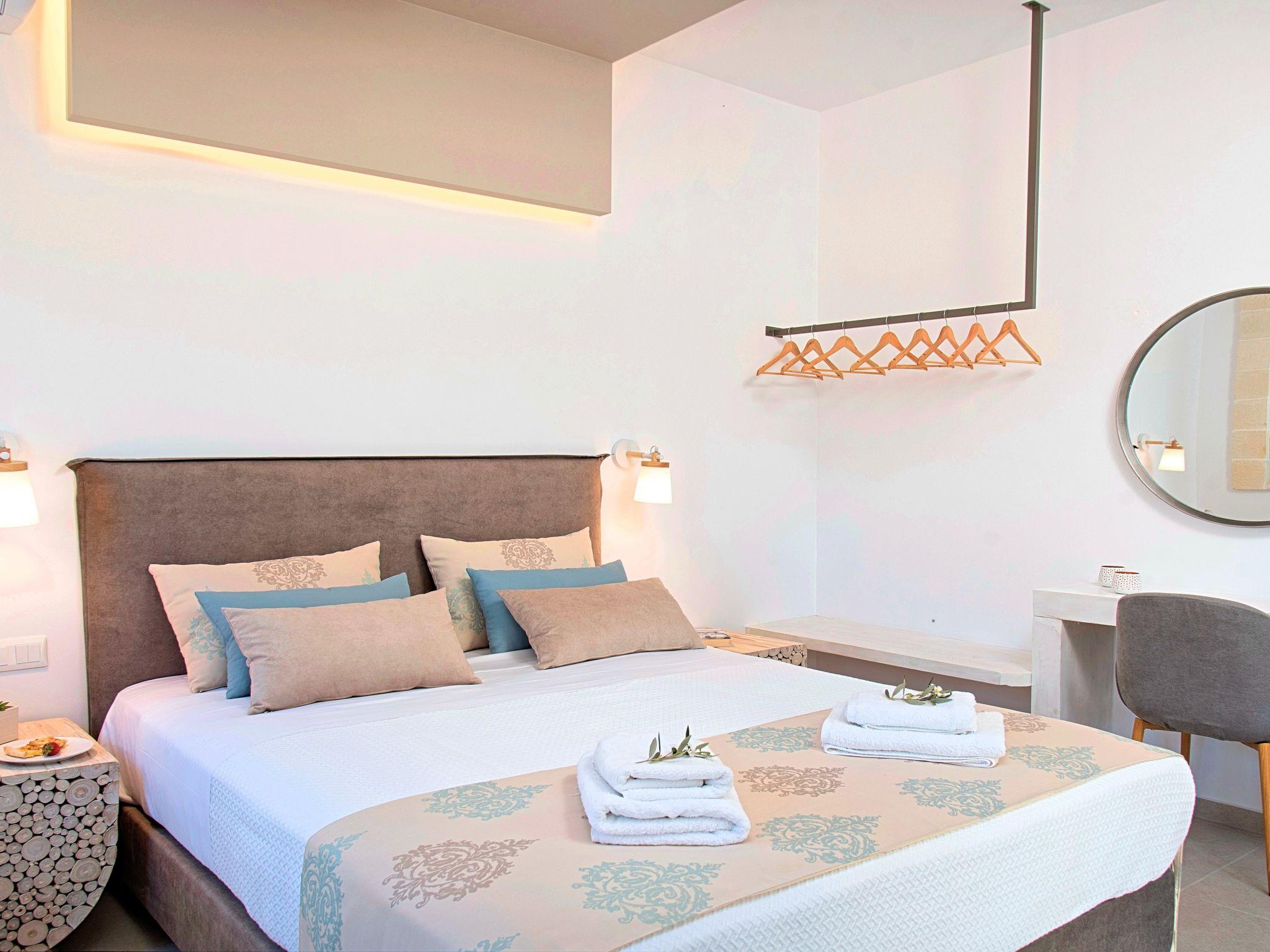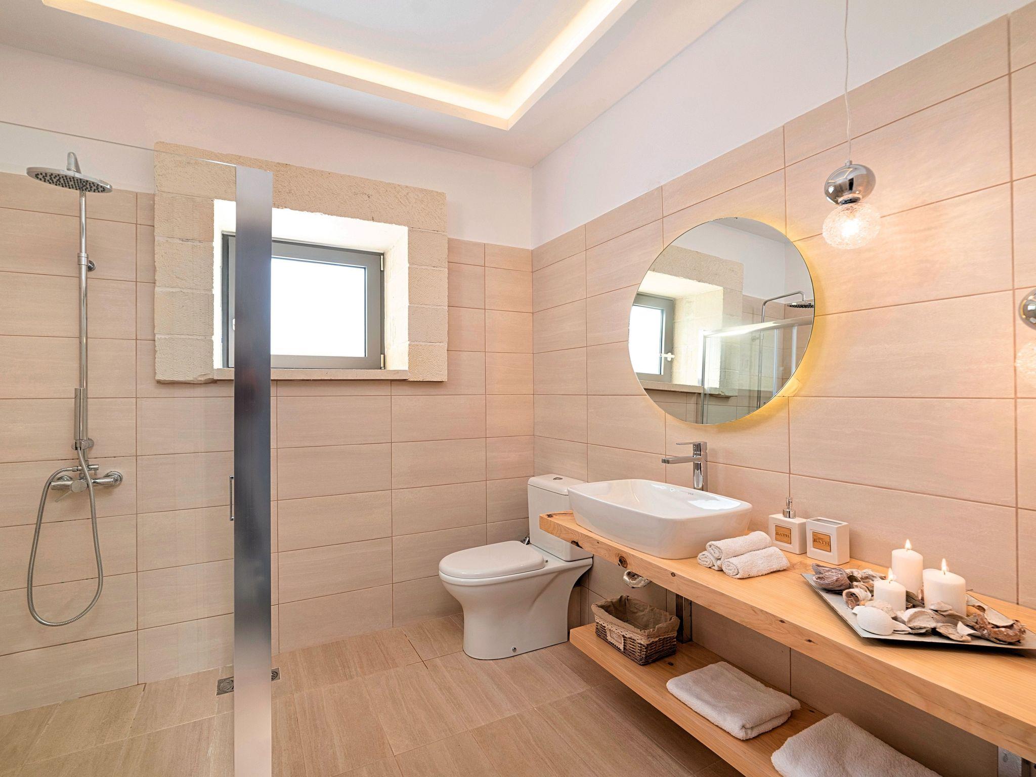* A living- dining room with smart TV and direct access to the terrace and the pool area.* Kitchen with an oven, a dishwasher, a fridge, a coffee maker, tea facilities, a juicer, a toaster and a dish set* A bedroom with a queen size double bed* One bathroom with shower* A second bedroom, with two single push together beds* A third loft bedroom with two single push together beds, an armchair folding bed and private bathroom with shower.* TV at the Living Room* Air-condition in all areas* Free WiFi internet access* Outdoor Dinning Set (table with chairs)* Washing machine* An iron and an ironing board* Safe deposit box* Hair dryer* Fine linens and towels* Toiletries* Pool towels* Baby cot* High chair* Towels / bed linen, Cleaning- Every 3 or 4 days
