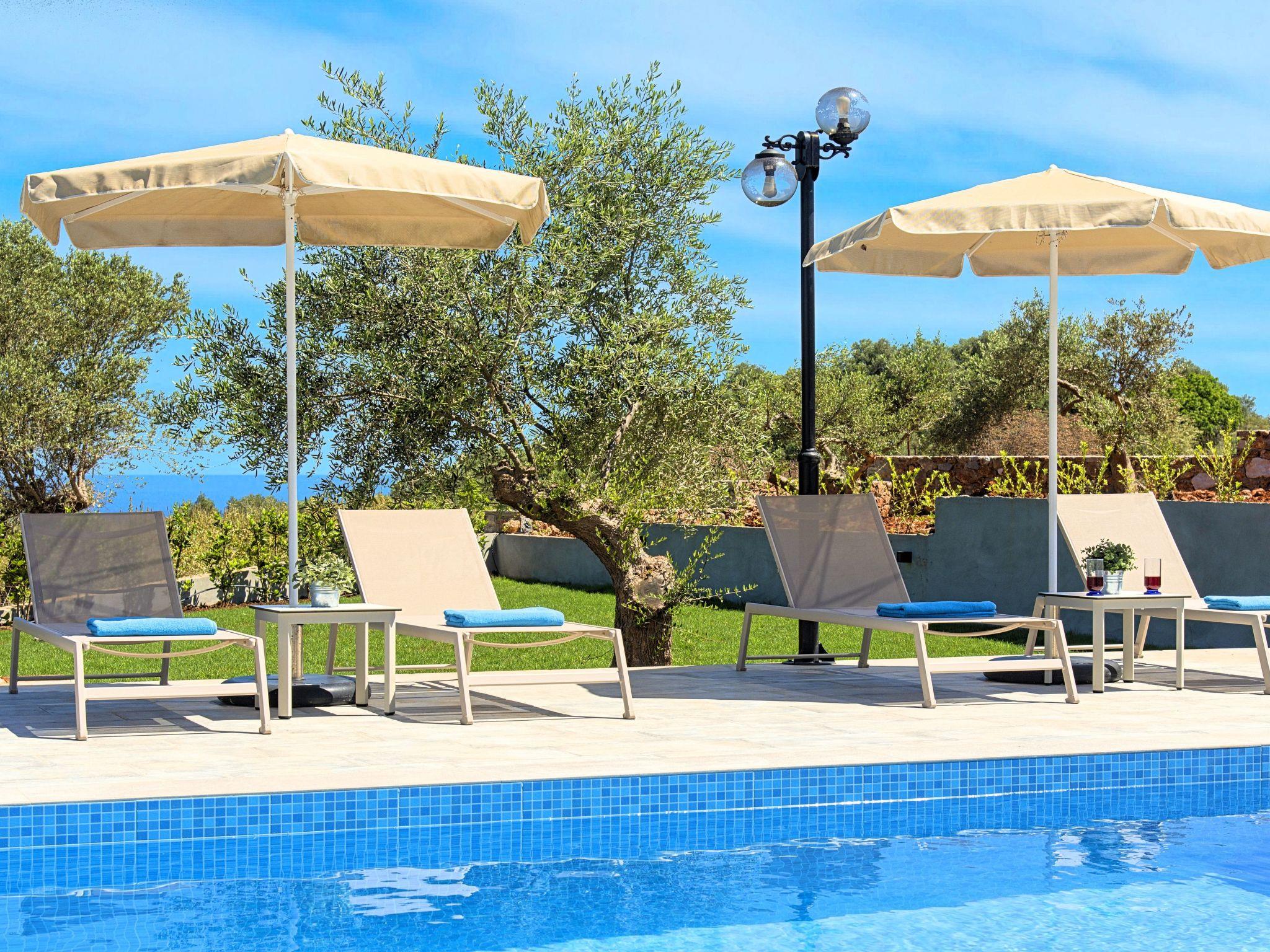 Nuzzled in an olive grove, above the sandy beach of Georgioupolis in Crete, Moon Light Villas captures the essence of relaxing and comfort living.Villa’s complex is built amphitheatrically with amazing sea views.These elegant Villas evokes the island’s Mediterranean spirit and cosmopolitan charm in its elegant environs while ensuring a holiday beyond comparison.Surrender to the temptations of refinement at one of the most enchanting Cretan Villas and take in the splendid panoramic views to the emerald Cretan Sea.Find your peace and quiet and unwind in a haven of bliss and tranquility.Hide away in the calm of summer and elevate your senses at one of the most remarkable Villas with private pool.Each One of Three Villas can accommodate up to 15 guests ( 10 in the bedrooms) and 5 more at the sofas in bedrooms or at the lower level living room.