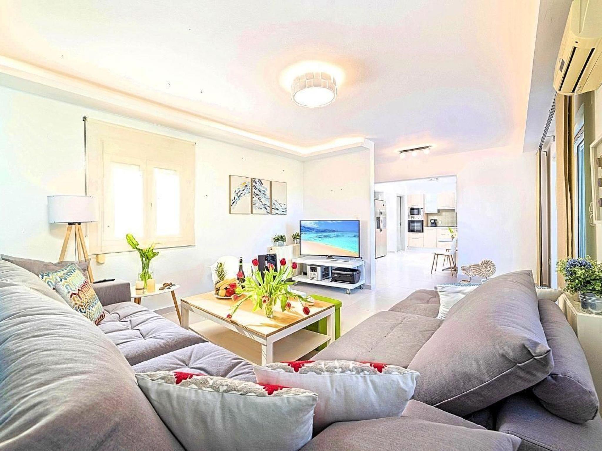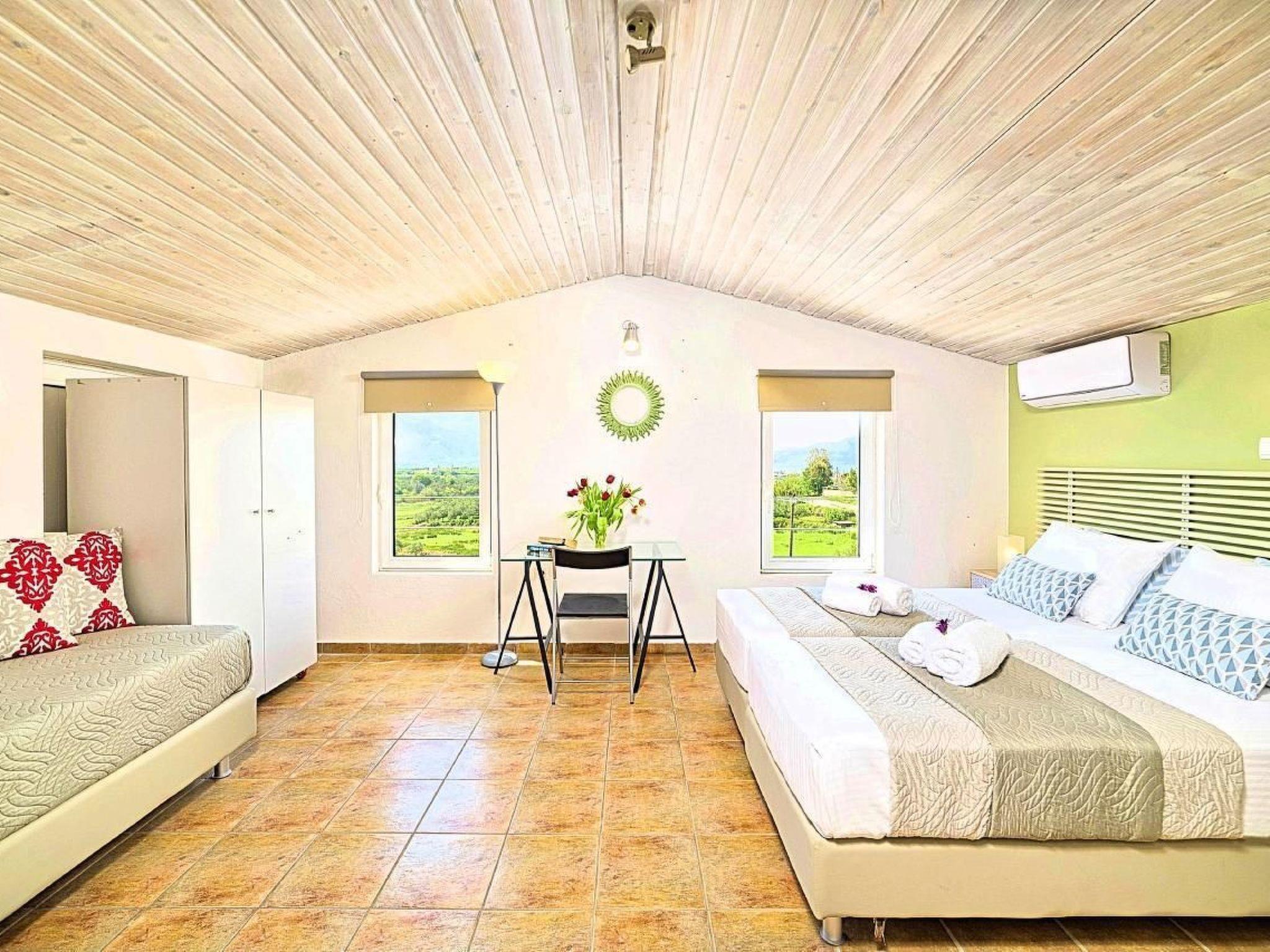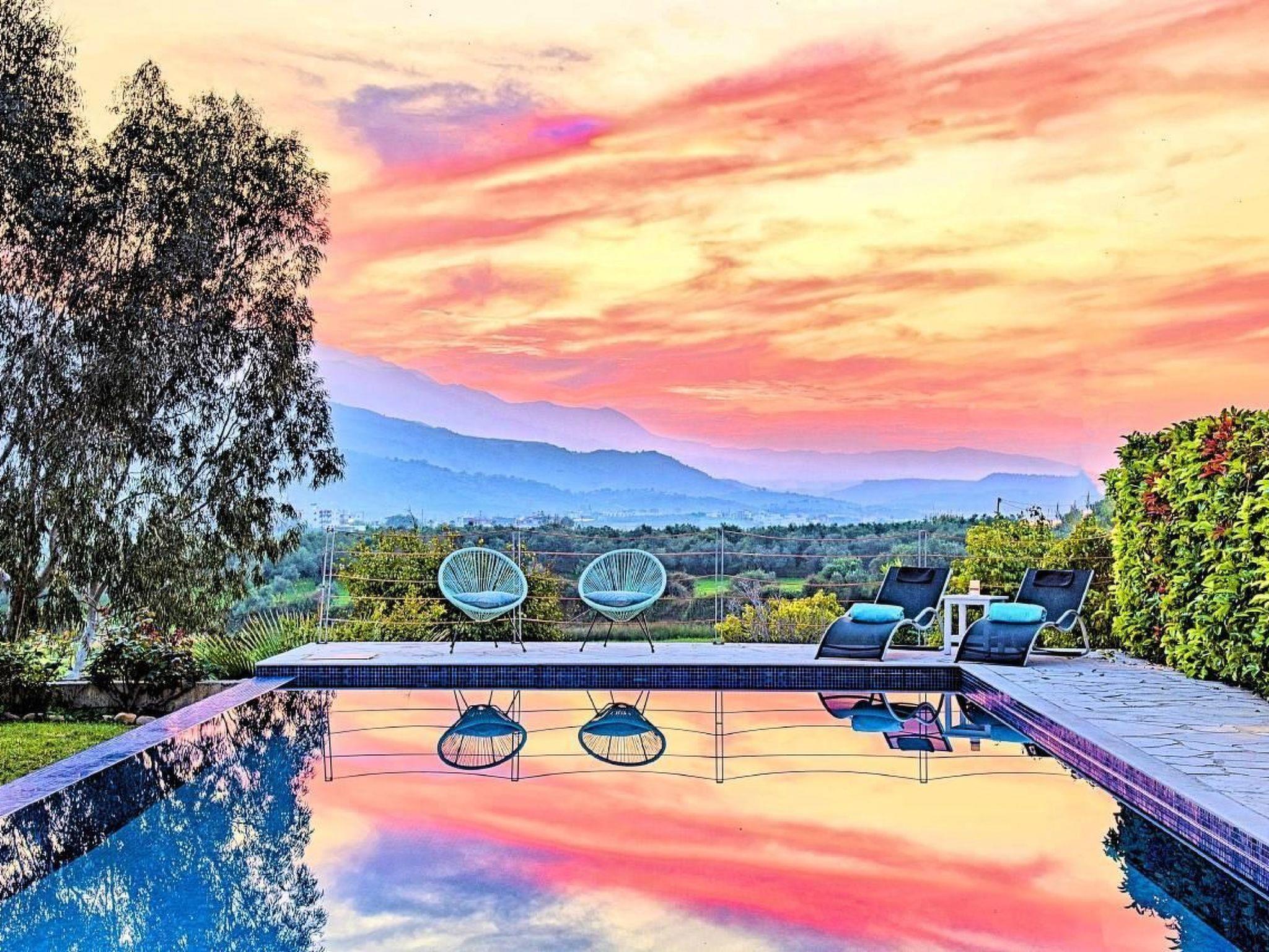 Built with modern design, it affords guests with everything they need in order to enjoy a relaxing and enjoyable holiday. The rooms of the Mansion are functionally decorated. Its 5 bedrooms all fully equipped and spacious, all with private bathrooms. The lounges, dining rooms, kitchens are equipped with everything essential for a comfortable holiday. The gardens of the Mansion are surrounded by hand-made stone fences full of blossoming bushes, fruit trees and white oleanders. Swim in the private pool. Enjoy your coffee or drink at one of the terraces of our Mansion, looking out towards the White Mountains and the sandy beach of Georgioupolis. As you gaze at the valley surrounding the village, which is covered by a thick olive grove, you will relax immersed in aromas of rosemary, lavender and mint, engulfing you in a dream of the natural scent of the Cretan land.