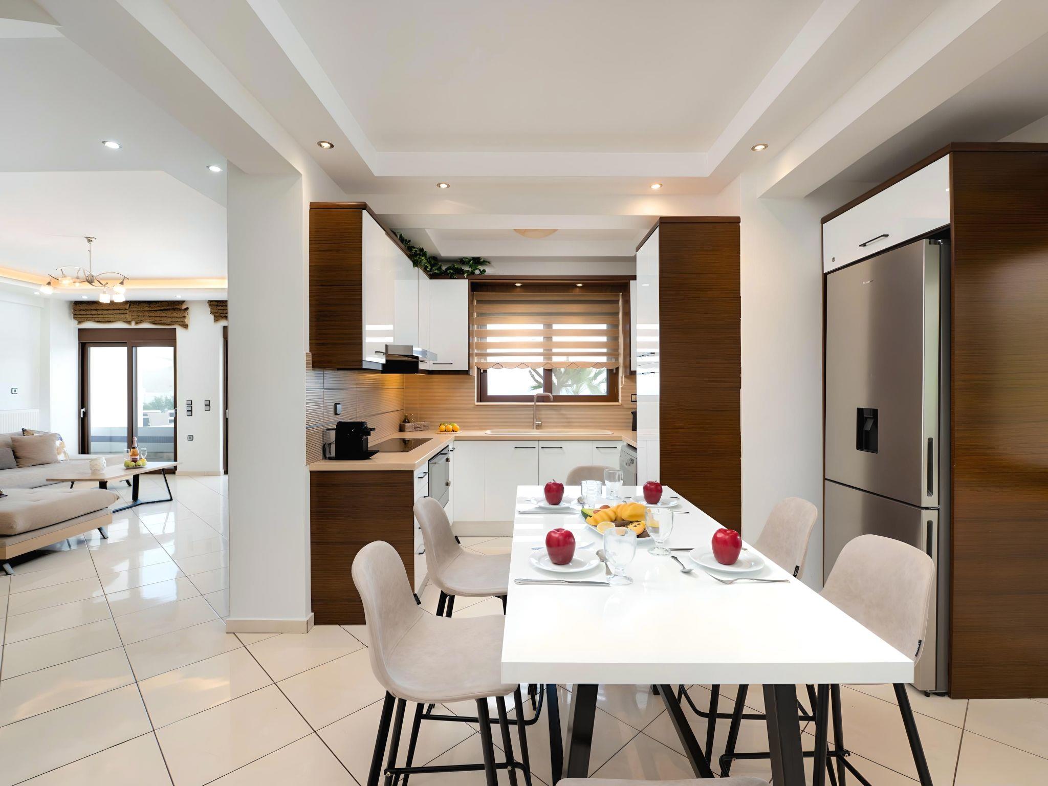 At the sublime junction where the green of the olive groves meets the midnight blue waters of the Cretan Sea, one finds Crete’s newest addition: Sunlight Villas. The 3-villa retreat constitutes a new kind of hospitality for the island, where a stripped-down contemporary aesthetic animates a next-generation social hub for sophisticated travelers. At only 5 minutes walking distance from Georgioupolis, the picturesque town of the eucalyptus trees and the turtle river, Sunlight Villas is the destination point as regards the accommodation, in this amazing island of great natural beauty. From our Villas you may commence your daily excursions and explorations to island beauties, beaches, sightseeing, night life … and that’s not all! Sunlight Villas exudes an aura of serenity, inviting guests to succumb to the pleasures of luxurious tranquility. Amidst the open sky and the azure sea, nature meets luxury & refinement, enveloping visitors in an ambiance of peace, calm and exclusivity. All Villas are fully equipped, offering our quests the required convenience in order to enjoy unforgettable relaxing vacations throughout spring, summer and autumn. Sunlight Villas are ideal for big families, a group of families or a group of friends. Enjoy your vacations with your parents or with the rest of your family members while at the same time preserving your privacy just like at your own home. Our Villas are built one next to the other. Sunlight Villas can accommodate up to 36 guests.Short descriptionOther : Non-smoking houseShort description 1Number of kitchens : 3SurroundingNearby sports facilities : Basketball, Bike tours, Canoeing, Climbing, Diving, Fishing, Mountain climbing, Mountainbiking, Riding possibilities, Sailing, Surfing, Tennis, Water skiingRental Facilities : Boat rental serviceGarden and outdoorGarden facilities : Garden furniture provided, GrillOn-site leisure facilities : Swimming poolService benefitsService facilities (may incur additional costs) : Transfer service (airport etc)