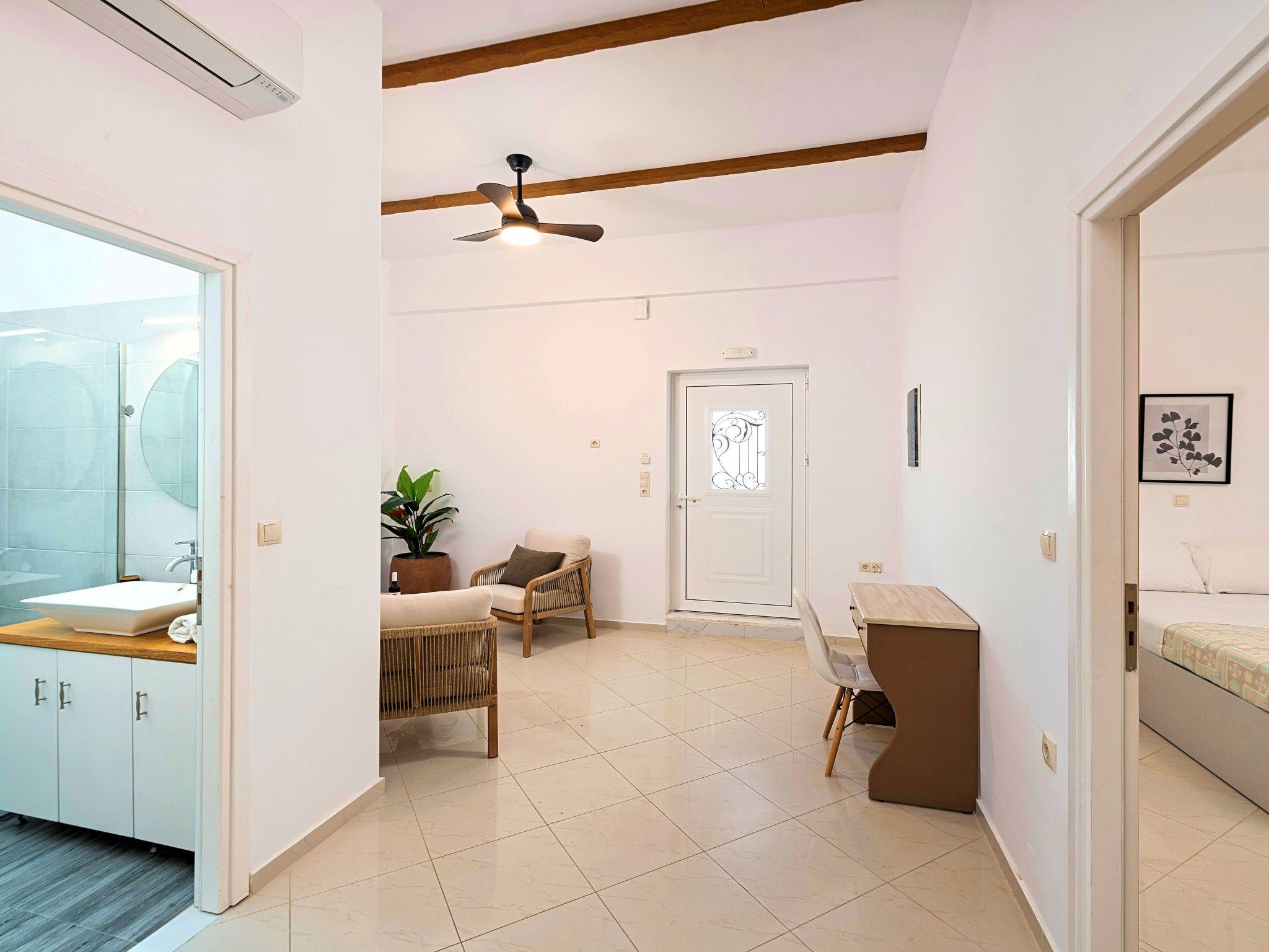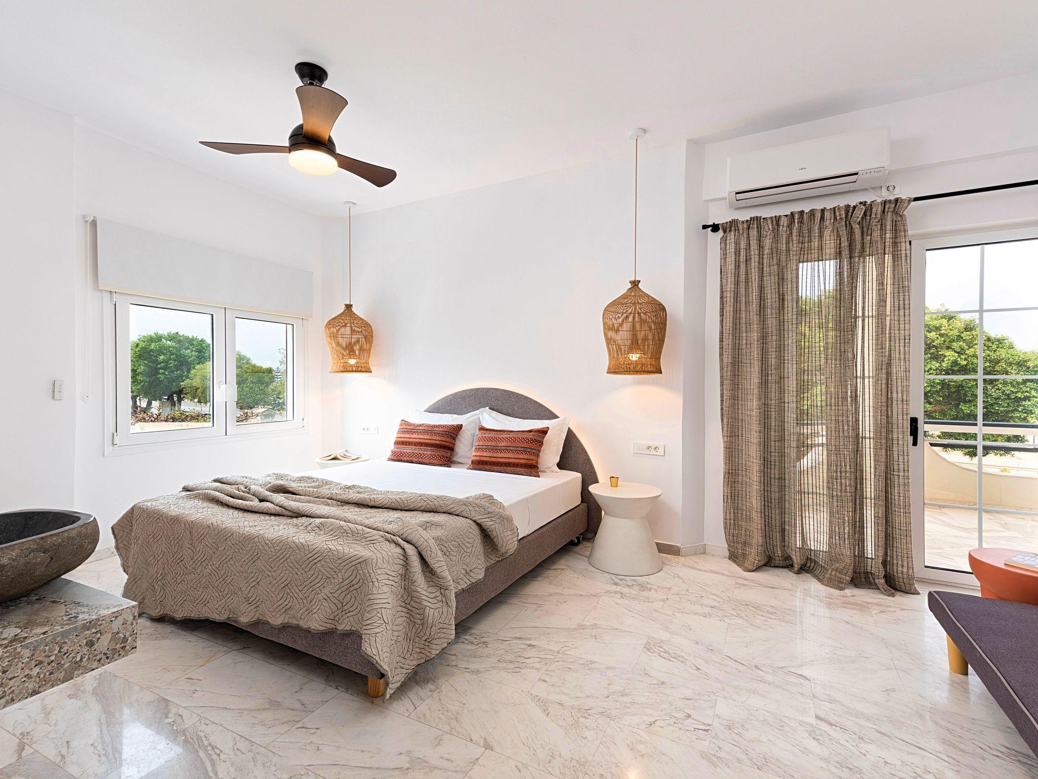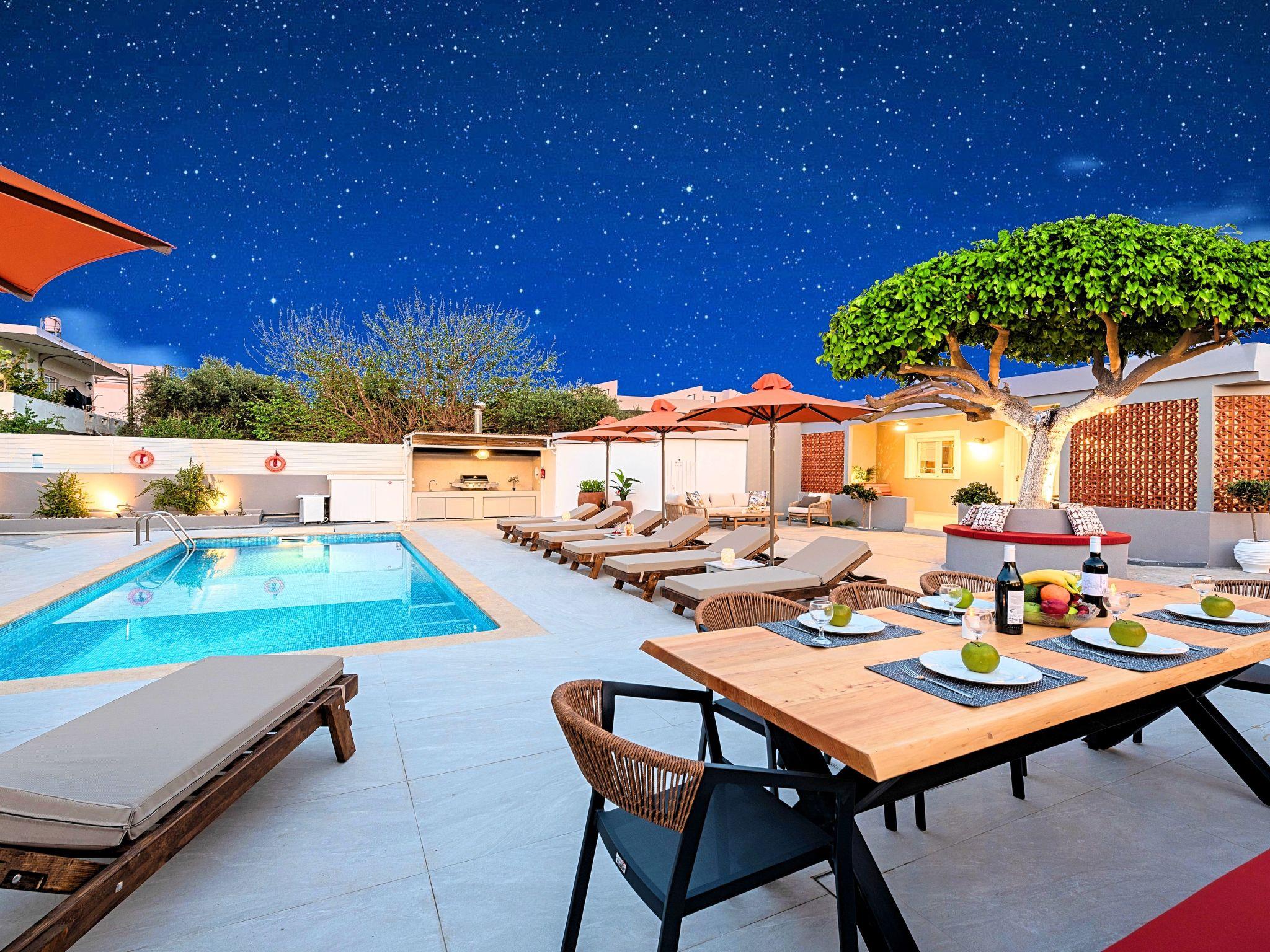 At the heart of Kavros, one of the most touristic places of Crete, Remezzo Villa emerges gleaming a bright, clean-lined Villa, where nature meets simplicity & refinement, enveloping visitors in an ambiance of peace, calm and exclusivity.Smart and modern in design, yet reassuringly unpretentious in attitude, offer a relaxed retreat just few meters away of the longest sandy beach of Crete Island. Attentive service, sun terraces for each bedroom that are perfect platforms for sunbathing and a large pool sanctuary to relax all together. Remezzo Villa is ideal for big families, a group of families or a group of friends. Enjoy your vacations with your parents or with the rest of your family members while at the same time preserving your privacy just like at your own home. The Villa offers 8 bedrooms, 5 bathrooms, 3 living rooms, large fully equipped kitchen, terraces, gardens and a large Pool area with sun lounge, sunbeds, umbrellas, BBQ and a large dining area for all of you.This is a two-floor building Villa.