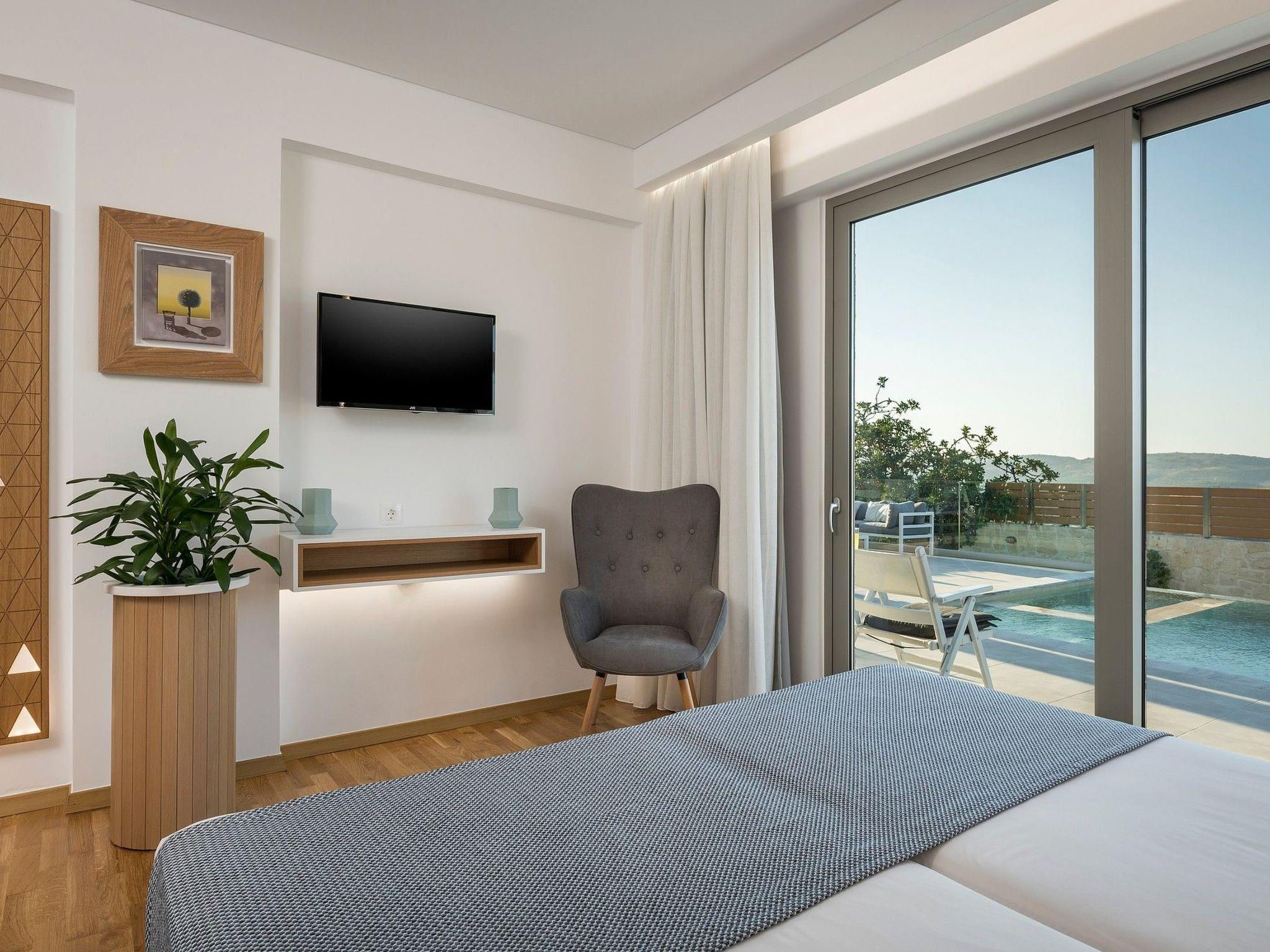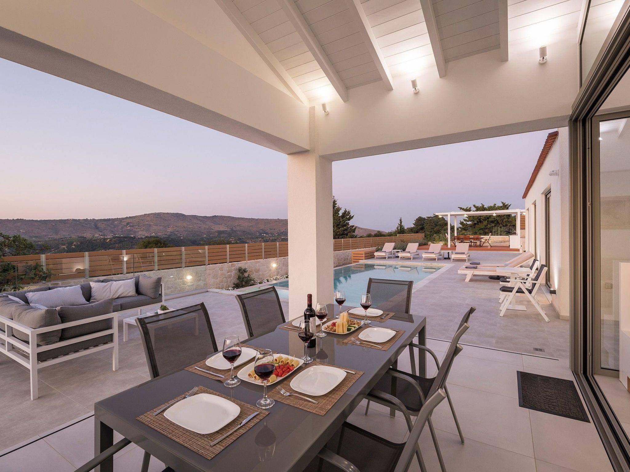 Villa White Harmony is the ideal shelter for the visitors of Crete which are visioning of a dream holiday overlooking the lush nature of Chania and the White Mountains, in an unbeatable location ideal for exploring Chania and Rethymnon. The outdoor heated pool with the sunbeds around can hold you at the villa all day long. As you walk in Villa White Harmony a delightful combination of natural materials and elegance create a welcoming atmosphere that gives relaxation and a sense of well-being. The handmade kitchen made by the owners has all the amenities you need for a comfortable stay, such as refrigerator, electric cooker, dishwasher, washing machine, coffee maker, toaster, kettle. The large 6-persons dining room invites you to dine with your friends while relaxing on the couch watching your favourite TV program featuring satellite channels and NETFLIX. In the same area there is a fireplace that you can light on the cold days and nights of your holiday. Moving down to the imposing White Harmony villa there are 3 tastefully decorated en suite bedrooms with king size double beds while one bedroom can be split into 2 single beds upon request. Each of the 3 bedrooms has air conditioning and a wardrobe while baby cot (one or more) is available upon request. Check out is 11:00 latest and check in is 15:00 earliest giving.