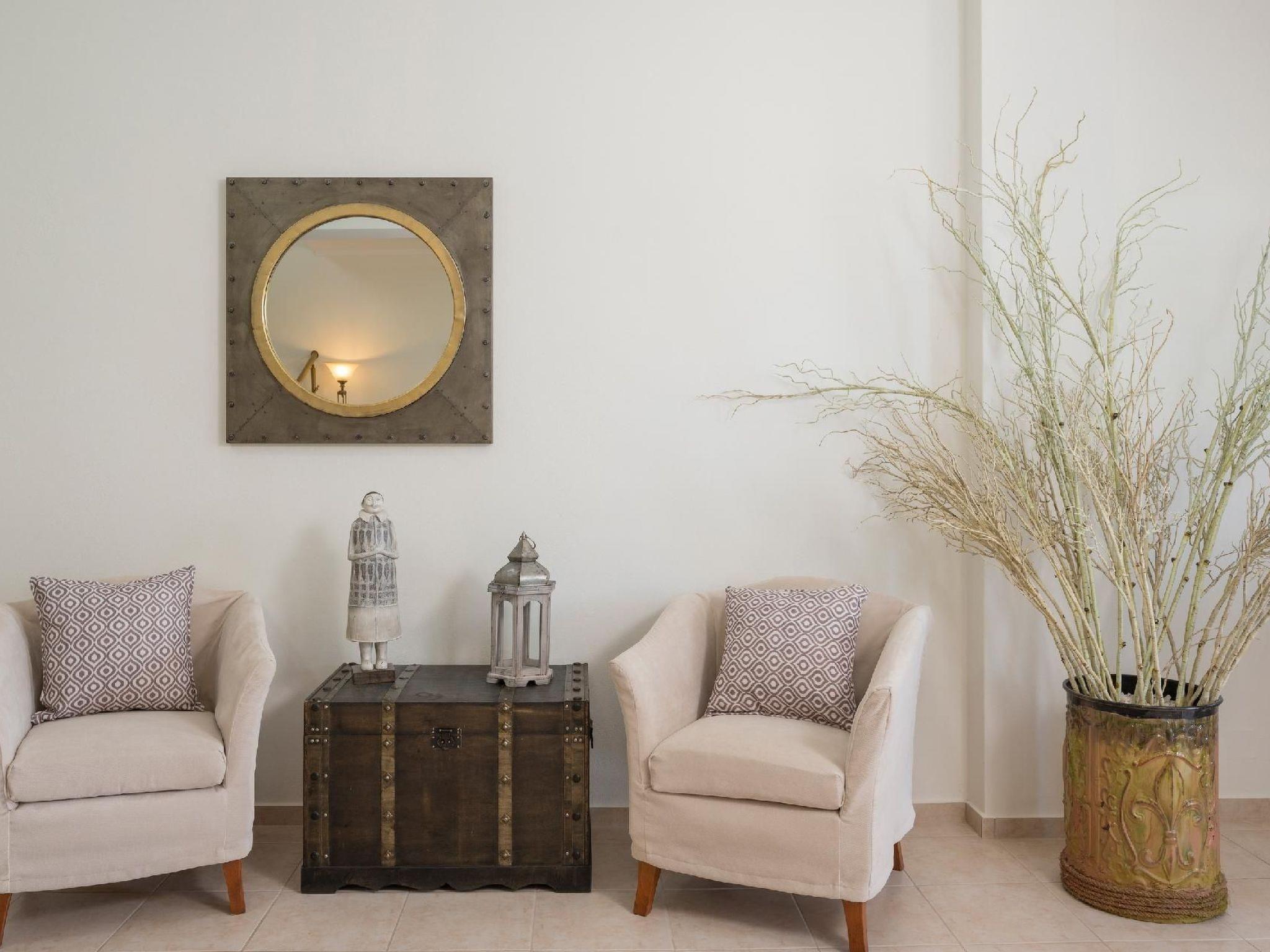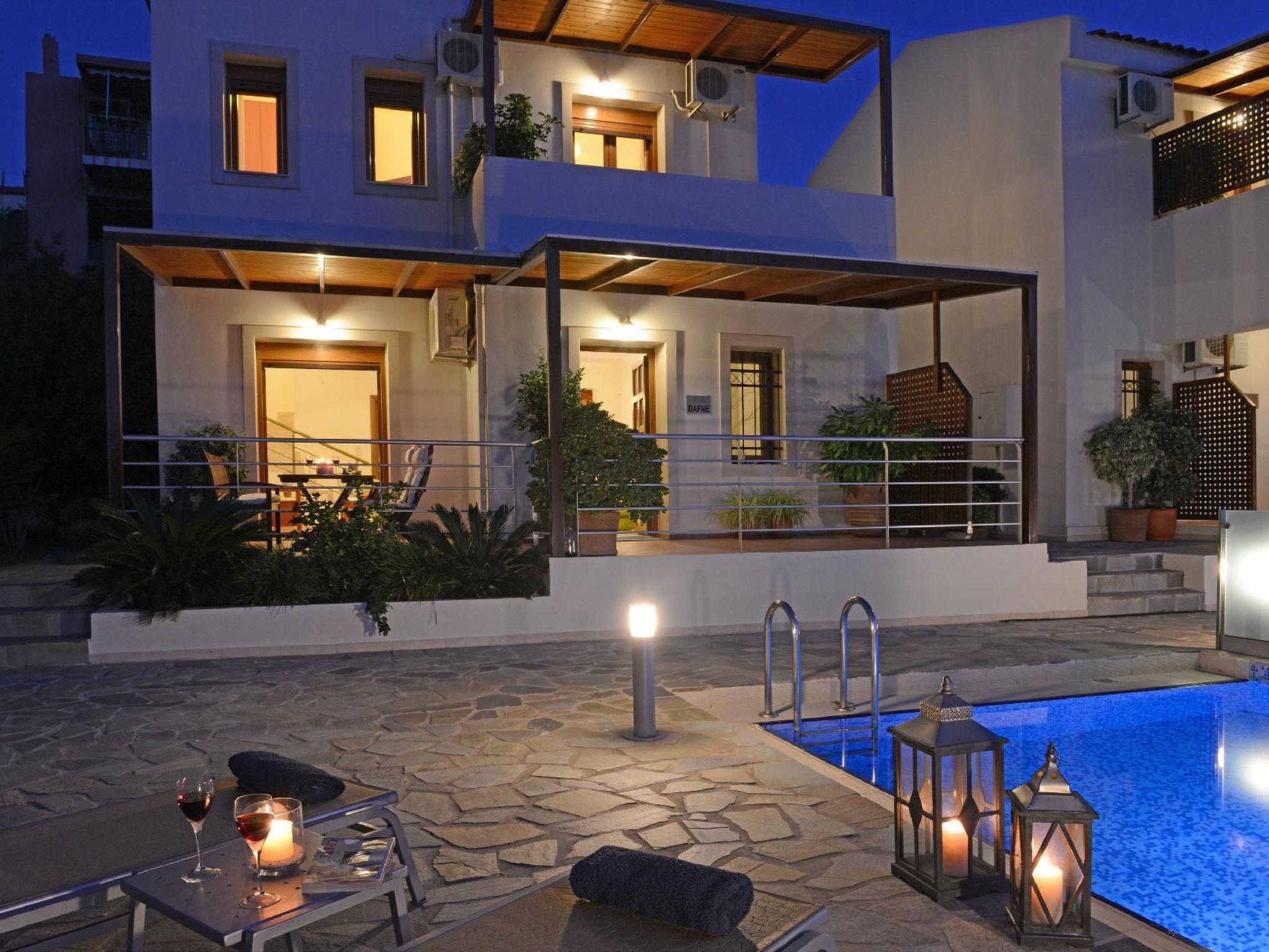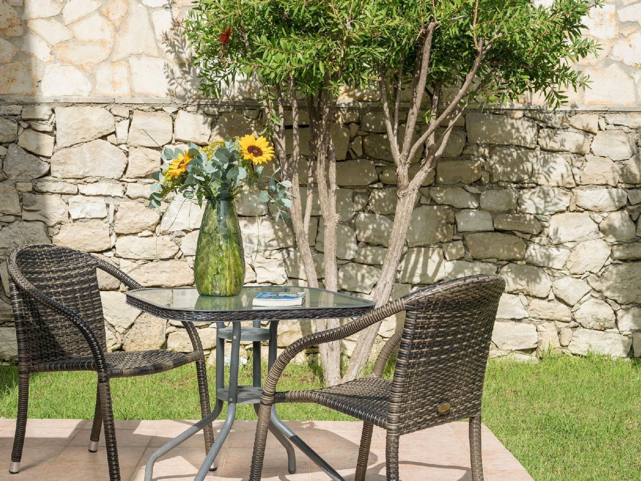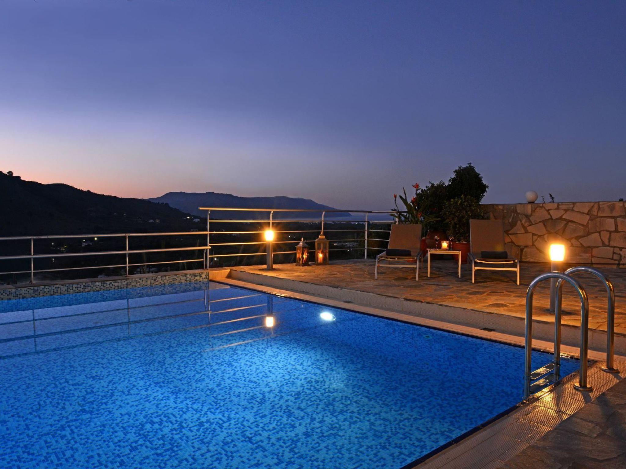 Family-Friendly Villa Bluefairy w/Pool, walk to Restaurants! 2 km to the Beach!These two unique villas are located in the most panoramic point of the region Kournas. They are built in a way that wherever you are you can enjoy the unique view of the lake and the White Mountains, also with a magnificent backdrop to the deep bay of Georgioupolis and the deep blue of the Cretan Sea. As they are situated in the heart of Apokoronas, just outside the traditional village Kournas, the villas are the ideal starting point for all kinds of tours around the area. Explore the lake and the Cretan nature, visit Crete’s north and south coast, admire the island’s tradition and culture and enjoy its hospitality. Check out is 11:00 latest and check in is 15:00 earliest. Check in and check out can be made without a person to person contact (upon request) As you walk in each one of the 120sqm villas, the living room along with a fully equipped kitchen and a dining table is situated there for you. Two Sofas that can turn into beds, a High Definition TV and a WC can be found also on the ground floor. Walking up the stairs and heading up to the second floor, 2 bedrooms with one double bed and one with two single beds can be found. The ideal location in the hilly area of Apokoronas, but only 3 km from the beaches of Georgioupolis, amidst mountains, lakes and the sea, allows you for short walks and longer excursions to experience the Cretan nature and our people.Apokoronas is one of the five former provinces of Chania prefecture and is situated at the northeast part of the prefecture. Kournas is one of the area’s traditional villages. The area of Apokoronas extends from the foothills of Lefka Ori north to the beach, with several gulfs, such the gulf of Almyros and Georgioupolis.Kournas Lake, 3 km from Georgioupolis, is the southern lake of whole Europe. It was created thanks to the underground water coming down from Lefka Ori which is trapped by the impervious rocks within the natural basin.Terrace with garden furniture and sunshade /own balcony/barbecuePool / swimming pool for private useOutdoor sitting areaParking possibilitiesProperty is detached and fenced