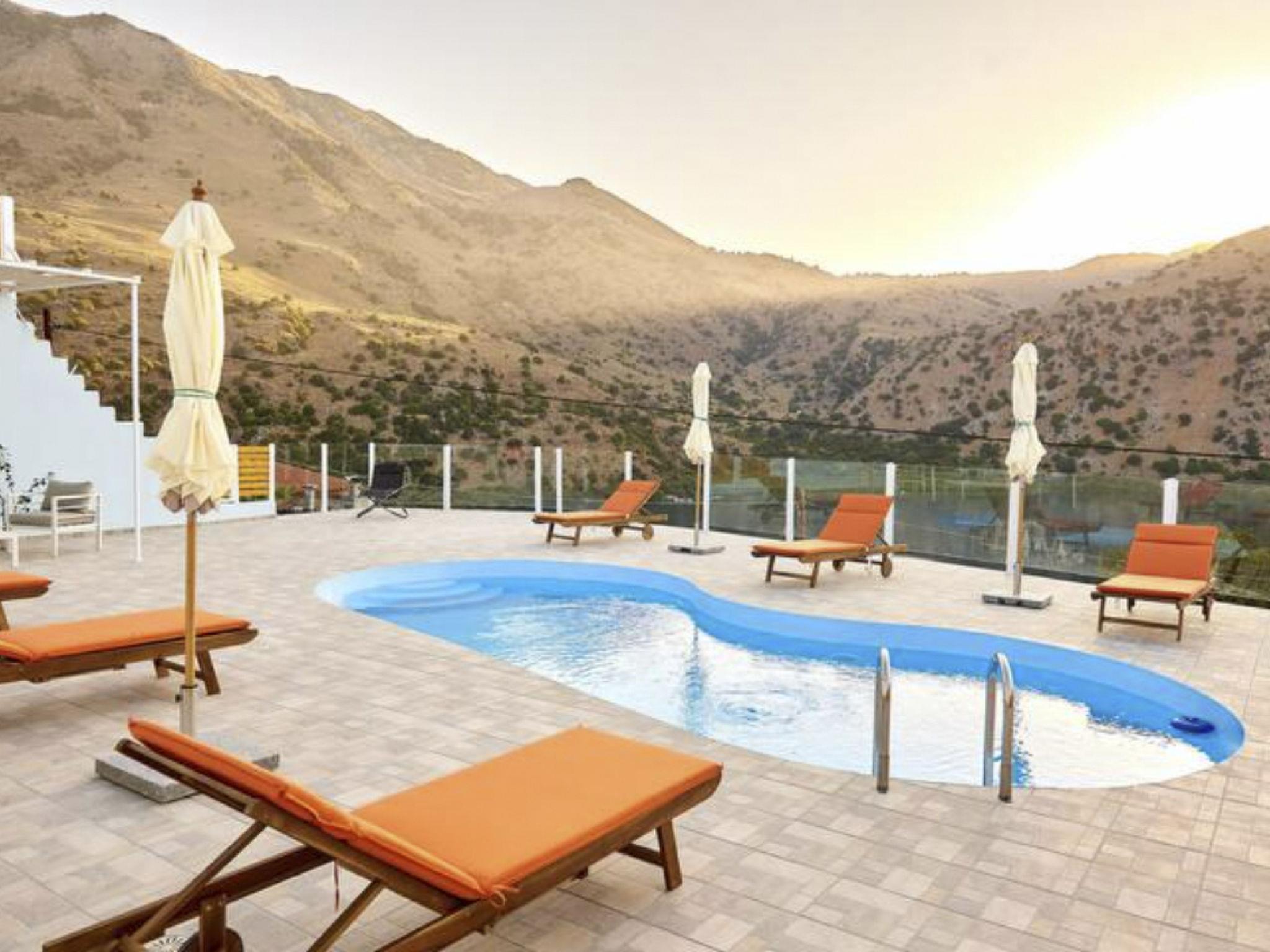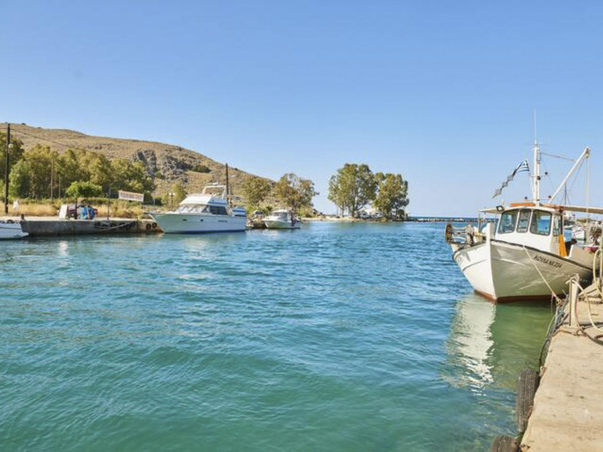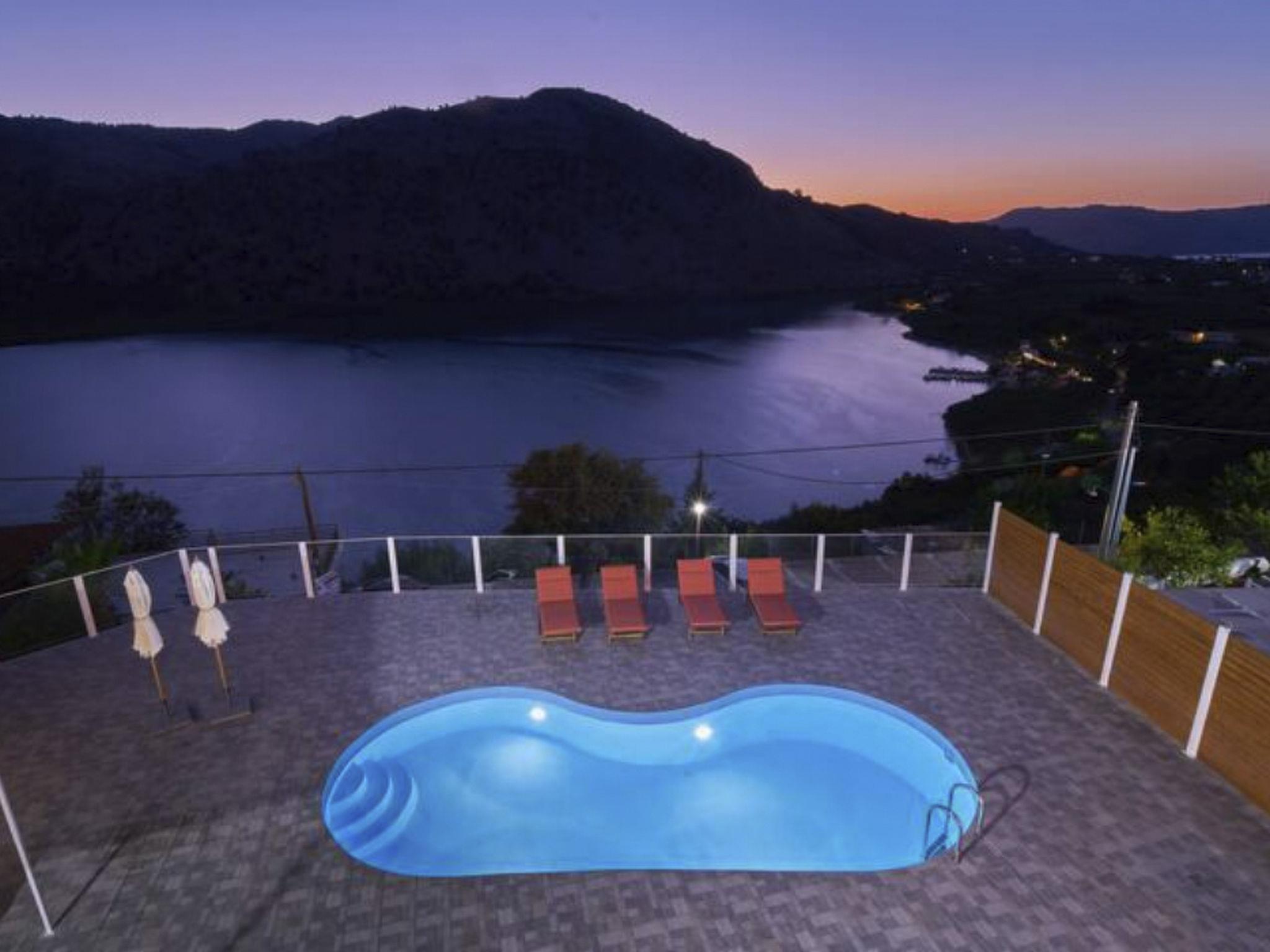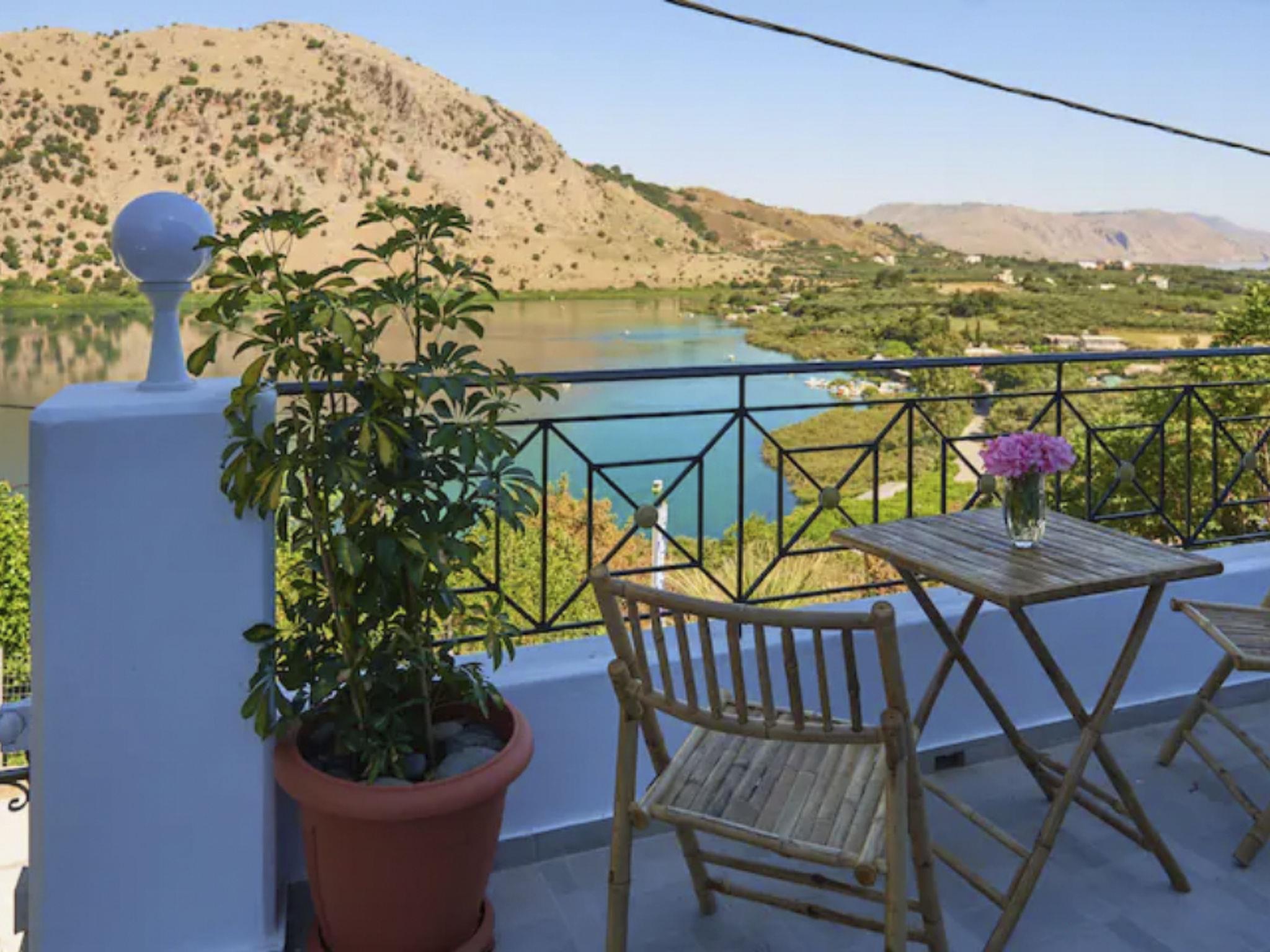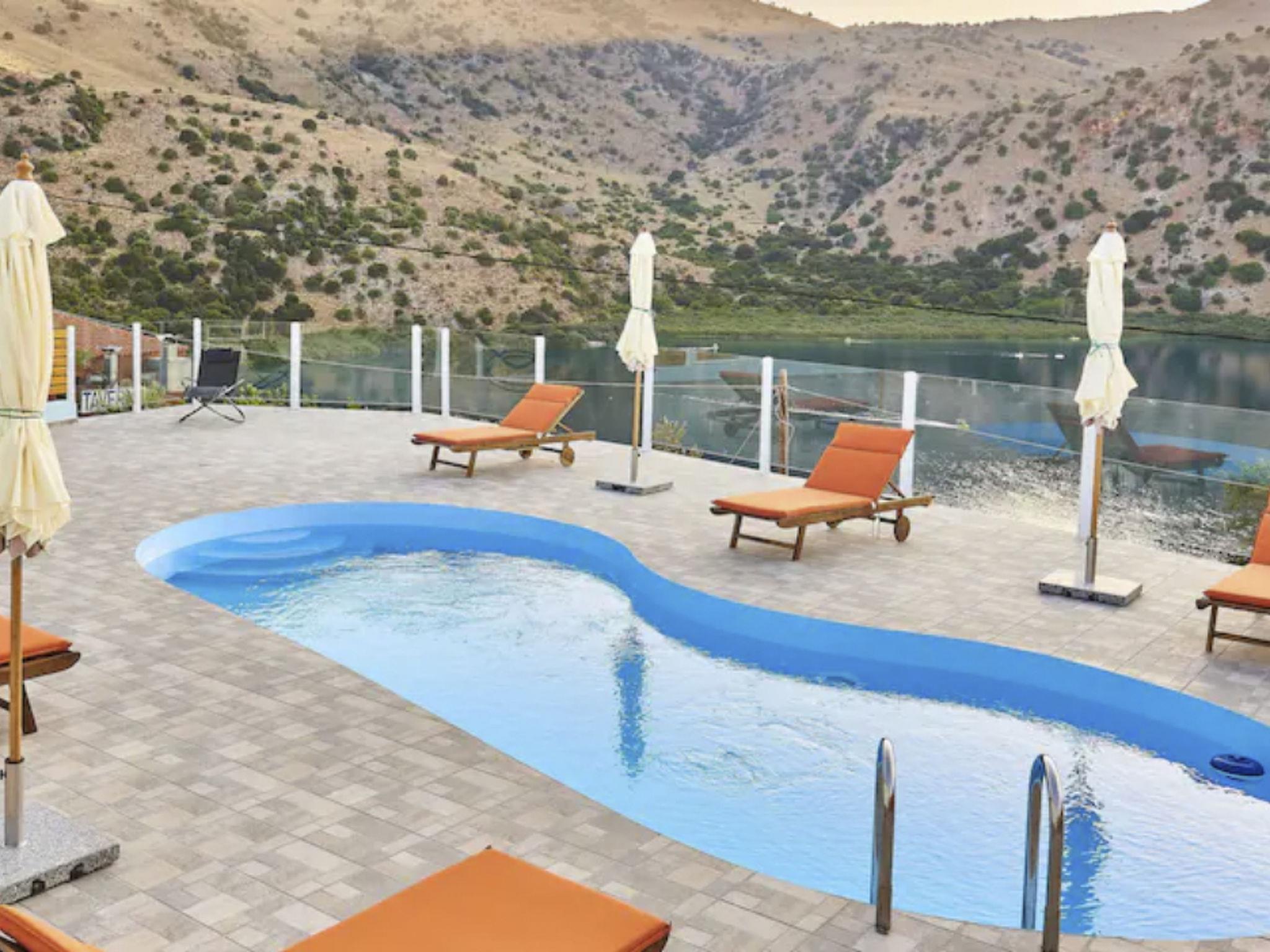 The villa is located by Lake Kournas, a unique freshwater lake in Crete, and is within driving distance of other notable destinations.