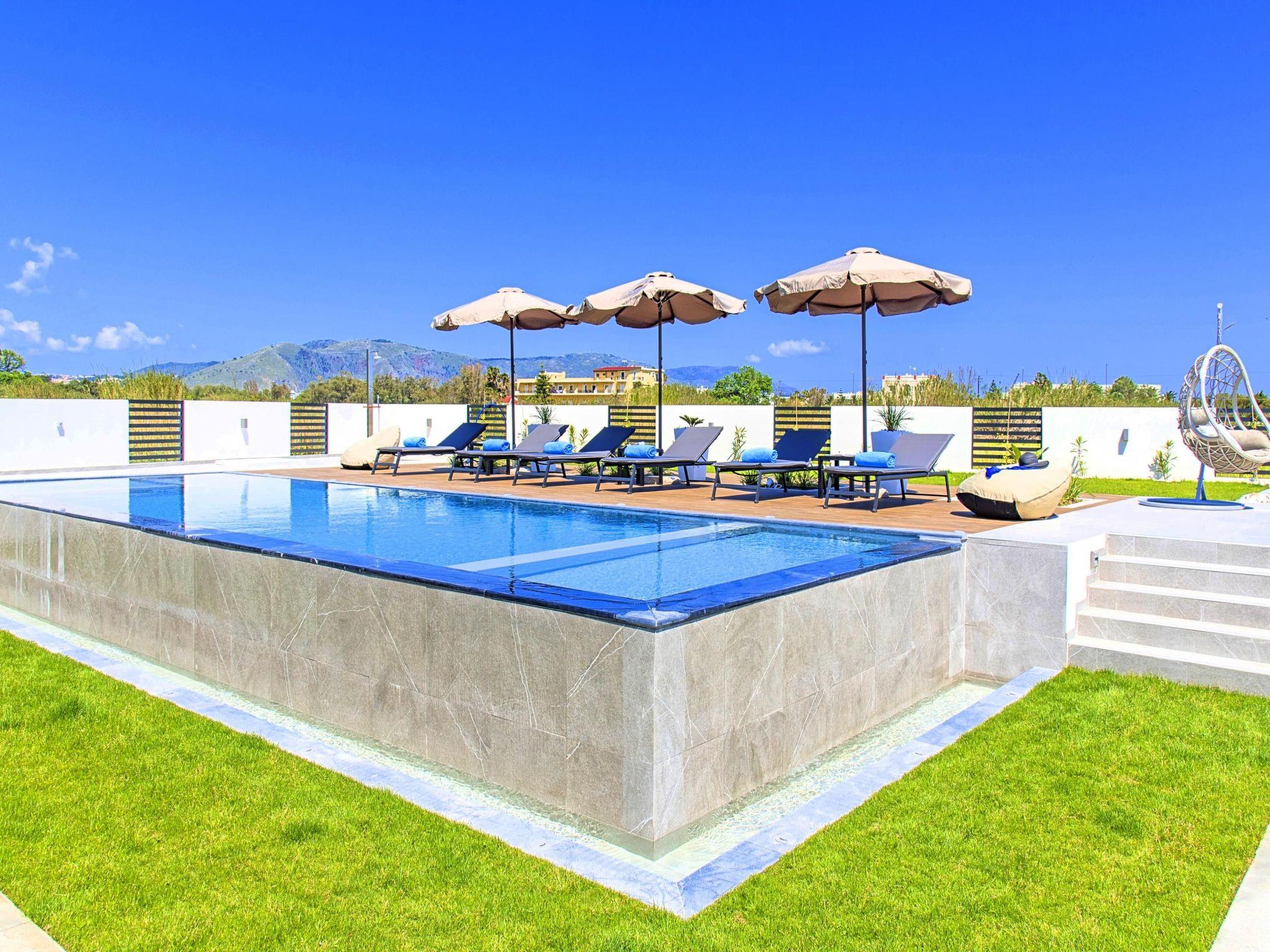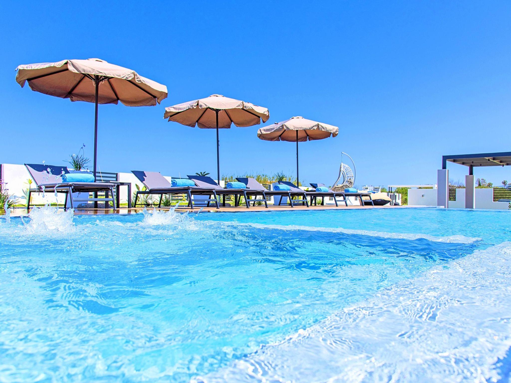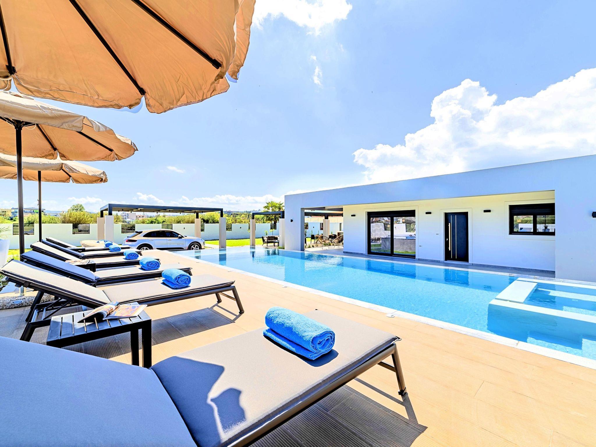 * Free Wi-Fi internet access. * Outdoor dining set (table with chairs). * Outdoor sitting area sofa and armchairs. * BBQ area with outdoor kitchen facilities (fridge-dishwasher) * Private Swimming waterfall large pool with whirlpool and children section. * Sun lounge area