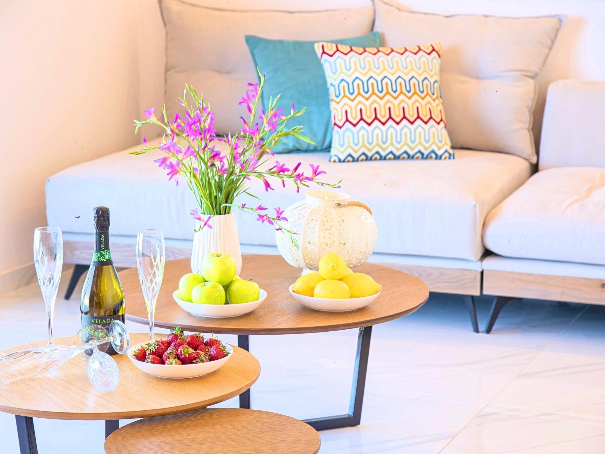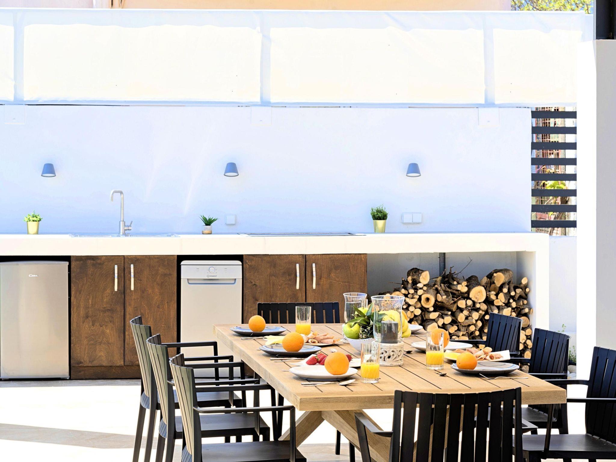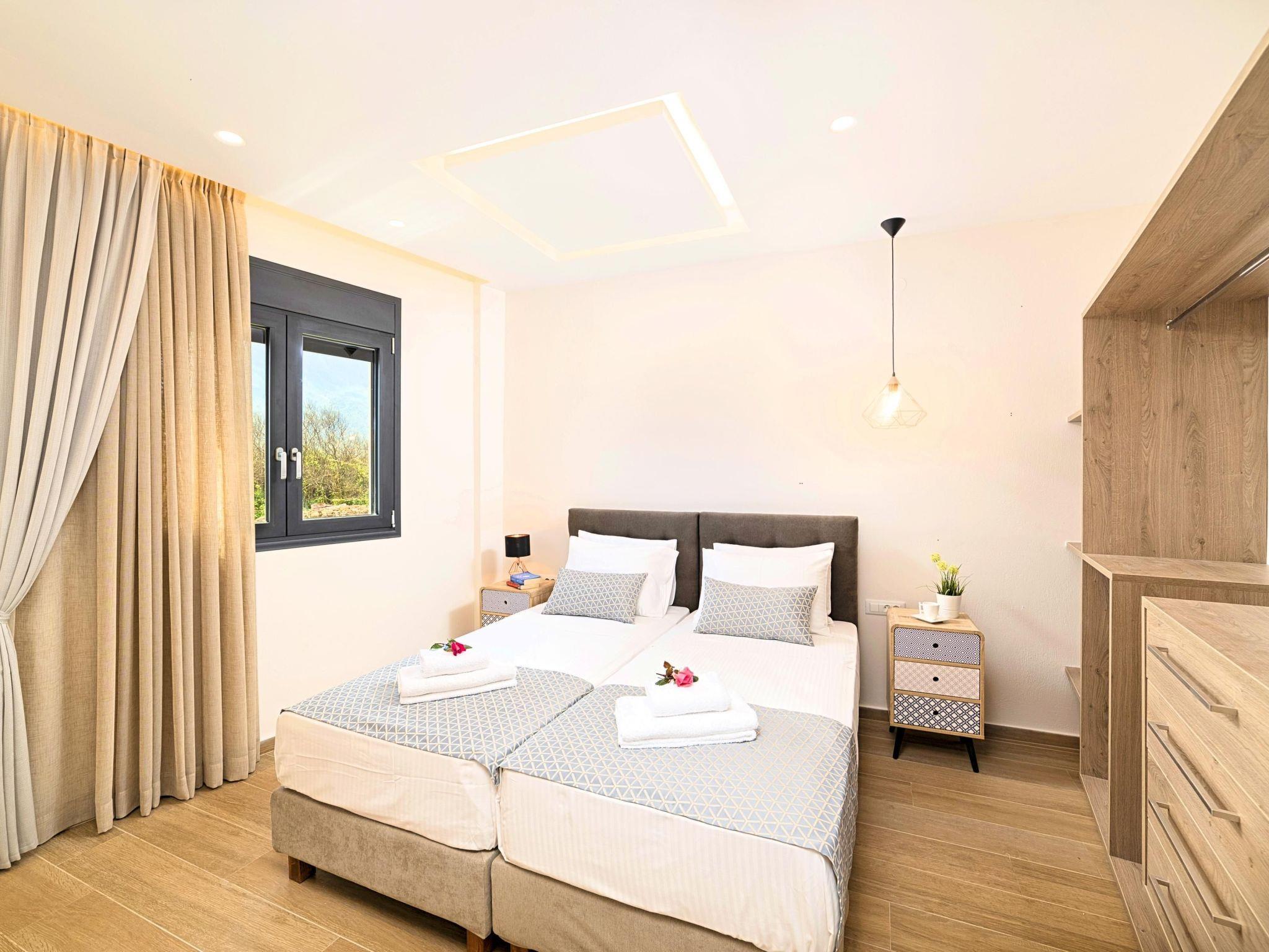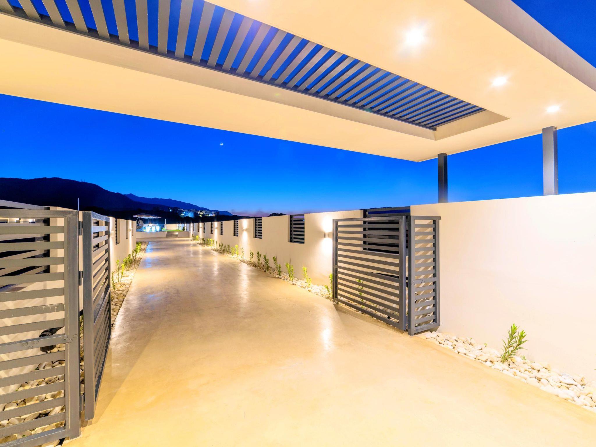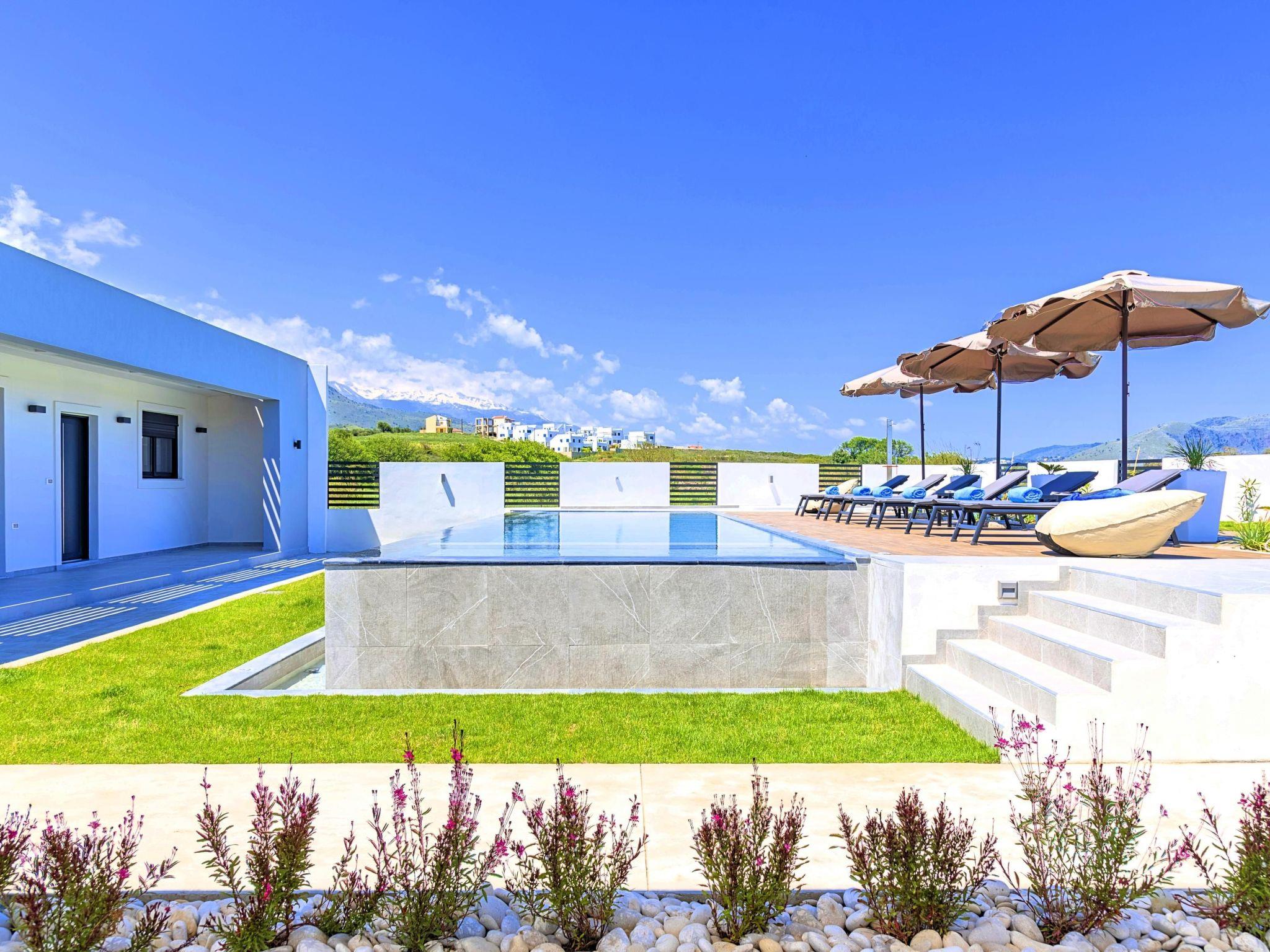 Facilities * A living room with a large Corner Sofa (can accommodate up to two quests) with direct access to the terrace and the pool area * A fully equipped Kitchen with an oven, microwave dishwasher, a fridge, a coffee maker, tea facilities, a toaster, a kettle and dining facilities. * A large bathroom with walking separate shower area. * A bedroom with two twin push together single beds offering amazing views to the white mountains. * A large bathroom with walking separate shower area. * A second bedroom with a queen-size double bed and direct access to the garden and the outdoor sitting area. * A third bedroom with a queen-size double bed and direct access to the garden and the outdoor sitting area. General Facilities * Smart TV at the living room. * Air-conditioning in all areas. * Washing machine / Dryer. * Iron and ironing board. * Safe deposit box. * Hair dryer in both bathrooms. * Linen and towels. * Toiletries. * Swimming pool towels. * Baby cot. * High chair for children. * Towels and bed linen changed and cleaned every 3 or 4 days.
