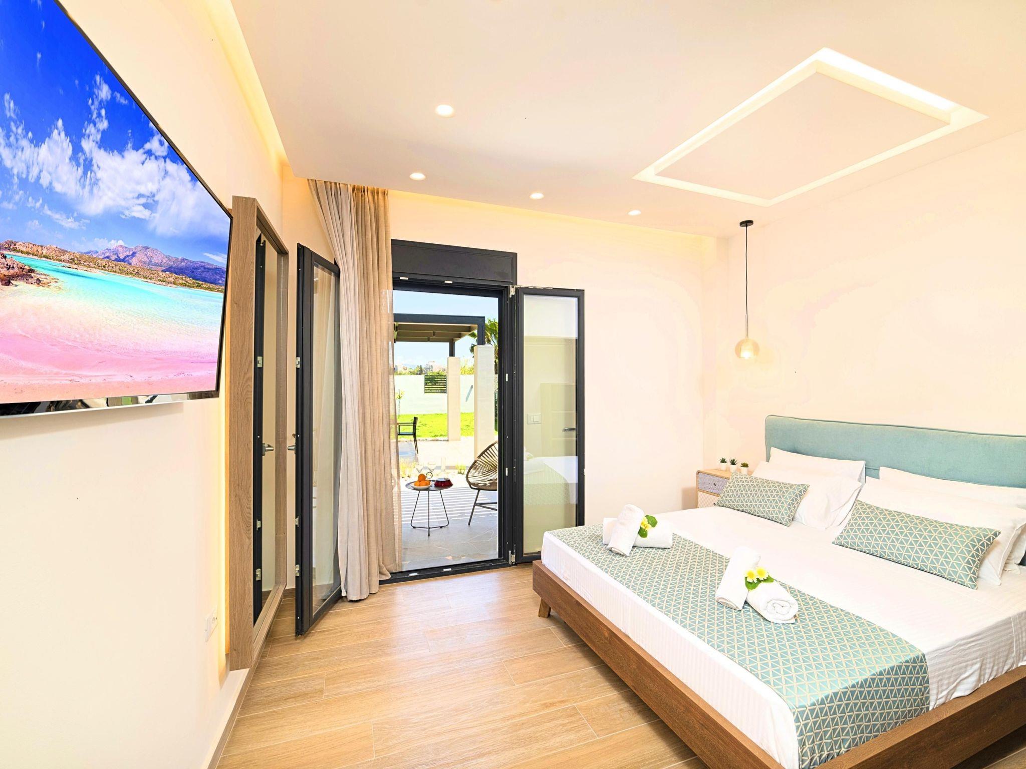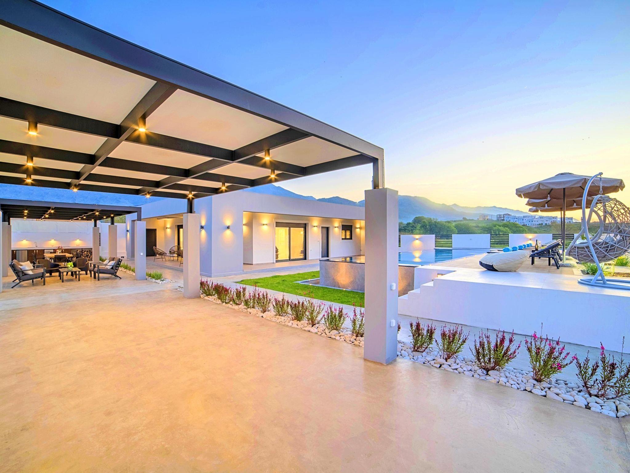 Located in Kavros village at the beautiful area of Apokoronas amongst a sandy beach, an oasis of Olive Groves, vineyards, is an extraordinary Boutique three-bedroom Villa offering a unique luxury holiday experience for visitors. Inspired by the postcard-Sunny pretty Cretan villages. Villa Solaris transports guests on a journey during their stay, providing an experience that fuses Cretan island charm with all the comforts of a luxury boutique villa. Blending seamlessly with its luscious verdant surroundings, Vila Solaris has been designed and built as an environmentally friendly home. Spanning an area of 2000 square meters, the villa offers a totally authentic experience of Crete, all in a single gorgeous location a few hundred meters from the largest sandy beach. Relax and unwind in the open air waterfall pool surrounded by the large sunbath area, or take a dip in the Villa’s pool. Enjoy a drink at the outdoors villa’s BBQ area. Slipping into your room will be like stepping into a stylish hotel room, with all the necessary amenities, combining with modern luxury, all complemented by refined style furniture. An oasis of glorious island serenity awaits you at Villa Solaris, so start planning your escape today. Perfect for families or group of friends. Villa Solaris based in Kavros Village, just few meters from the largest sandy beach of Crete, 1.5 of Kournas lake and surrounded by graphical villages.