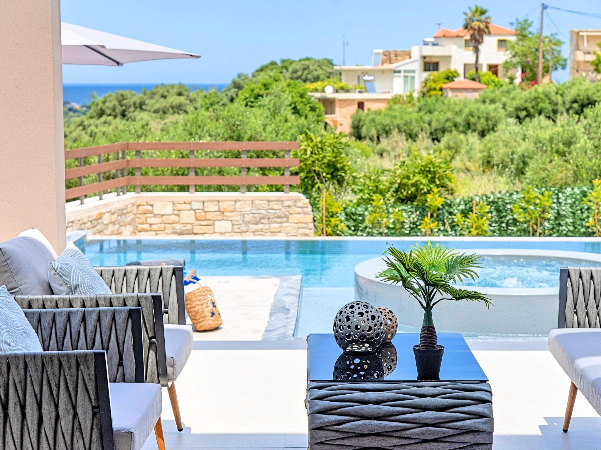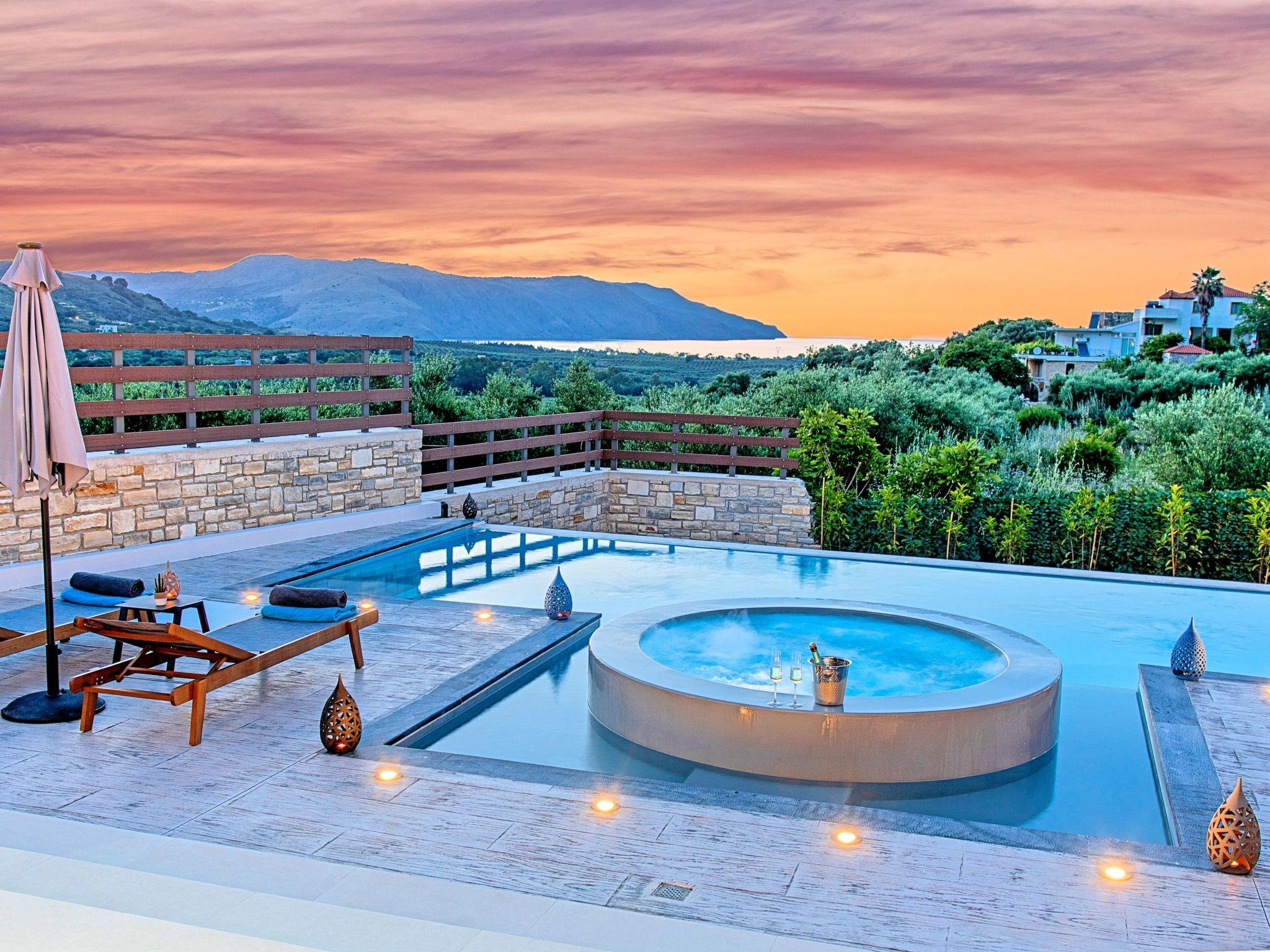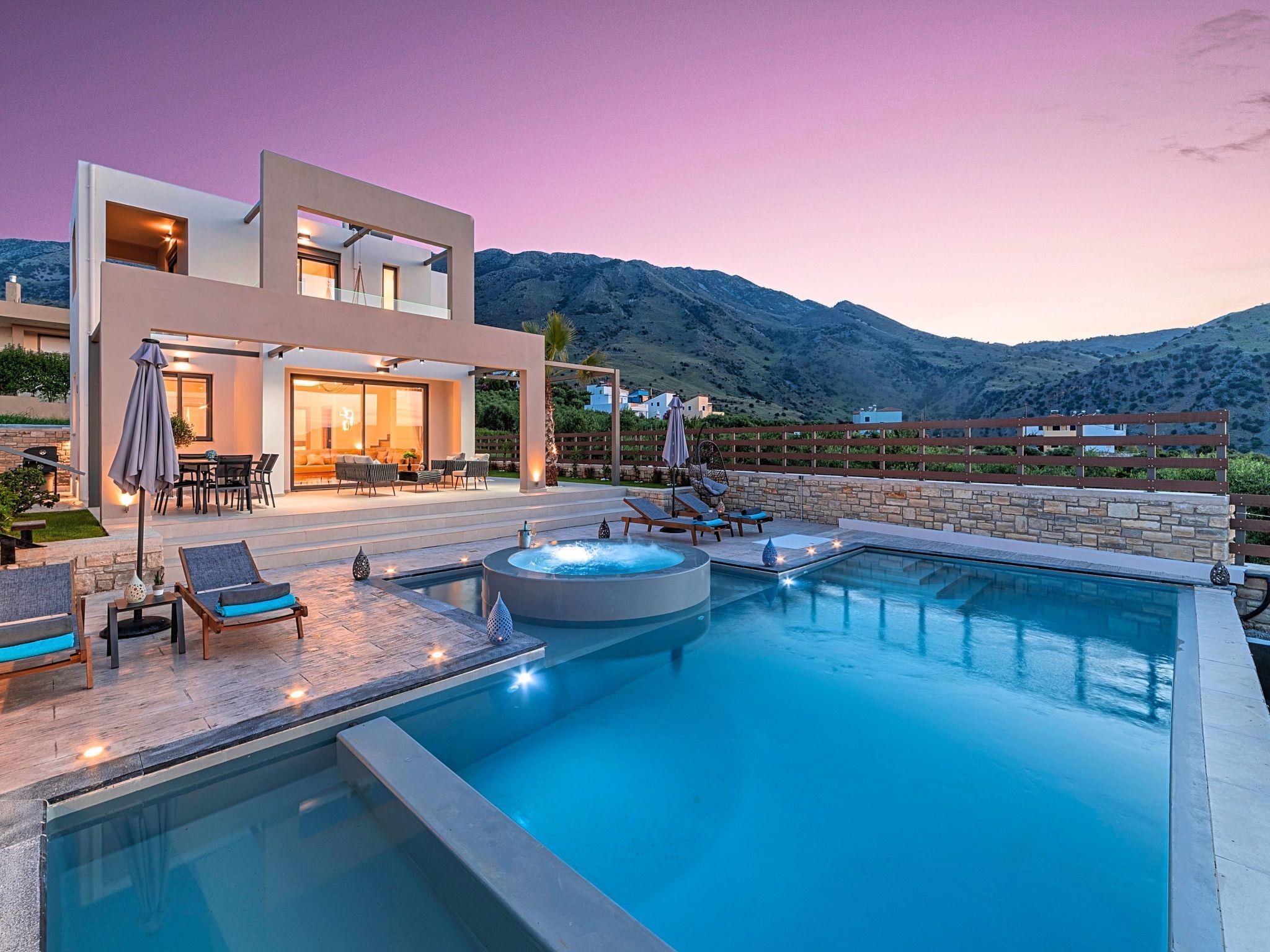 * Private parking area. * Direct access to the swimming pool area. * Private Heated Swimming pool with children/jacuzzi section.The outdoor pool is heated and can reach 6 to 8 degrees more that the 24 h average air temperature with maximum value of 29°C * Swimming Pool cleaning twice per week * Sun lounge area with sun beds and umbrellas. * BBQ next to the swimming pool. The villa can accommodate up to eight guests.