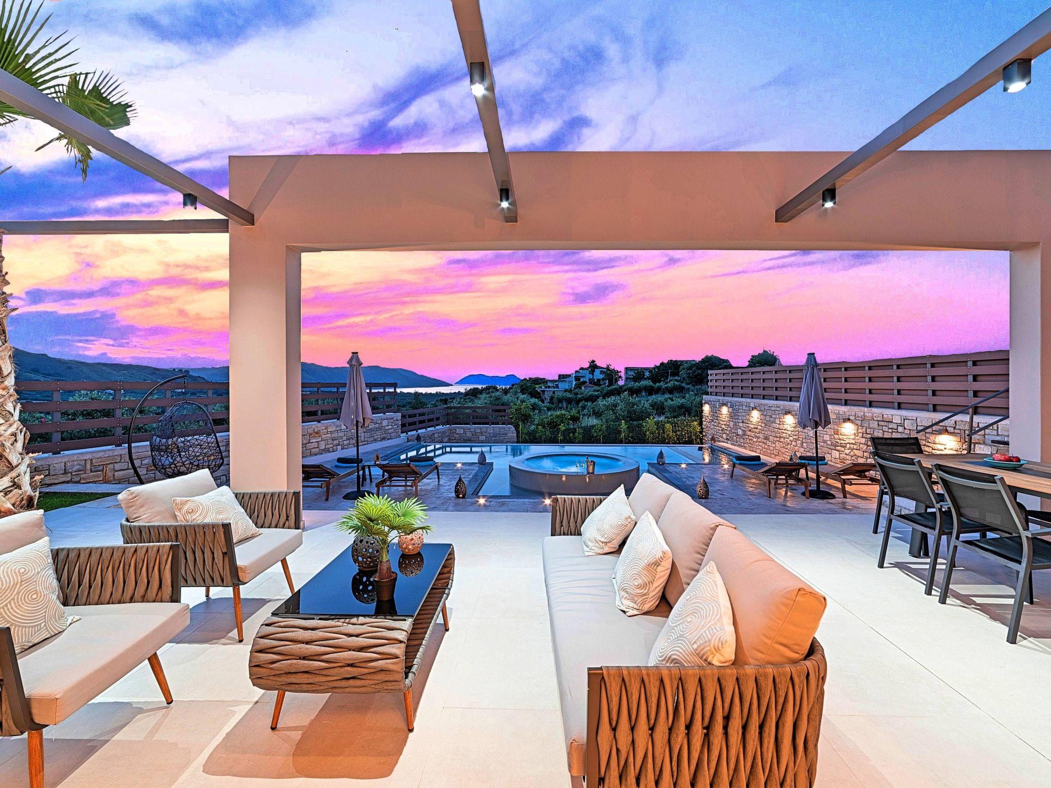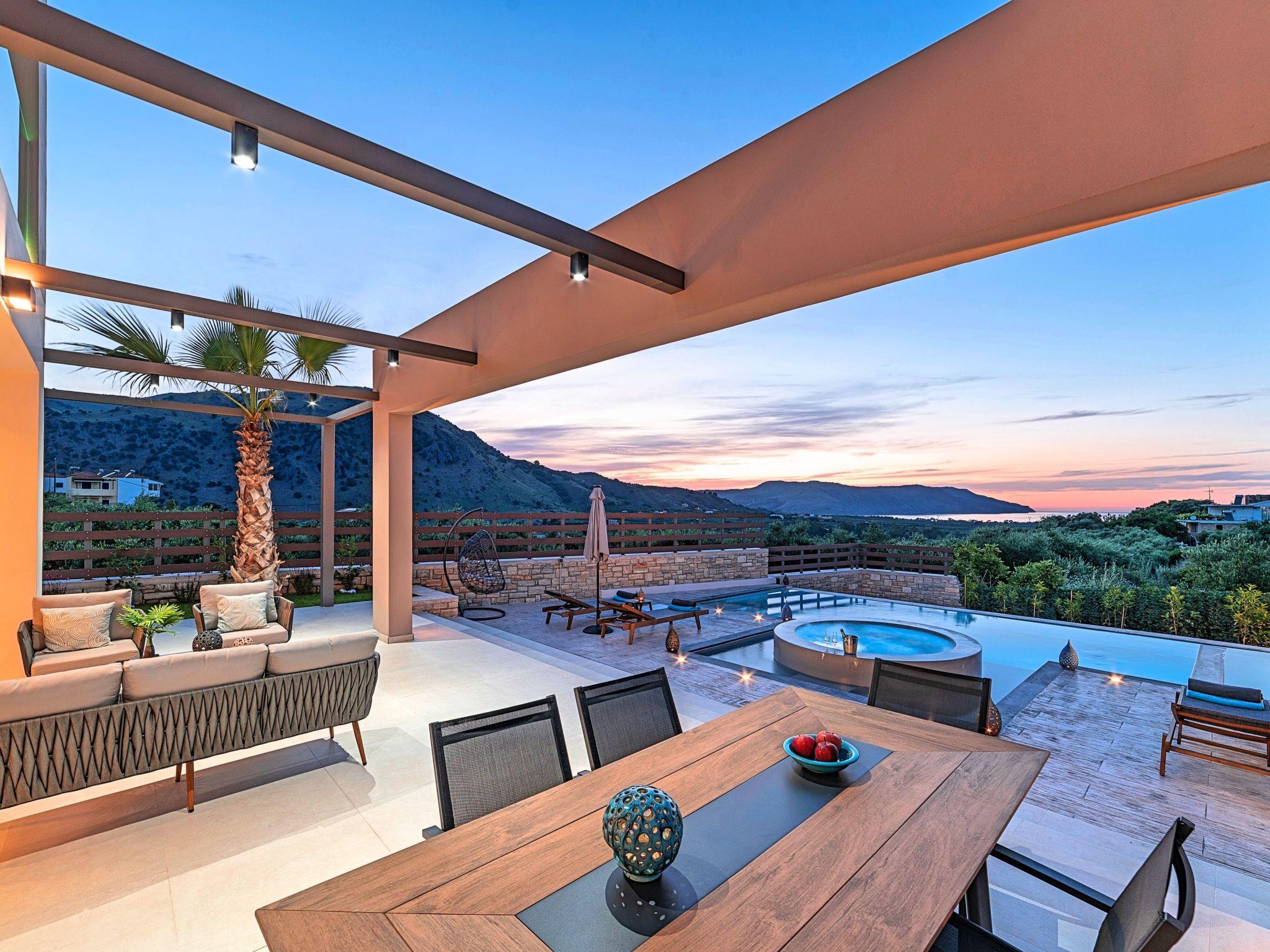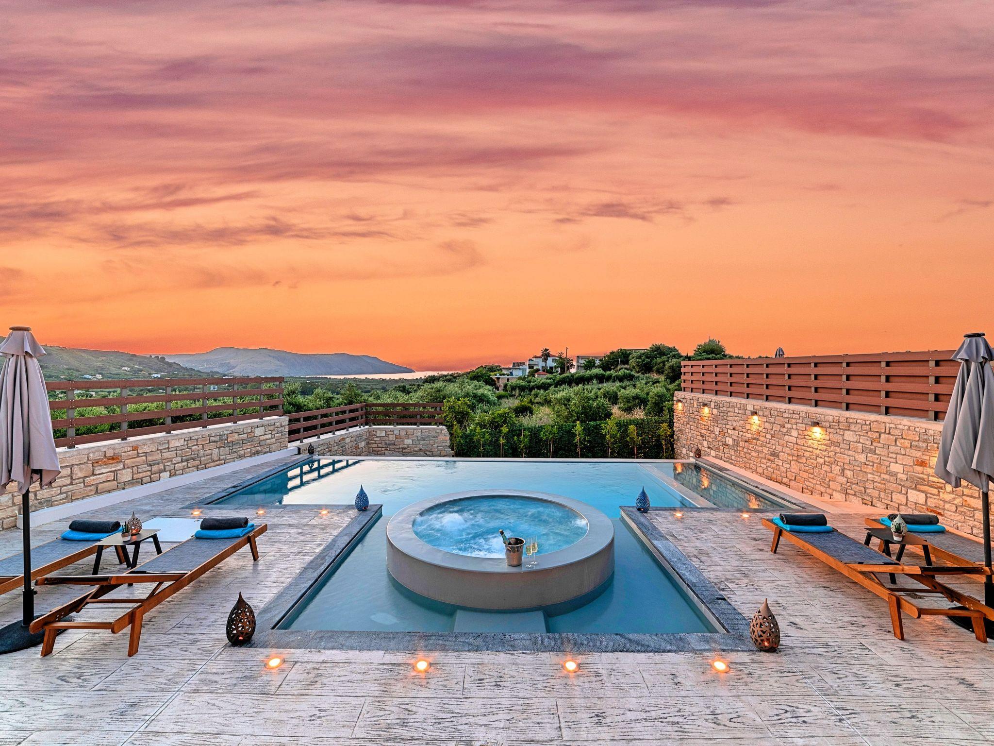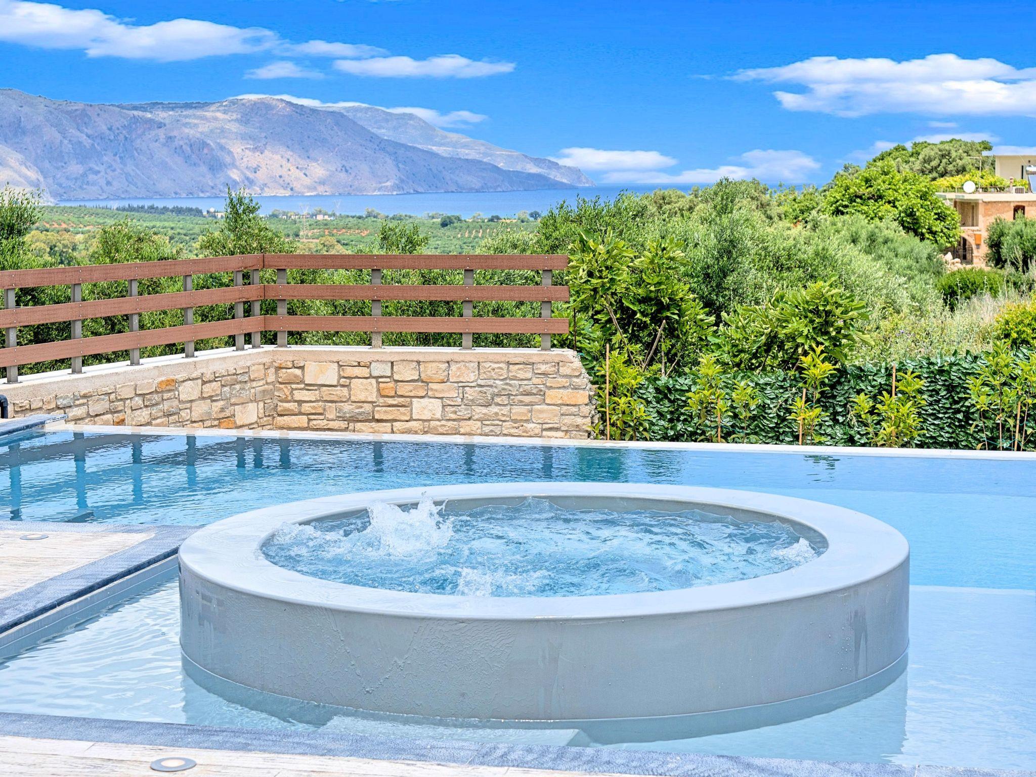 * Private parking area. * Direct access to the swimming pool area. * Private Heated Swimming pool with children/jacuzzi section.The outdoor pool is heated and can reach 6 to 8 degrees more that the 24 h average air temperature with maximum value of 29°C * Swimming Pool cleaning twice per week * Sun lounge area with sun beds and umbrellas. * BBQ next to the swimming pool. The villa can accommodate up to eight guests.