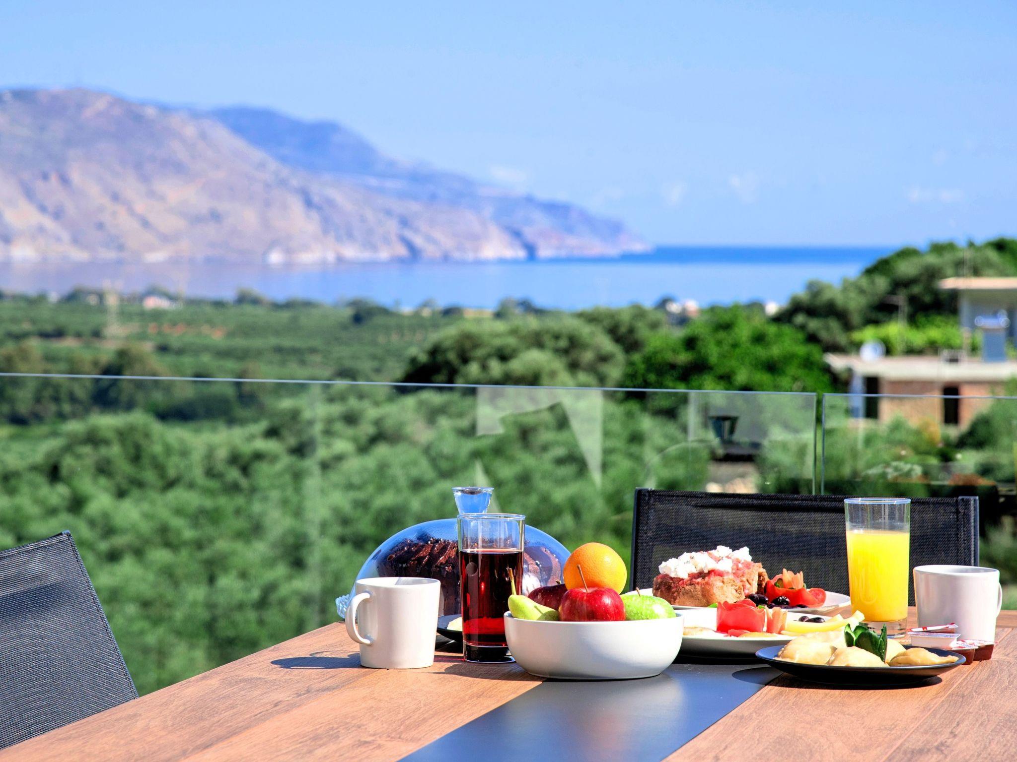 Facilities of the Villa Ground floor * A large living-dining room with sofas (can accommodate two guests) with direct access to the terrace. * Kitchen with an oven, a fridge, dishwasher, a coffee maker, tea facilities, a juicer, a toaster, a dish set and dining area. * A master bedroom with a queen-size double bed, smart TV Set and private bathroom with shower. * A large common bathroom with shower at the ground floor. Upper Floor * A second bedroom with a queen-size double bed, smart TV set. * A third bedroom with two twin push together single beds * A large bathroom with shower * Smart large TV at the living room. * Air-conditioning in all areas. * Free WiFi internet access. * Outdoor dining set (table with chairs). * Washing machine and dryer * Iron and ironing board. * Safe deposit box. * Hair dryer. * Linen and towels. * Toiletries. * Swimming pool towels. * Baby cot. * High chair for children. * Housekeeping, towels and bed linen changed and cleaned every 3 or 4 days.