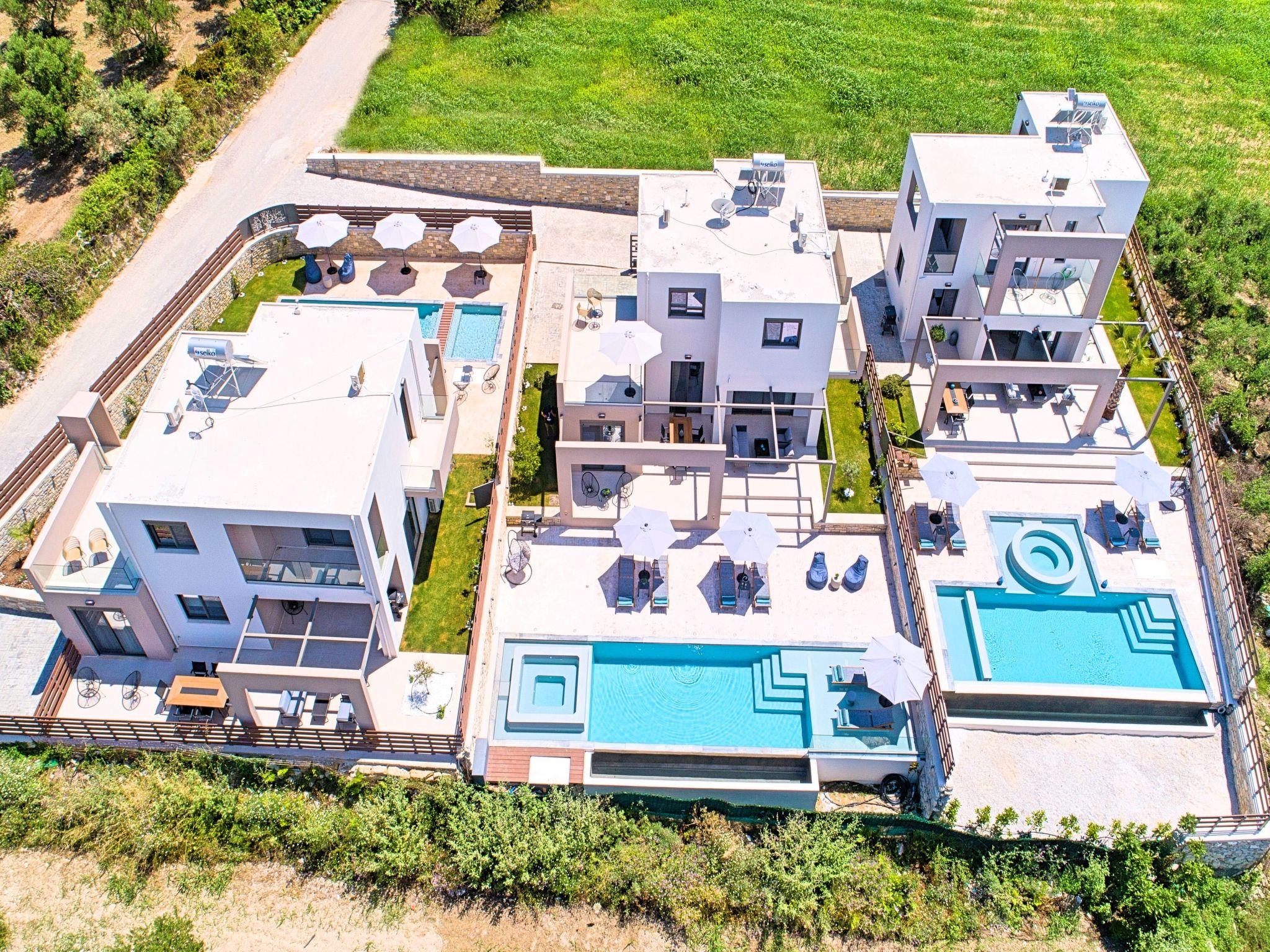 Nuzzled in a gorgeous setting, above the sun kissed beach of Georgioupolis in Crete, Minoas Villas captures the essence of chic and luxurious living only few minutes away from the shimmering sea. Built amphitheatrically with direct sea views, this exceptional built Villas, member of the HotelPraxis Group evokes the island’s Cretan spirit and cosmopolitan charm in its elegant environs while ensuring a holiday beyond comparison. Minoas Villas offers guests the opportunity to truly immerse themselves in the Cretan experience. Within easy reach from the island’s famous Kournas Lake and the popular town of Georgioupolis our villas combine a contemporary, modern style with supreme comfort. Built in 2019 our villas offer guests an exclusive, relaxing experience all within the idyllic setting of Greece’s most hospitable island. Our philosophy is simple: to offer first-rate hospitality coupled with unrivalled privacy. All Villas are fully equipped, offering our quests the required convenience in order to enjoy unforgettable relaxing vacations throughout spring, summer and autumn. Minoas Villas is a complex of three villas, ideal for big families, a group of families or a group of friends. Enjoy your vacations with your parents or with the rest of your family members while at the same time preserving your privacy just like at your own home. Our Villas are built one next to the other.