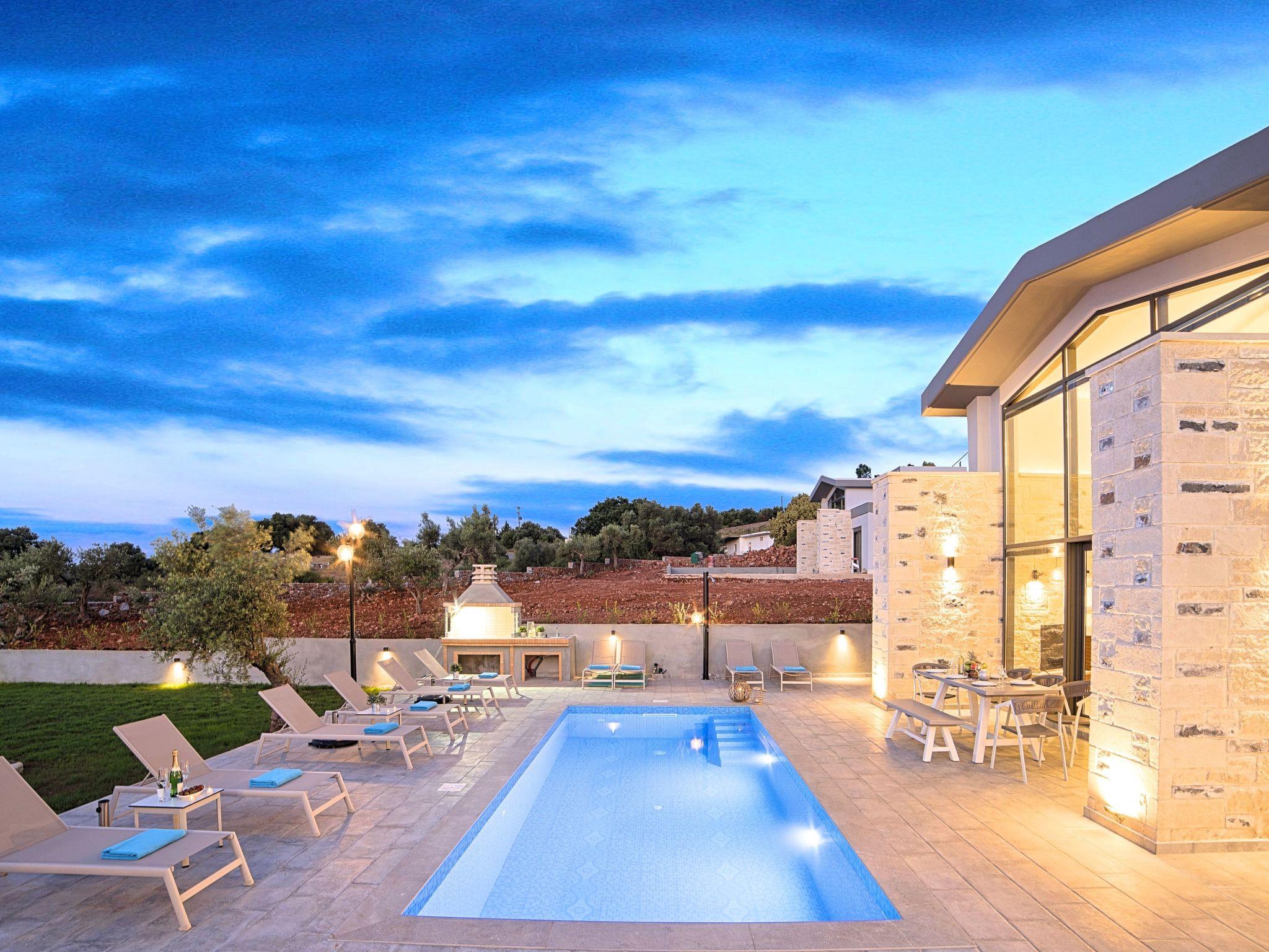 Nuzzled in an olive grove, above the sandy beach of Georgioupolis in Crete, Moon Light Villas captures the essence of relaxing and comfort living. Villa’s complex is built amphitheatrically with amazing sea views. These elegant Villas evokes the island’s Mediterranean spirit and cosmopolitan charm in its elegant environs while ensuring a holiday beyond comparison. Surrender to the temptations of refinement at one of the most enchanting Cretan Villas and take in the splendid panoramic views to the emerald Cretan Sea. Find your peace and quiet and unwind in a haven of bliss and tranquility.Hide away in the calm of summer and elevate your senses at one of the most remarkable Villas with private pool. Moonlight Grand Villa is a complex of 3 private units with 3 private pools. Each One of Three Villas can accommodate up to 15 guests ( 10 in the bedrooms) and 5 more at the sofas in bedrooms or at the lower level living room. The max occupancy of this listing is 45 people.