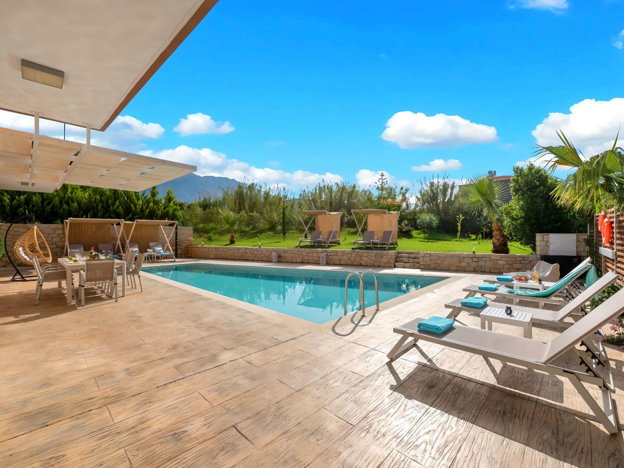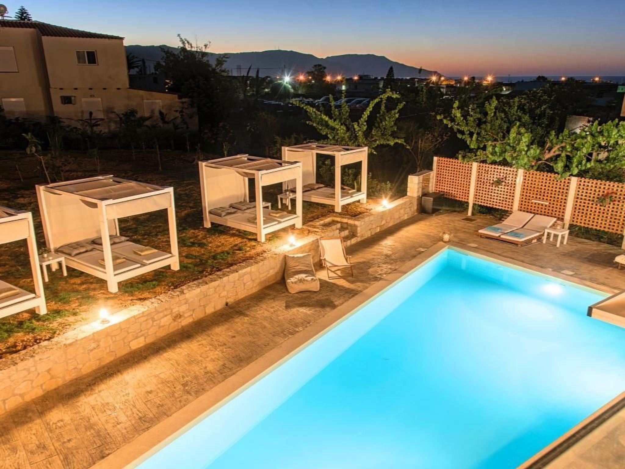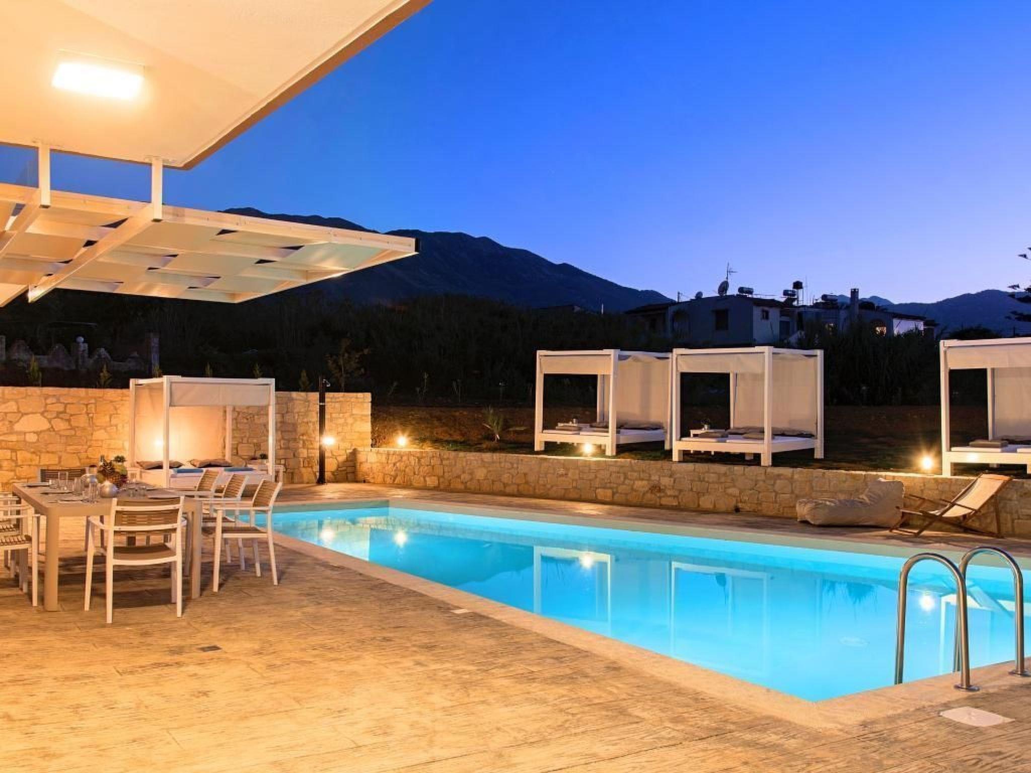 Just few meters away from the famous sandy beach of Kavros, Allas Villa creates the perfect holiday retreat for families or friends.Flooded with light, the 180-sq.m of living space has a bright contemporary feel. Outdoors, guests can dine on a charming garden, unwind in the private heated pool, having BBQ at Villas charming BBQ corner.Indoors, guests can lounge in the spacious living rooms or cook in the fully equipped kitchens.Enjoy the timeless Cretan setting and refined accommodation with each room mirroring your relaxing nest.In an ideal location, just two minutes from Kavros sandy beach and few minutes’ drive Kournas Lake.Both Chania city and Rethymnon Town are in very close proximity.In Allas Villa our aim is to offer you memorable vacations and the best possible accommodation.Allas Villa can accommodate up to 12 guests in two separate fully equipped apartments, easily accessible by disabled people .Short descriptionOther : Non-smoking houseShort description 1Number of kitchens : 2SurroundingNearby sports facilities : Diving, Mountain climbing, Tennis, Water skiingRental Facilities : Bicycle rental service, car rentalSurrounding 1Location description : Kavros is a tourist area on the National Road Chania-Rethymnon, approximately 41 km east of Chania and 19 km west of Rethymno, only just 3 km from Georgioupolis. Although it is close to Rethymno, the area is considered to belong in the prefecture of Chania. An amazing area with a wide variety of hotels covering your every need, one next to the other, with the 10km long beach stretching from Georgioupolis beach and ending to the east up to Episkopi, is the ideal destination to consider when travelling abroad.The beach is perfectly organized, but is exposed to the north winds so have that in mind and be careful when you swim and its quite windy. Apart from that we are talking about an amazing beach that will make you absolutely adore the area of Kavros. This is the ideal holiday destination for families that wish to spend quality time together far and away from all the busy winter times and discover their more natural self. The thing is that here it would be difficult for you not to adore this beach! Besides Kavros is a seaside resort that is in general a quieter place than Georgioupolis and is situated in the heart of the astonishing Kavros.Besides the most characteristic part of the district is the natural water system which is thought to be one of the most important systems in the East Mediterranean. With Lake of Kournas, Almiros River, and an amount of streams like Delfinas River that borders on the beach, you will fell astonished by this diverse and amazing scenery in the heart of Chania.Take you time to relax and swim at one of the most amazing beaches in the whole of Crete as only this way you will be able to understand what the Greek summer is all about: sea and sun in the front row!Garden and outdoorGarden facilities : Garden furniture provided, Grill, Summer houseOn-site leisure facilities : Outdoor swimming pool exclusive use, Swimming pool