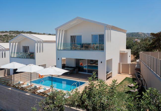 Welcome to Nevelo Sapphire, a luxurious villa nestled in the heart of the picturesque village of Gerani, where comfort meets tranquility. This exquisite property offers an idyllic escape, accommodating up to 8 guests across 4 spacious bedrooms. With its tasteful design and well-thought-out amenities, the villa provides an unforgettable stay, complete with stunning views of the glistening waterfront and the majestic surrounding mountains. The villa belongs to a small complex of 4 villas, that gives the option for larger families or groups.