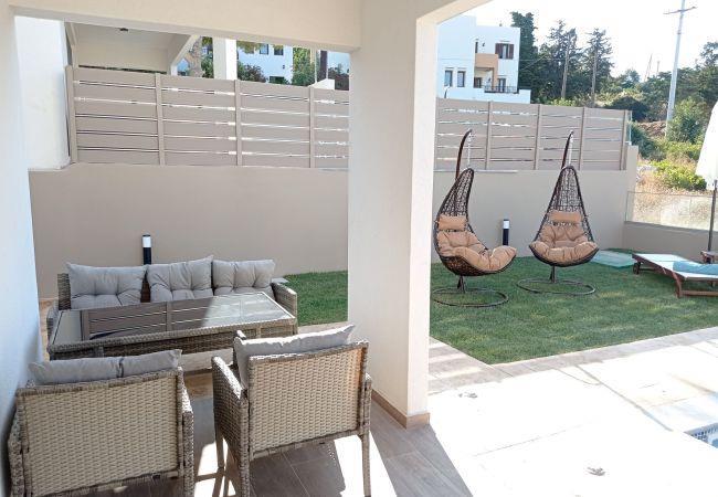 Situated in a family-friendly neighborhood, the Nevelo Pearl Villa offers easy access to local amenities and attractions. Just 500 meters away, you'll find a local mini-market and a traditional tavern, perfect for sampling local Cretan flavors. A leisurely 800-meter stroll will take you to a beautiful sandy beach, where you can enjoy the crystal-clear waters of the Mediterranean. For those looking to explore further afield, the vibrant city of Rethymno is just 7.5 km away, offering a blend of historical charm and modern attractions. The villa is conveniently located 62 km from Chania Airport, making it an accessible destination for travelers from near and far.